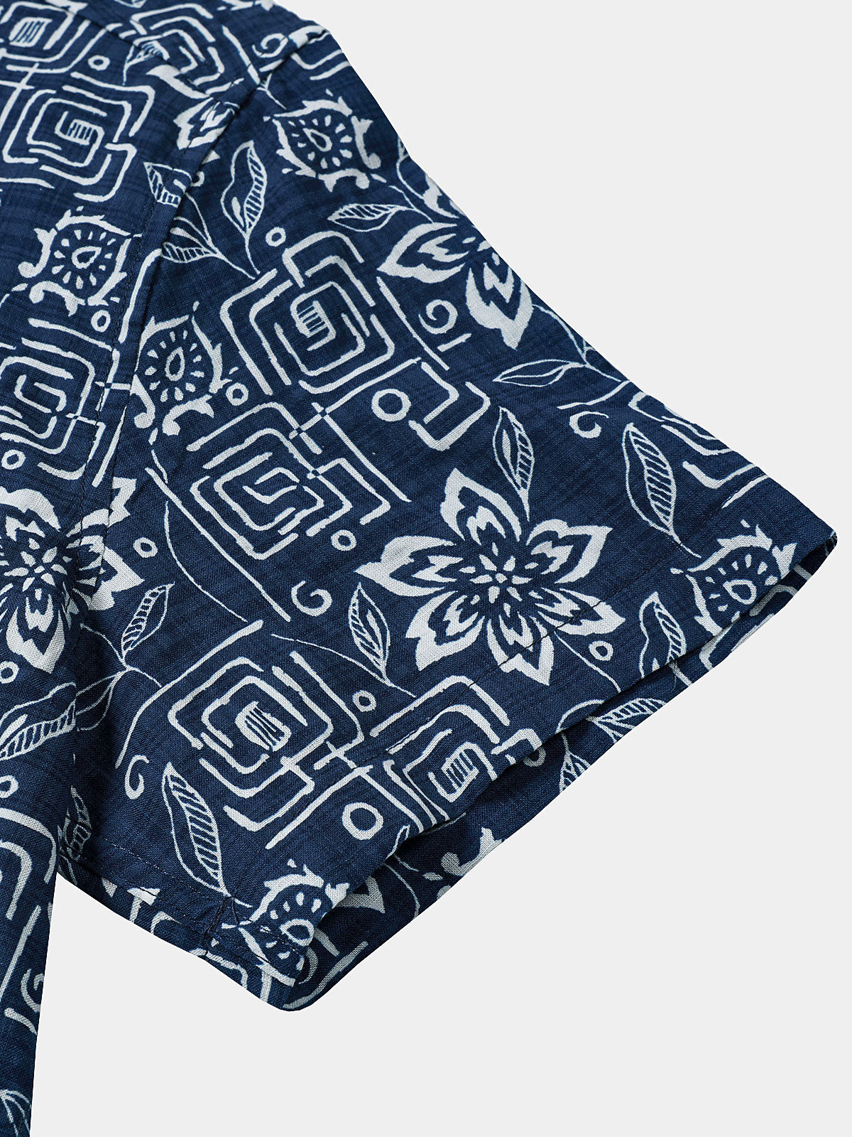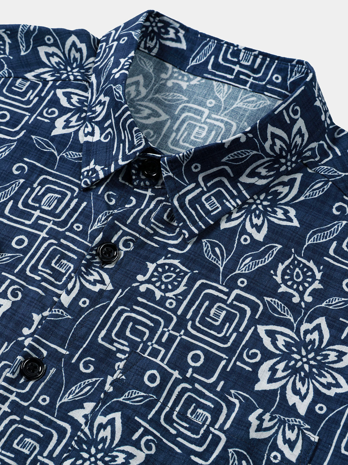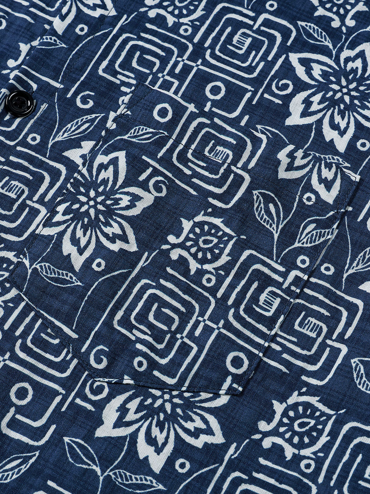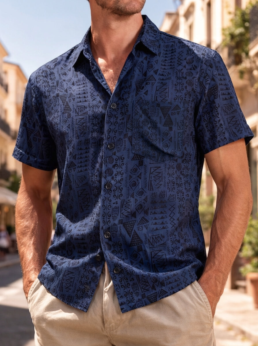 Chemise homme manches courtes imprimé tribal géométrique bleu marine en rayon