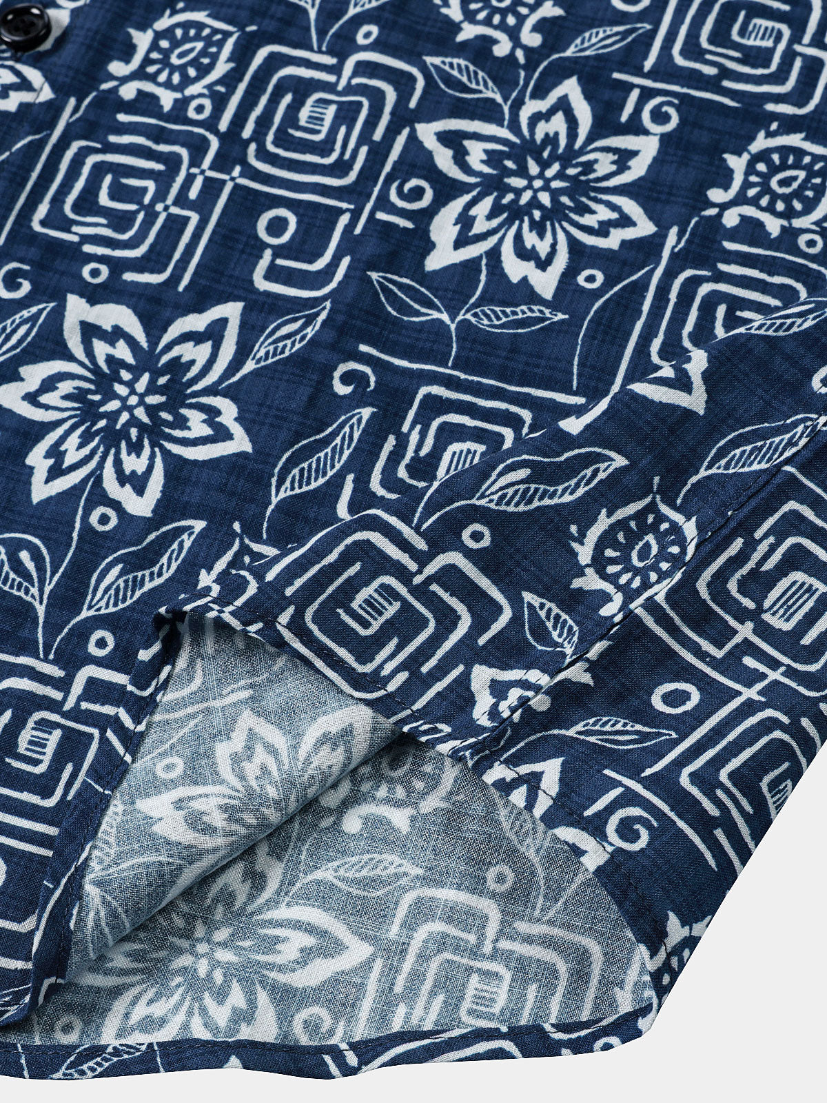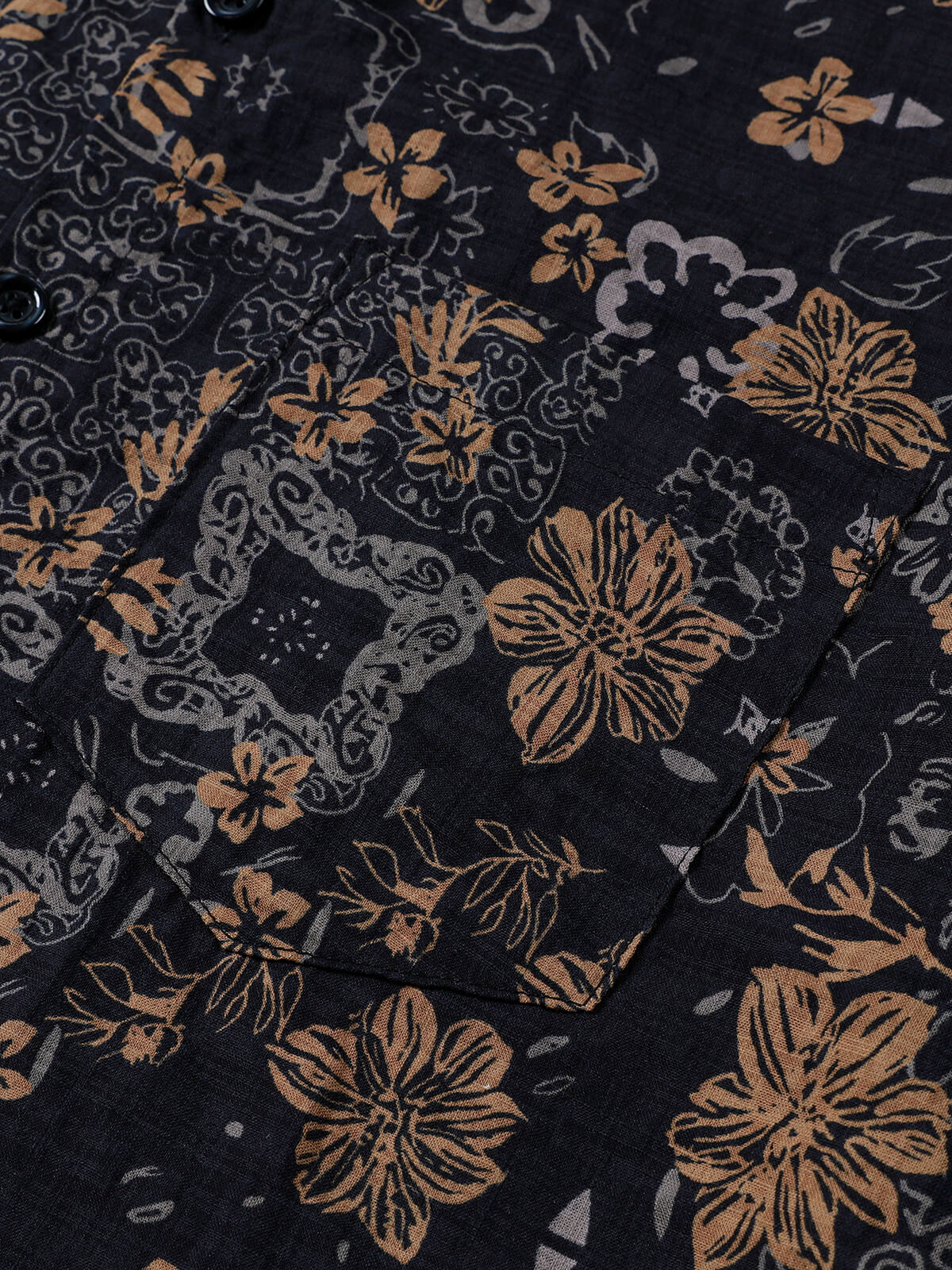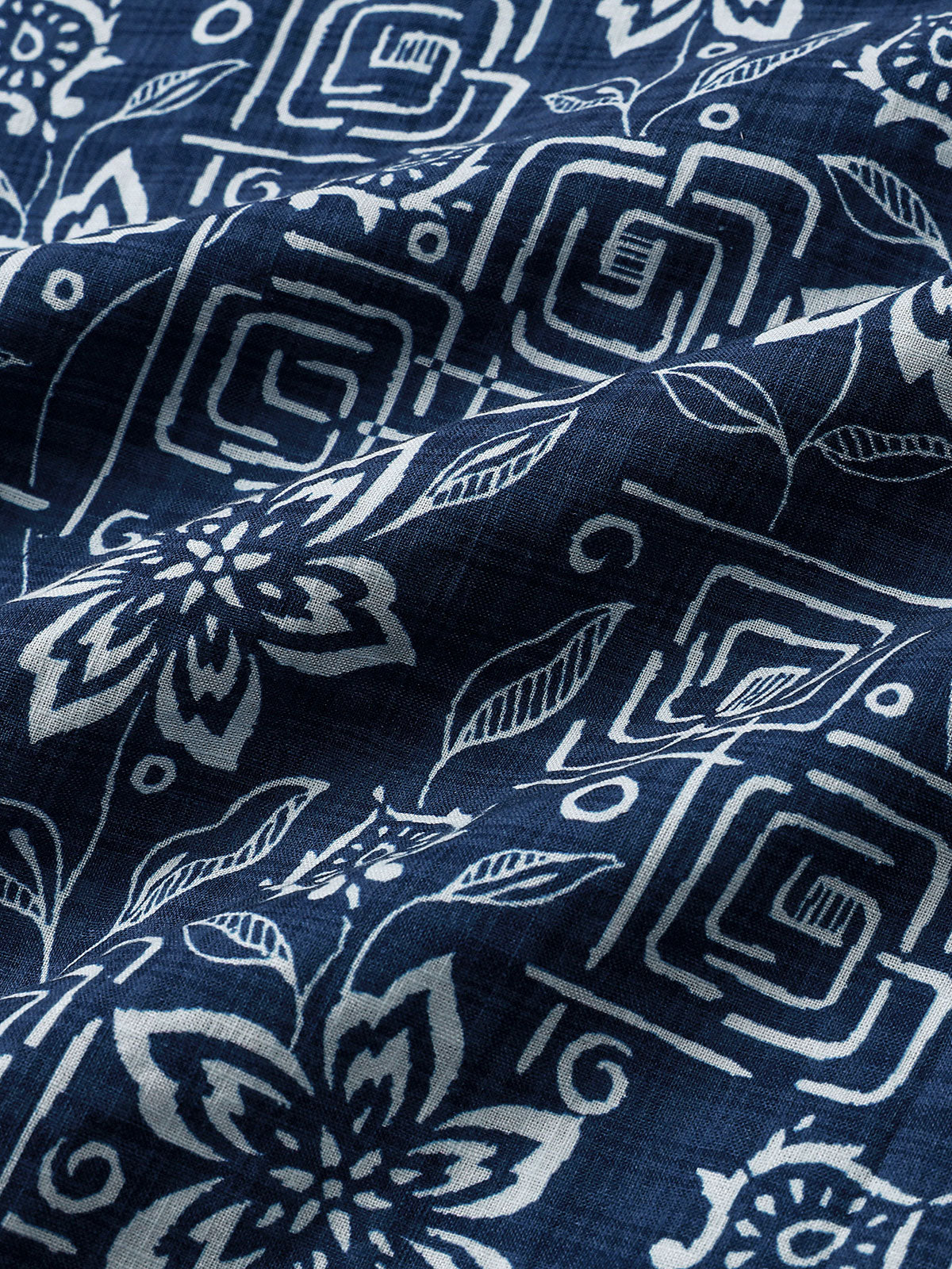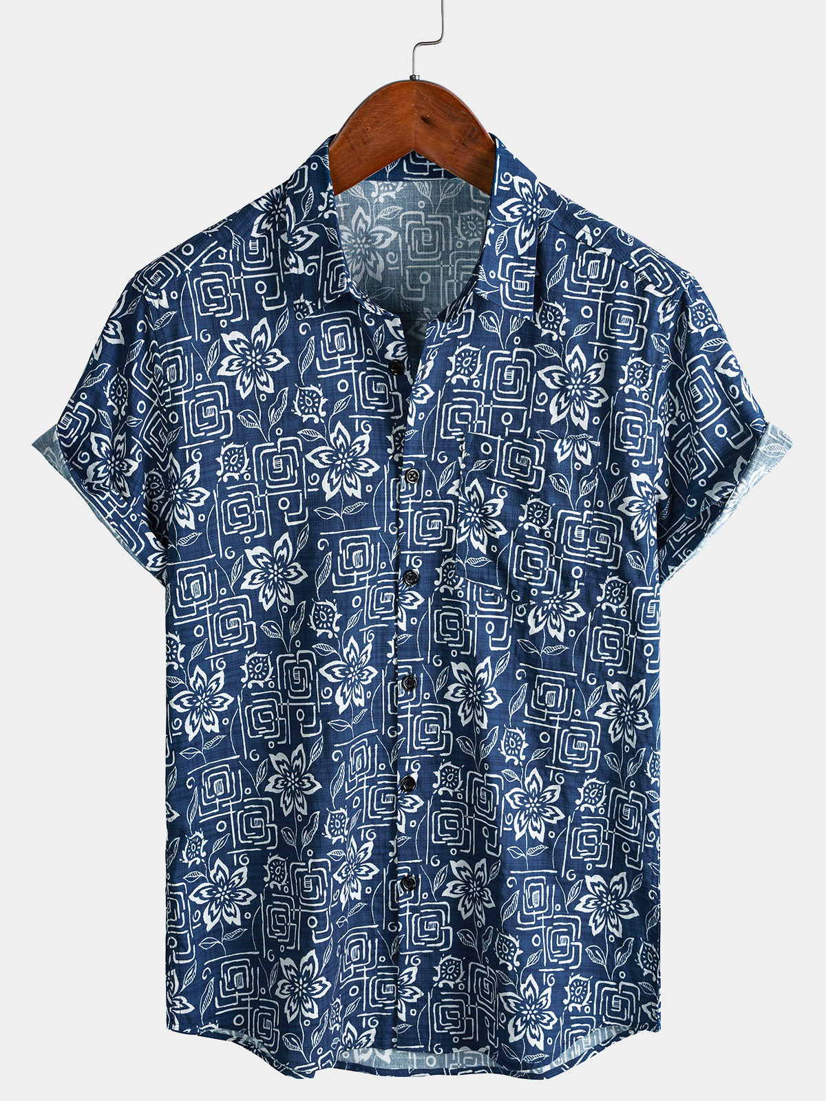 Chemise homme manches courtes imprimé tribal géométrique bleu marine en rayon