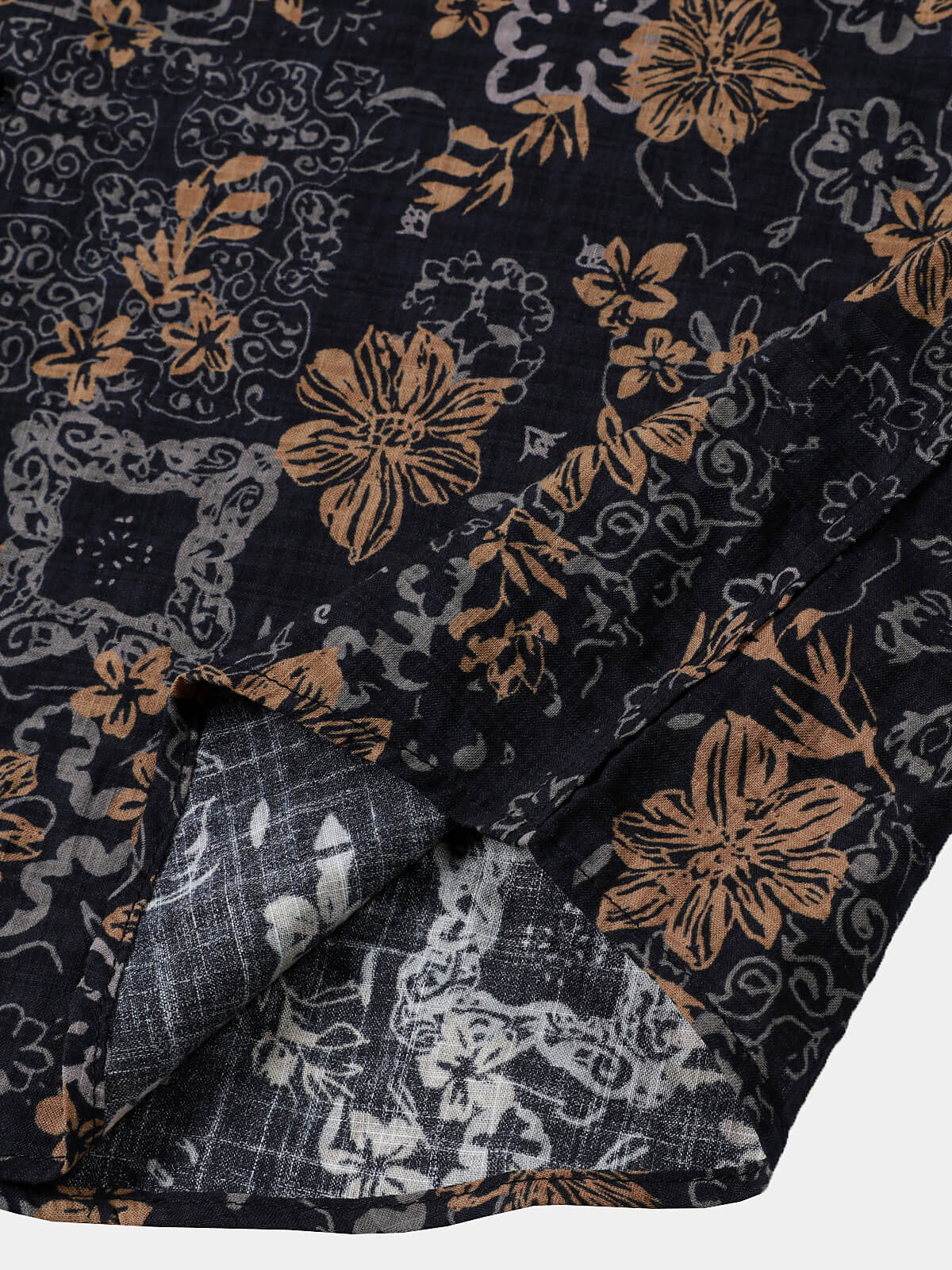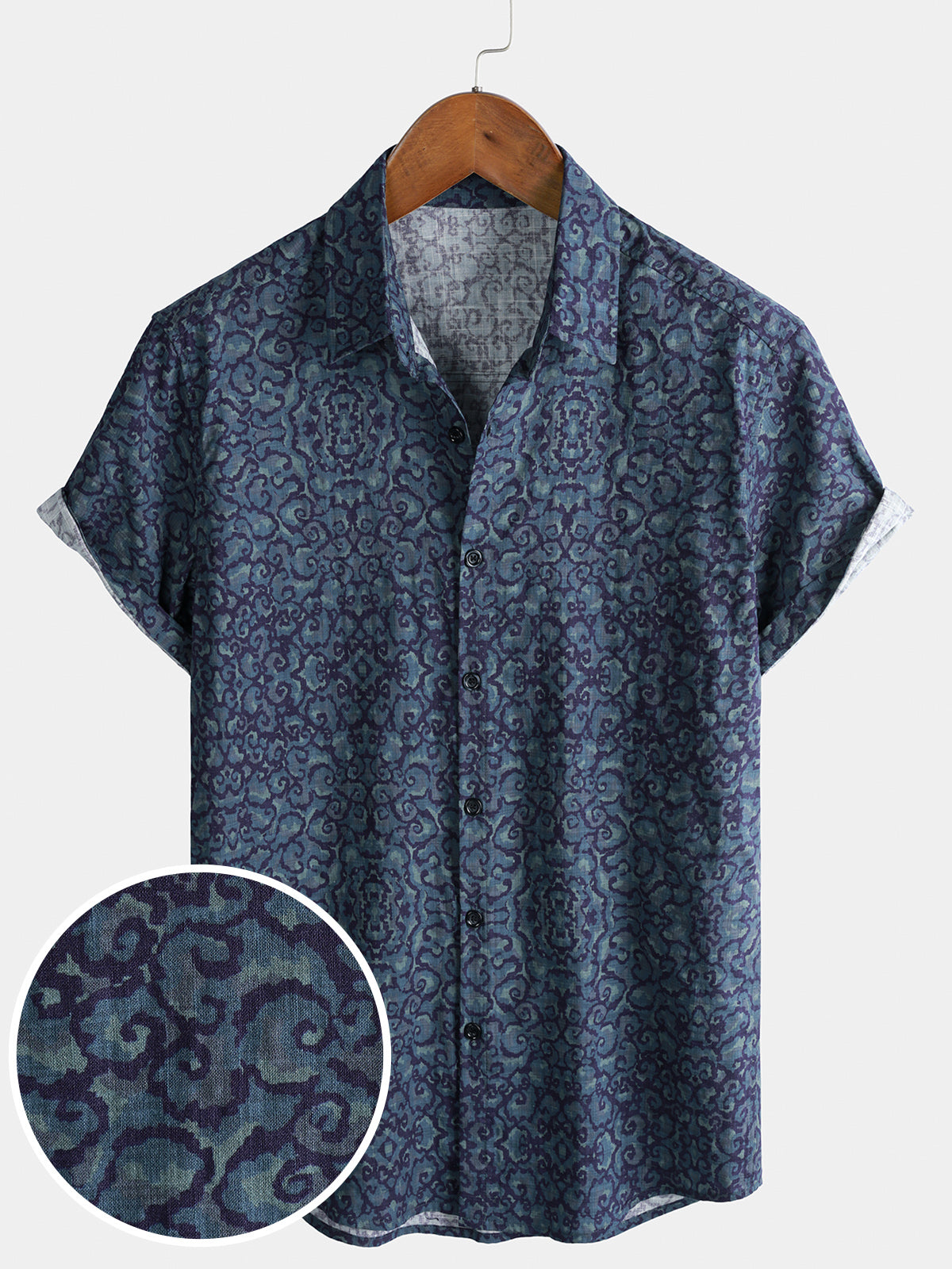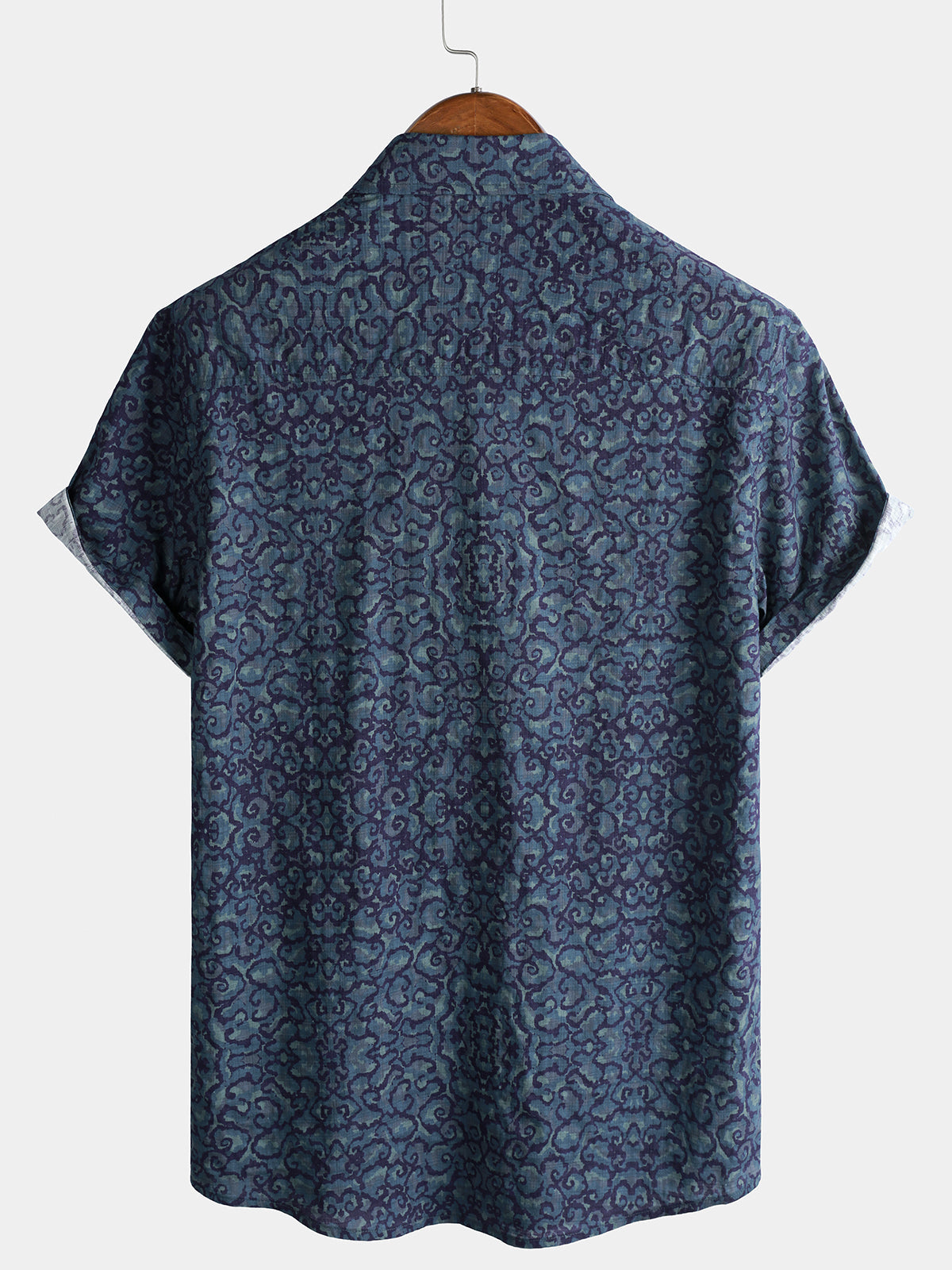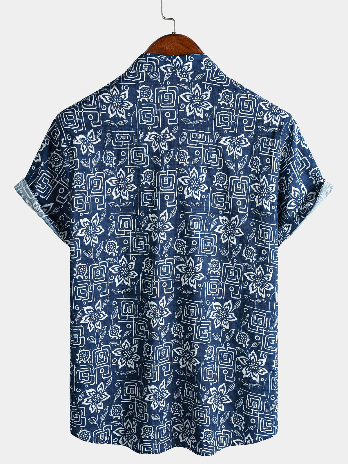 Chemise homme manches courtes imprimé tribal géométrique bleu marine en rayon