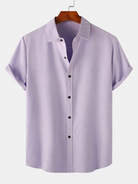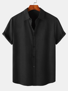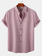 Chemise à manches courtes décontractée boutonnée en coton de couleur unie respirante pour hommes