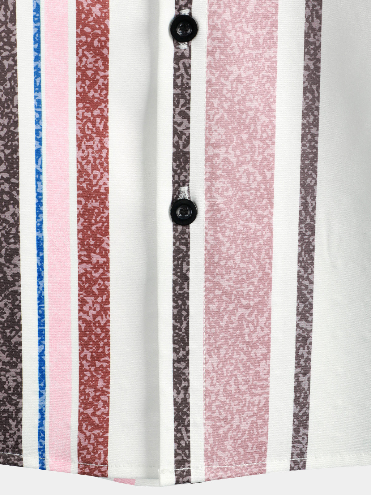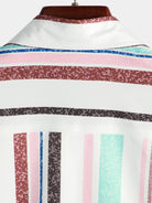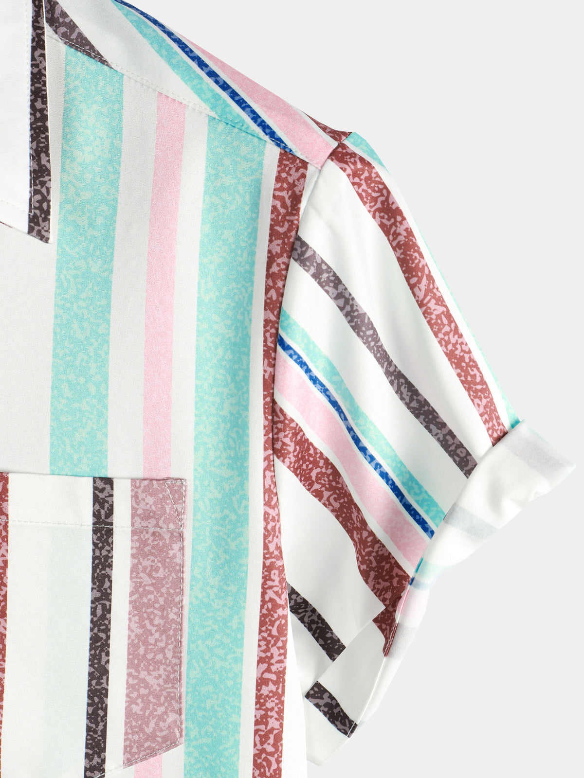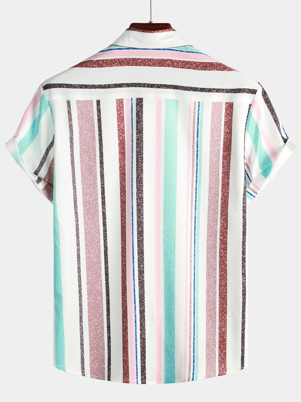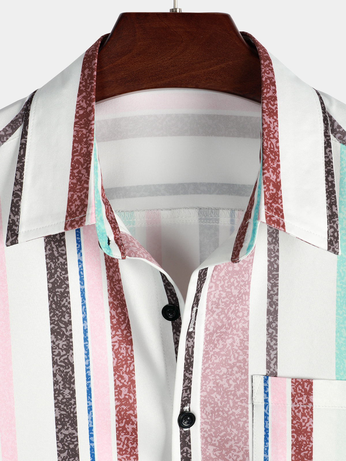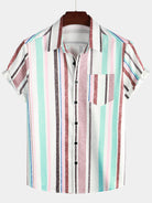 Chemise à manches courtes et poche à rayures arc-en-ciel verticales boutonnées colorées pour hommes