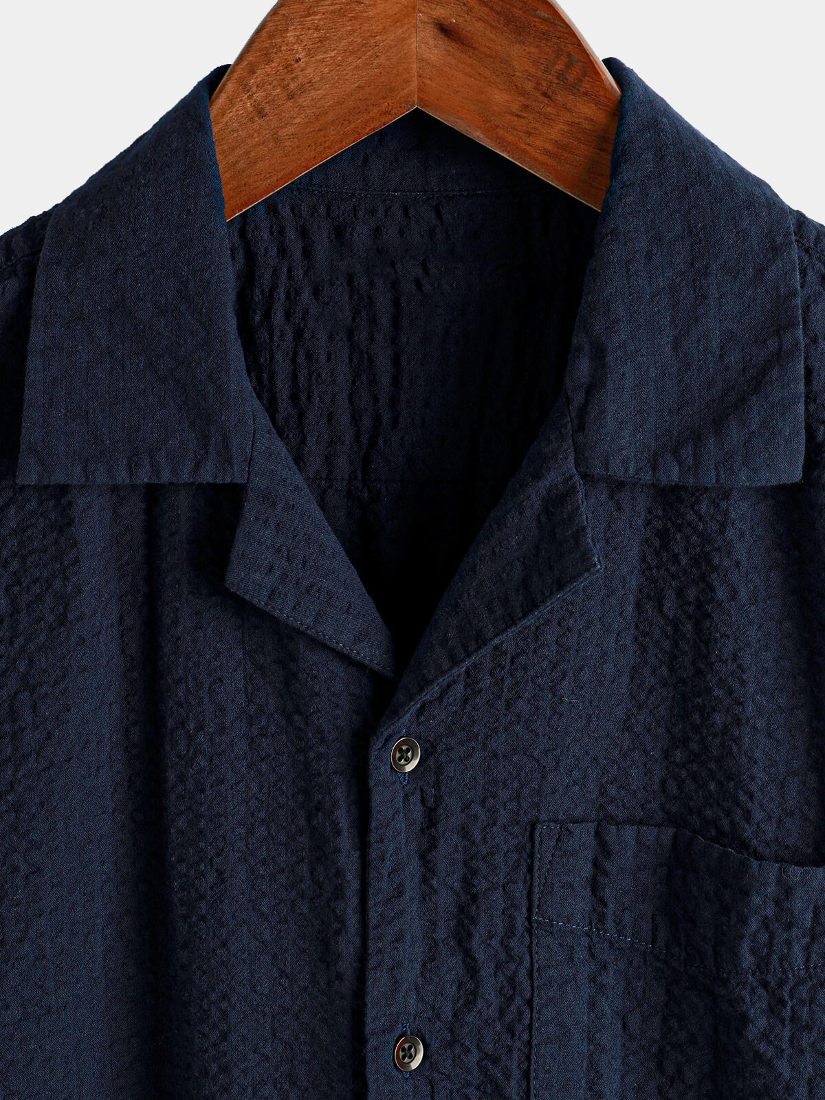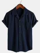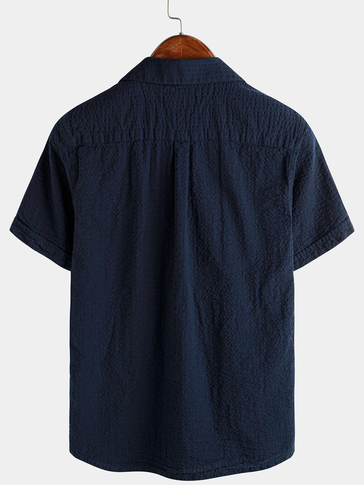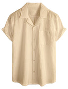 Chemise d'été boutonnée à manches courtes pour hommes, poche en coton, couleur unie, décontractée, plage