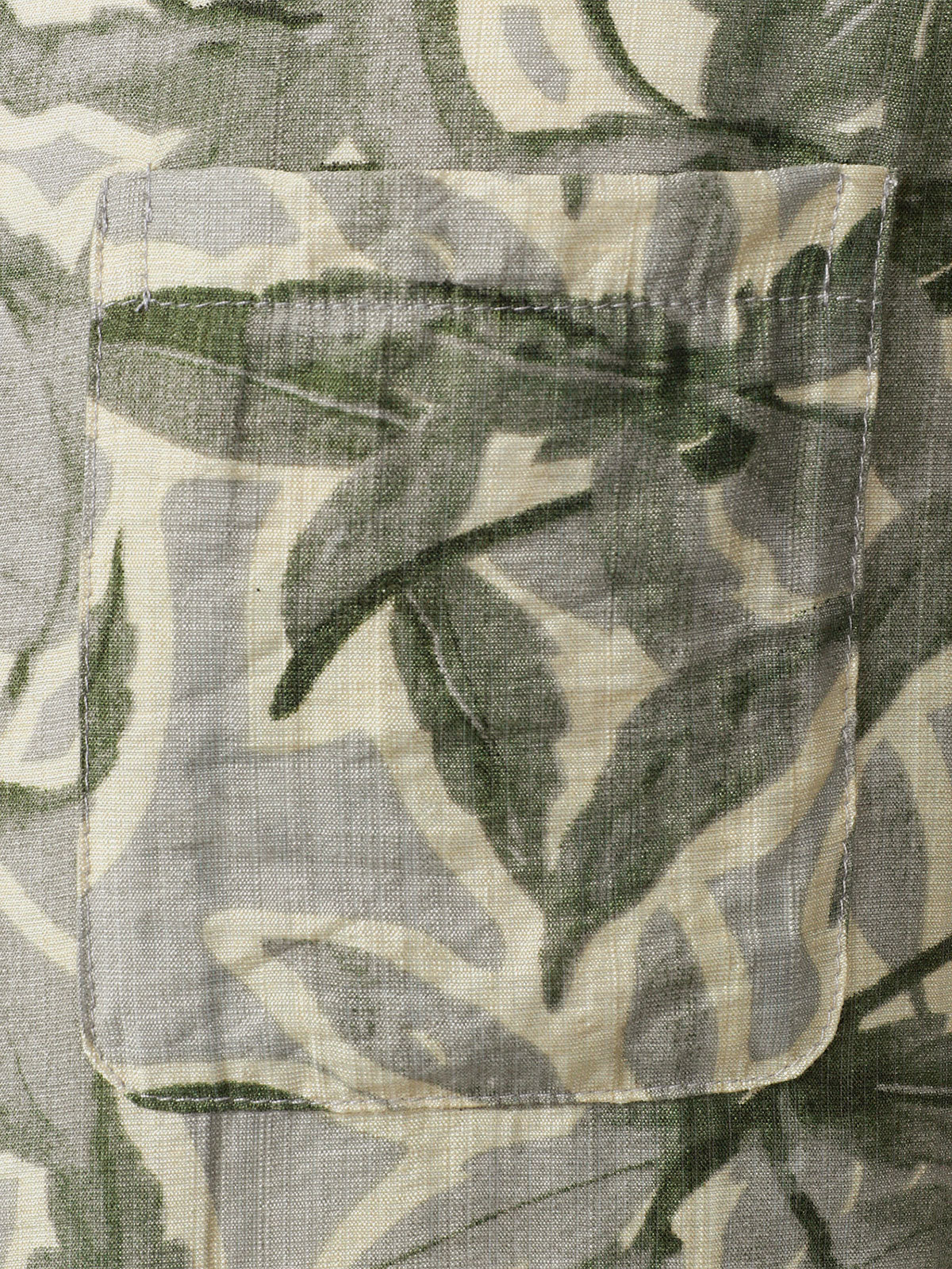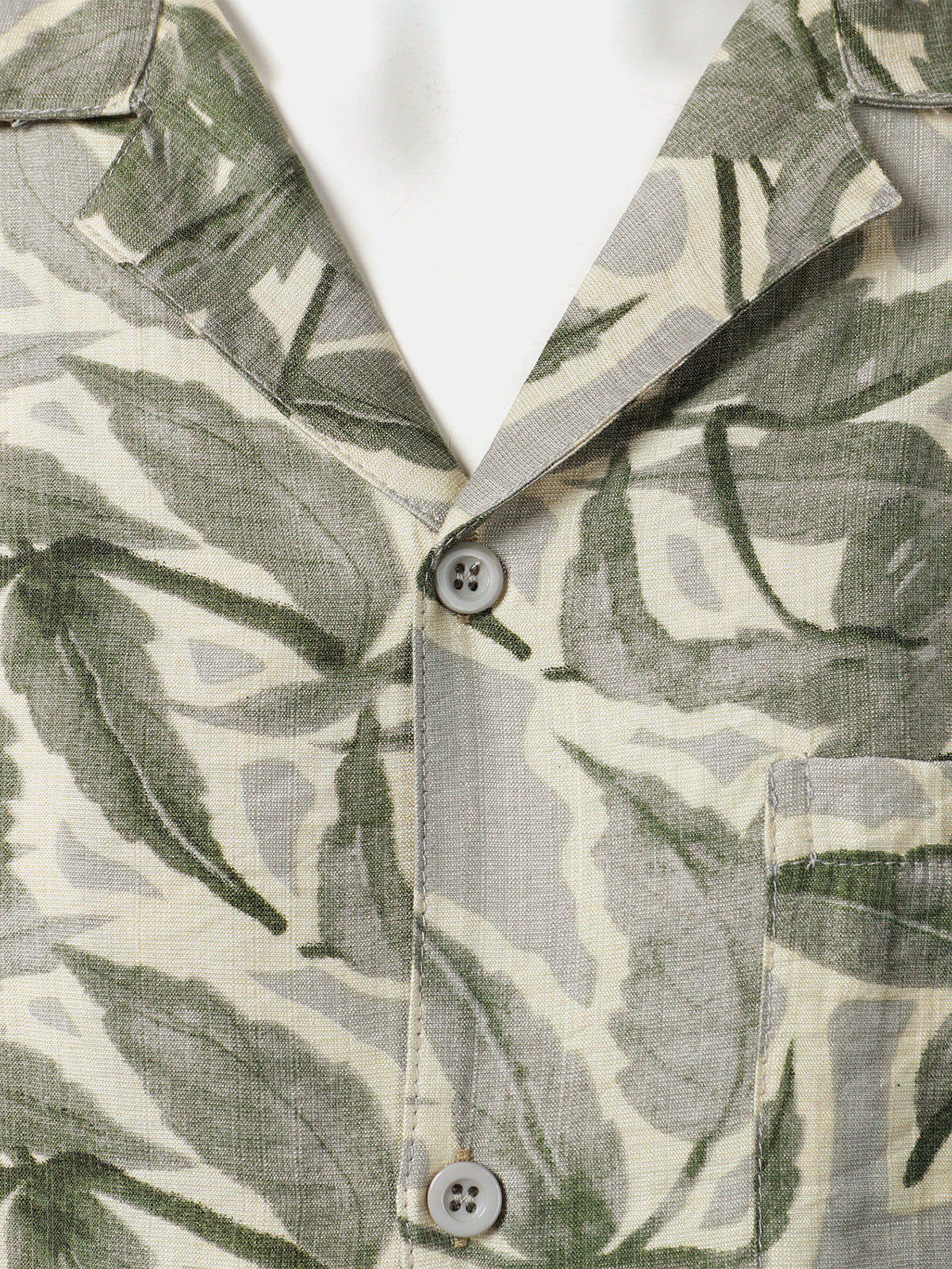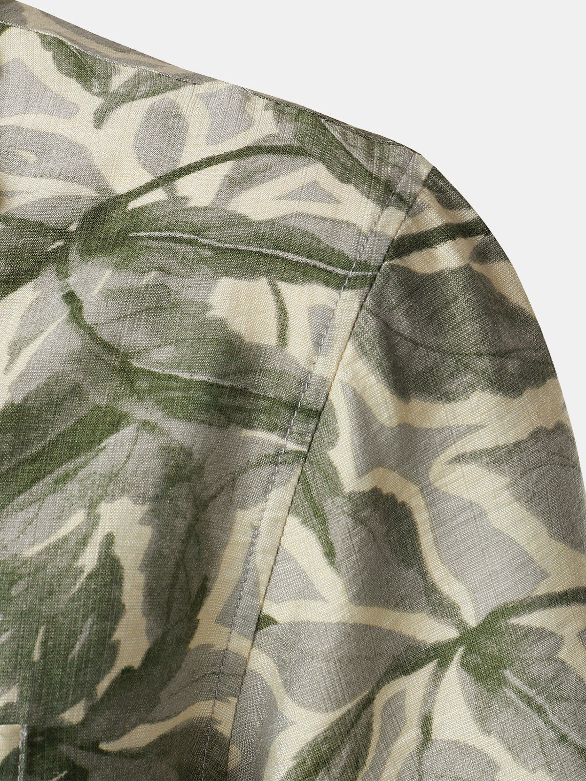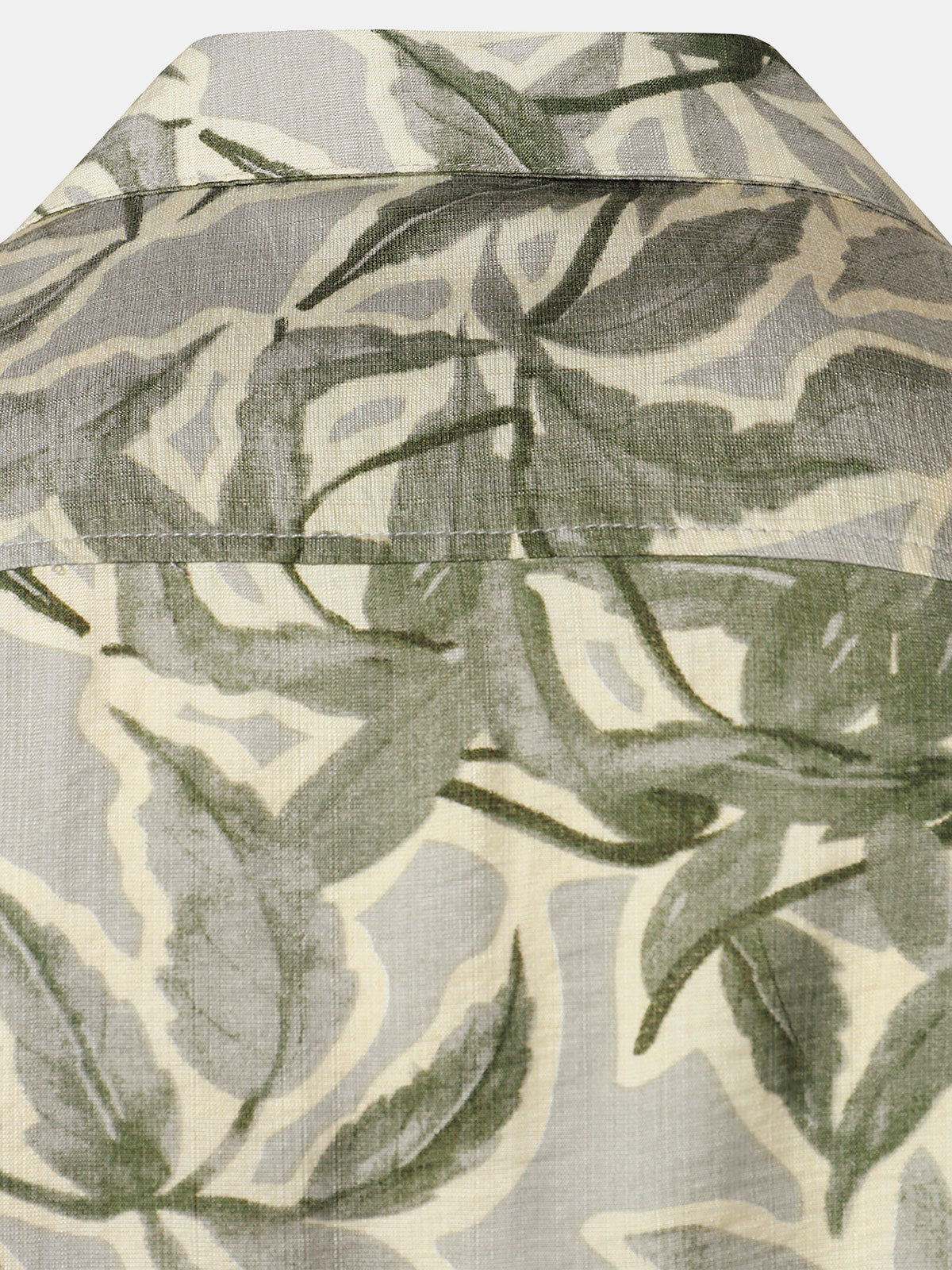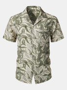 Chemise Homme Verte Manches Courtes Resort à Poche Imprimé Tropical