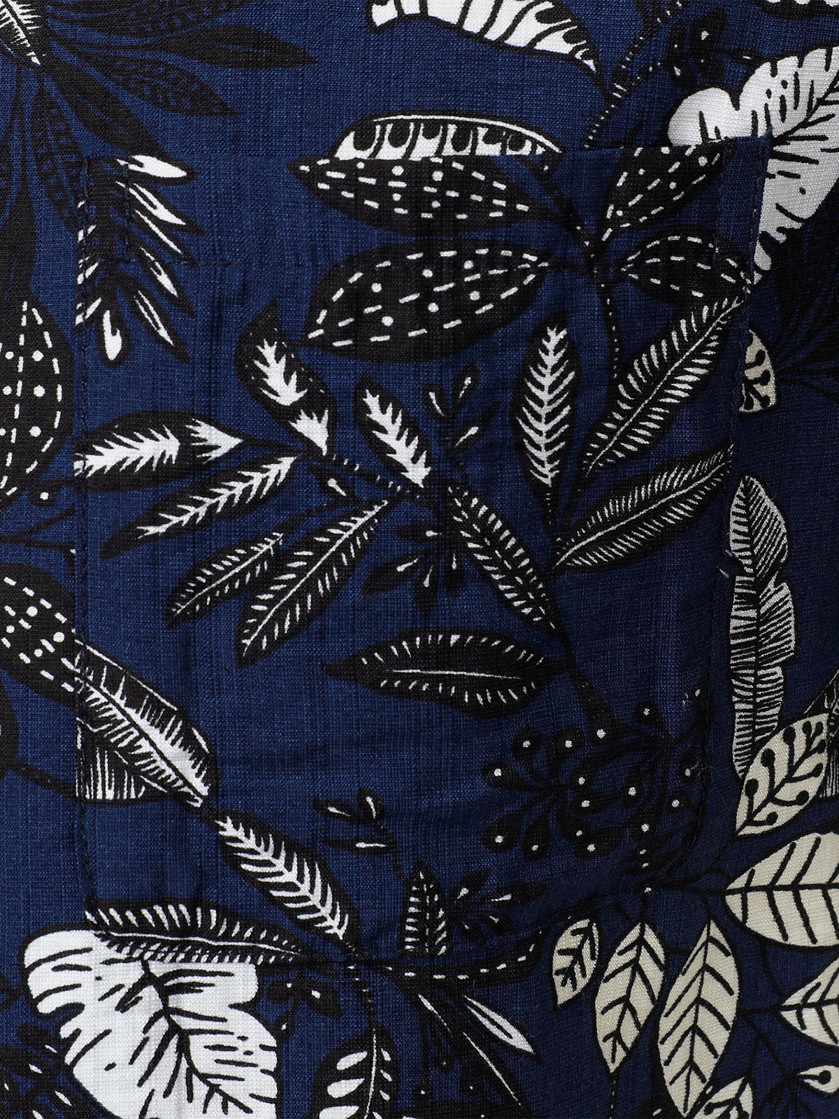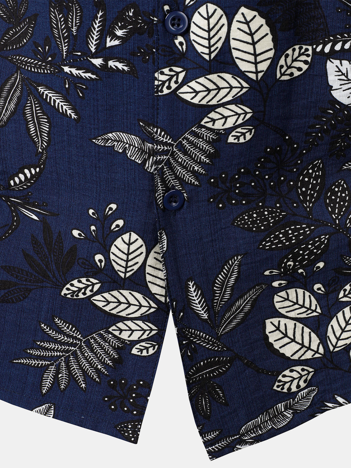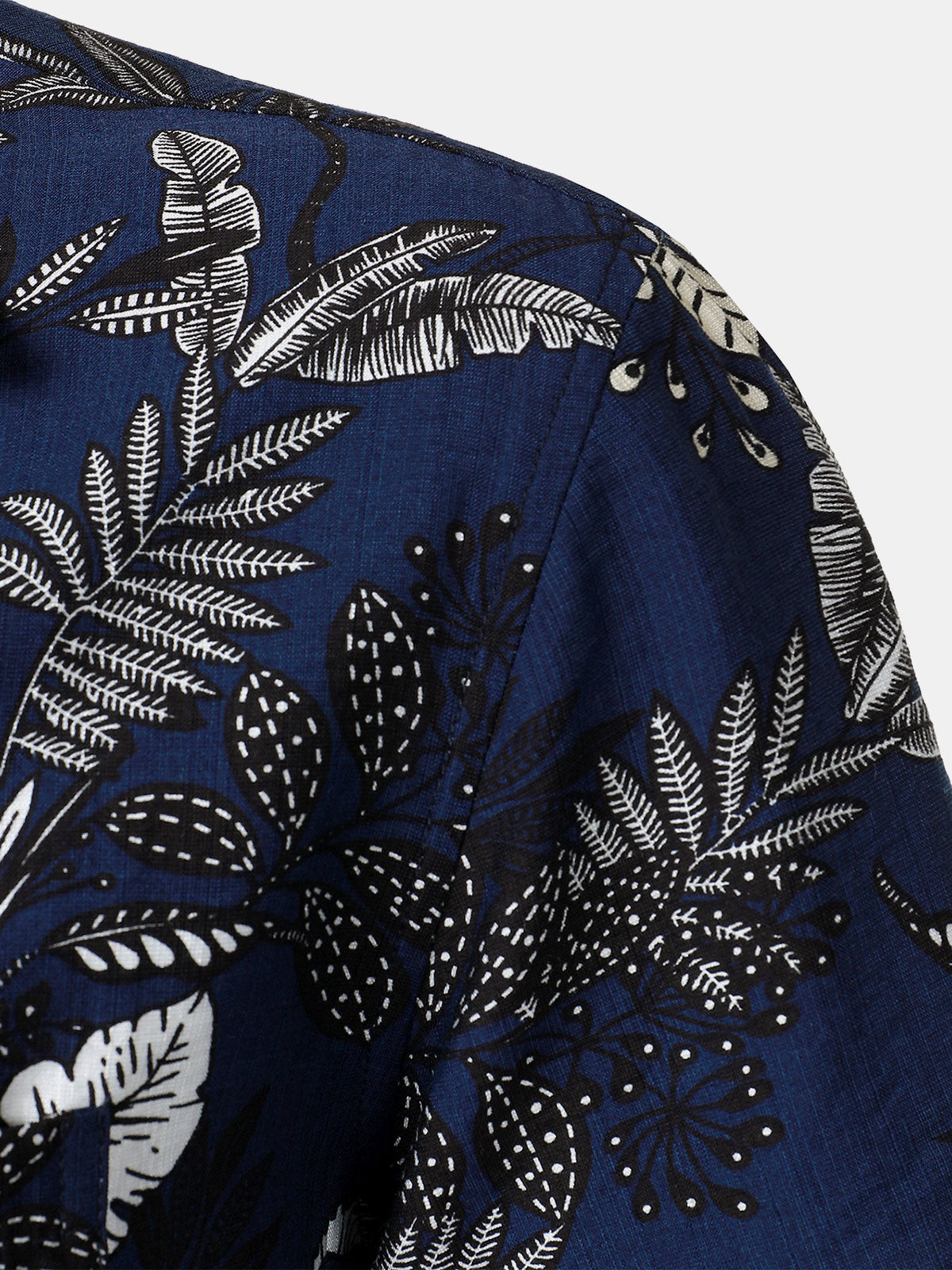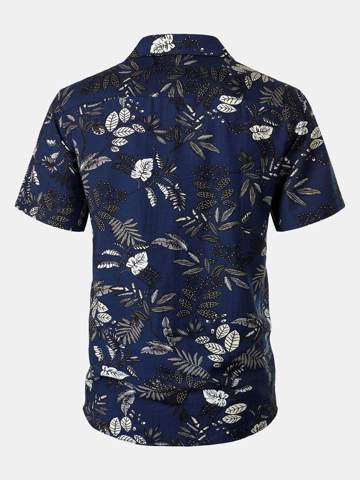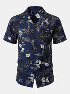 Chemise Hawaïenne Homme Bleu Marine à Imprimé Feuilles Tropicales Décontractée