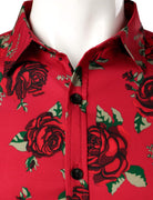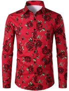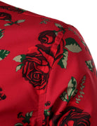 Chemise boutonnée décontractée à manches longues pour hommes avec motif de rose rouge vintage