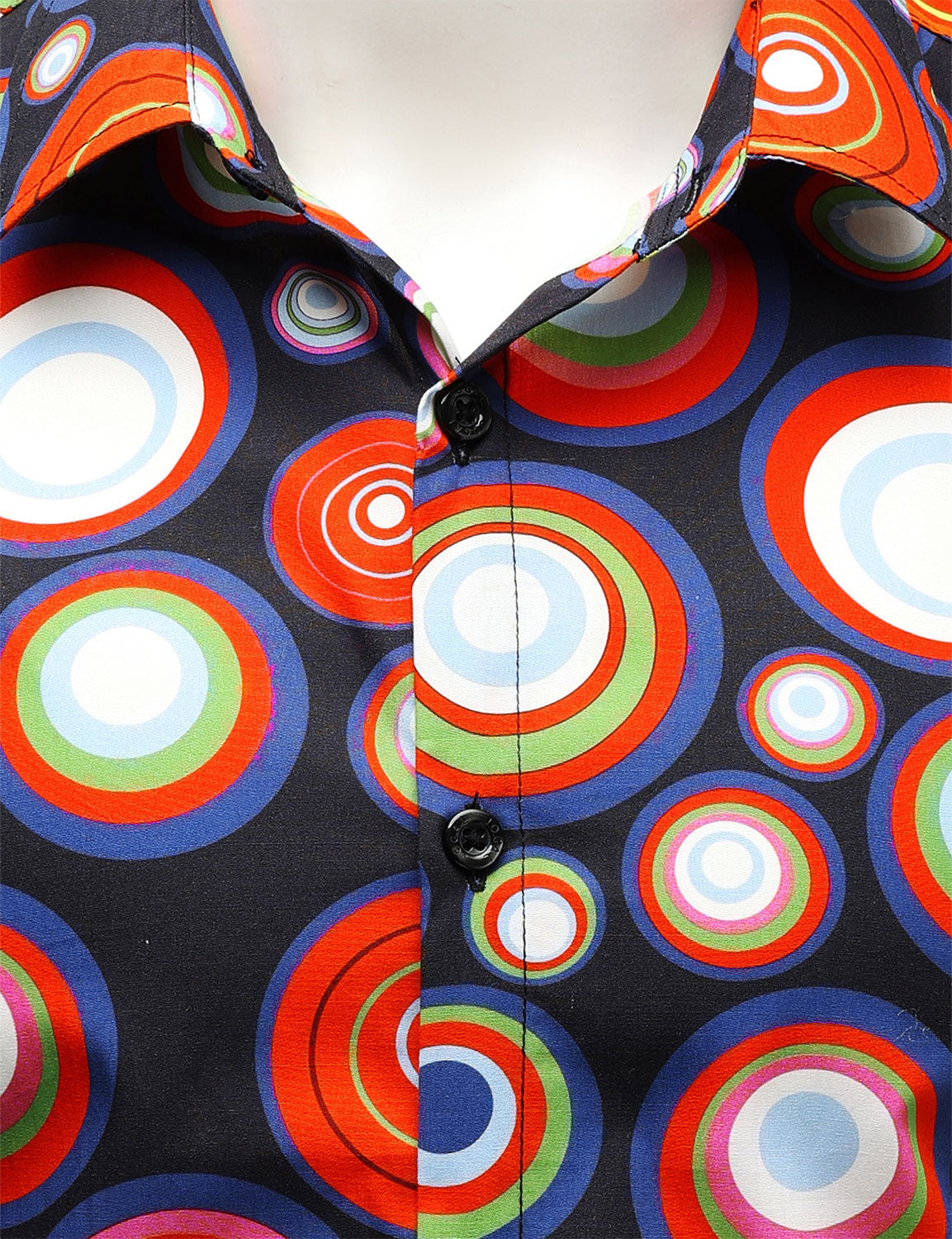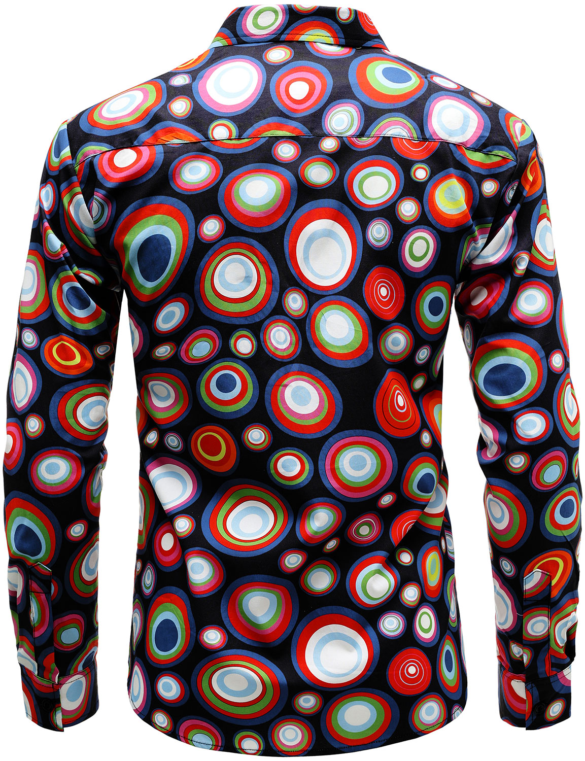 Chemise boutonnée à manches longues et imprimé cercles vintage en coton pour homme