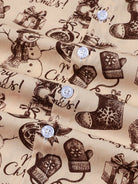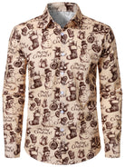 Chemise à manches longues beige vintage en coton pour homme, motif Noël