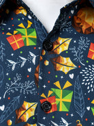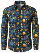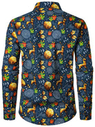 Chemise de Noël bleue pour homme à manches longues imprimé festif avec renne