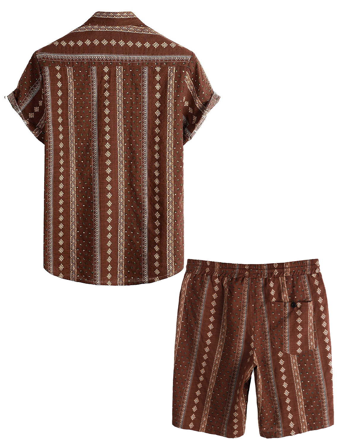 Ensemble chemise et short assortis vintage décontractés boutonnés pour hommes