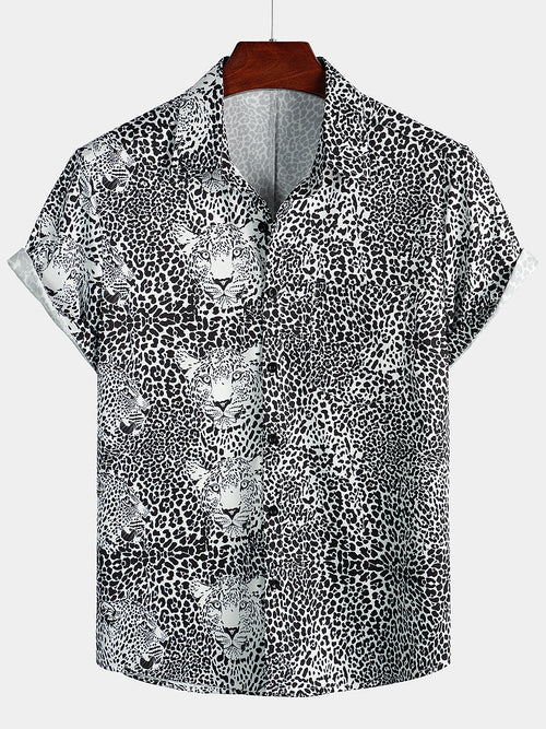 Chemise hawaïenne à manches courtes et imprimé léopard pour hommes