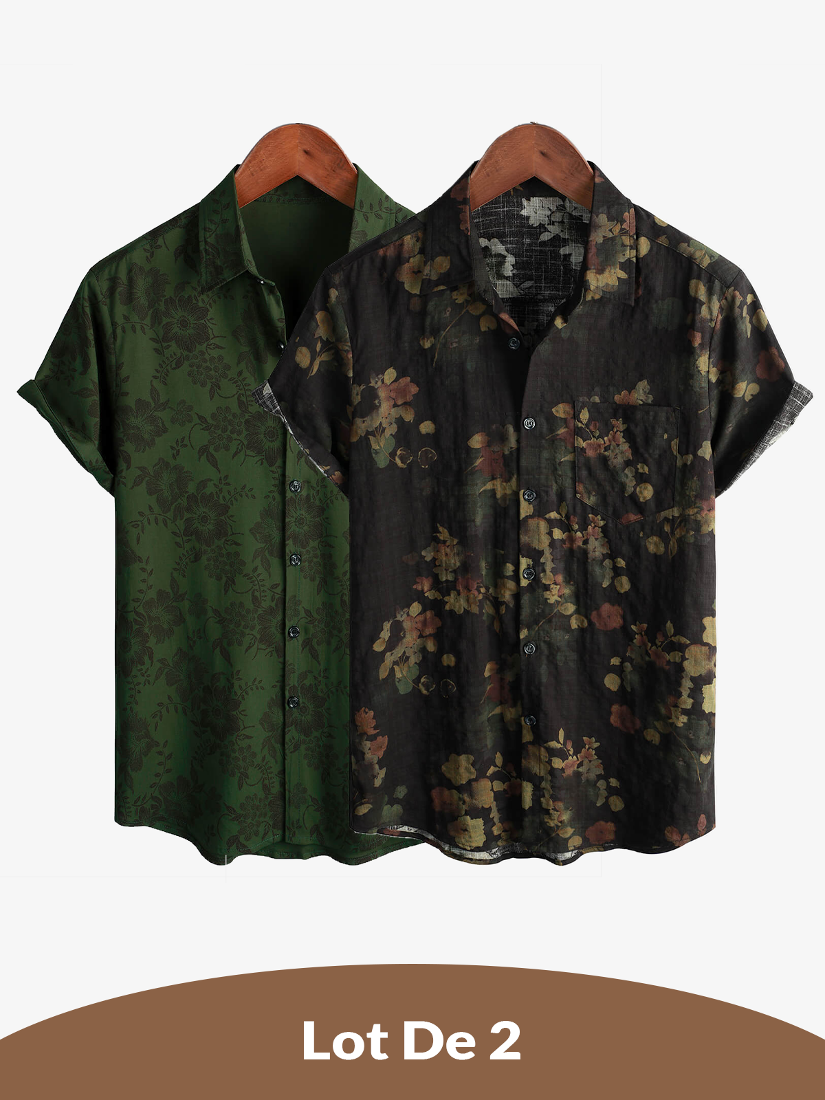 Lot de 2 | Chemise à manches courtes pour hommes, rétro, vacances, été, Vintage, boutonnée, vacances, plage