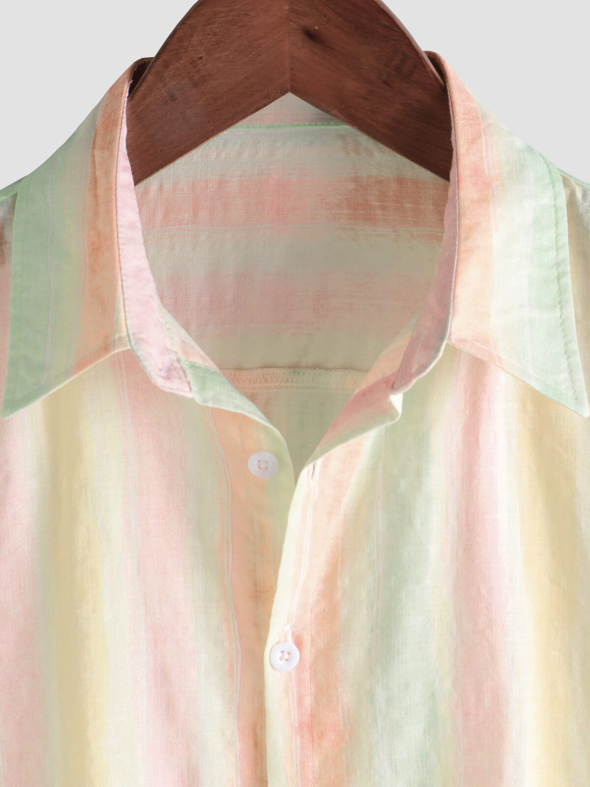 Chemise boutonnée décontractée à manches courtes pour homme, style rétro, rayée et colorée, idéale pour les fêtes