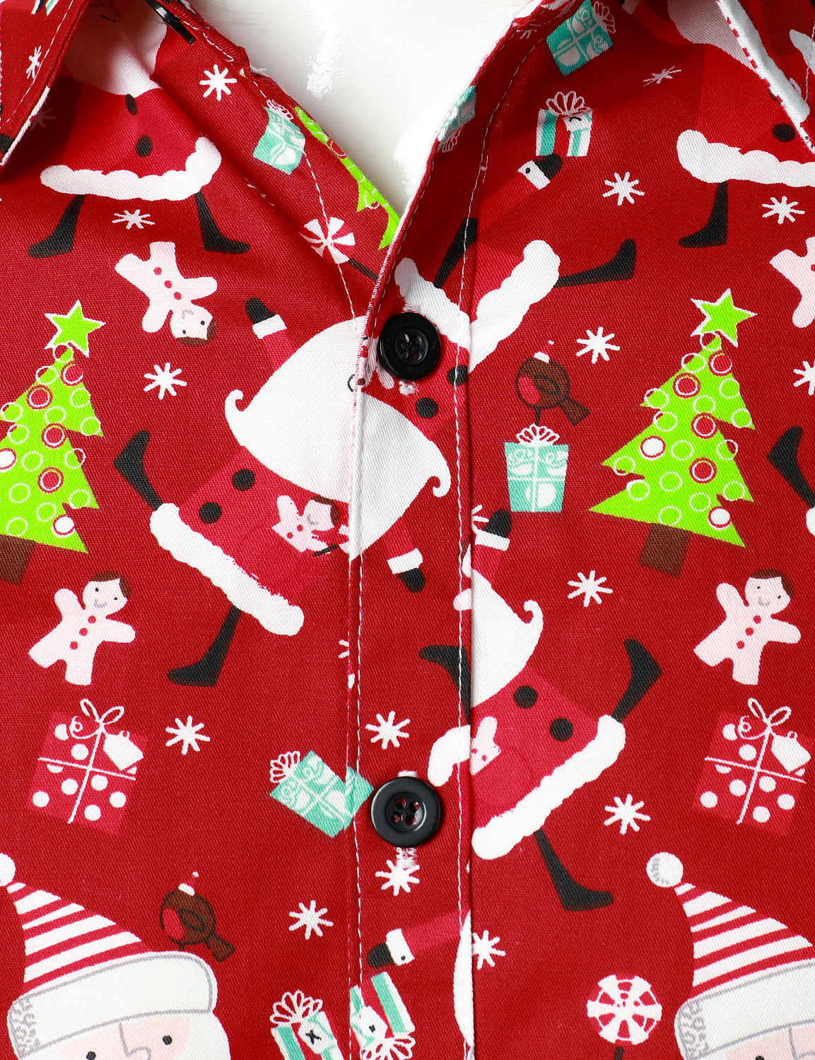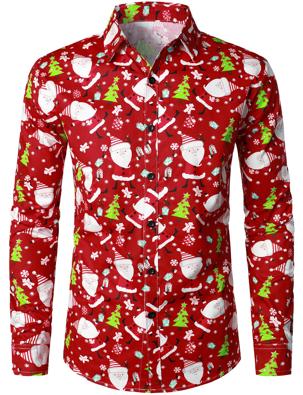 Haut à thème de Noël pour homme rouge drôle tenue vacances chemise à manches longues boutonnée