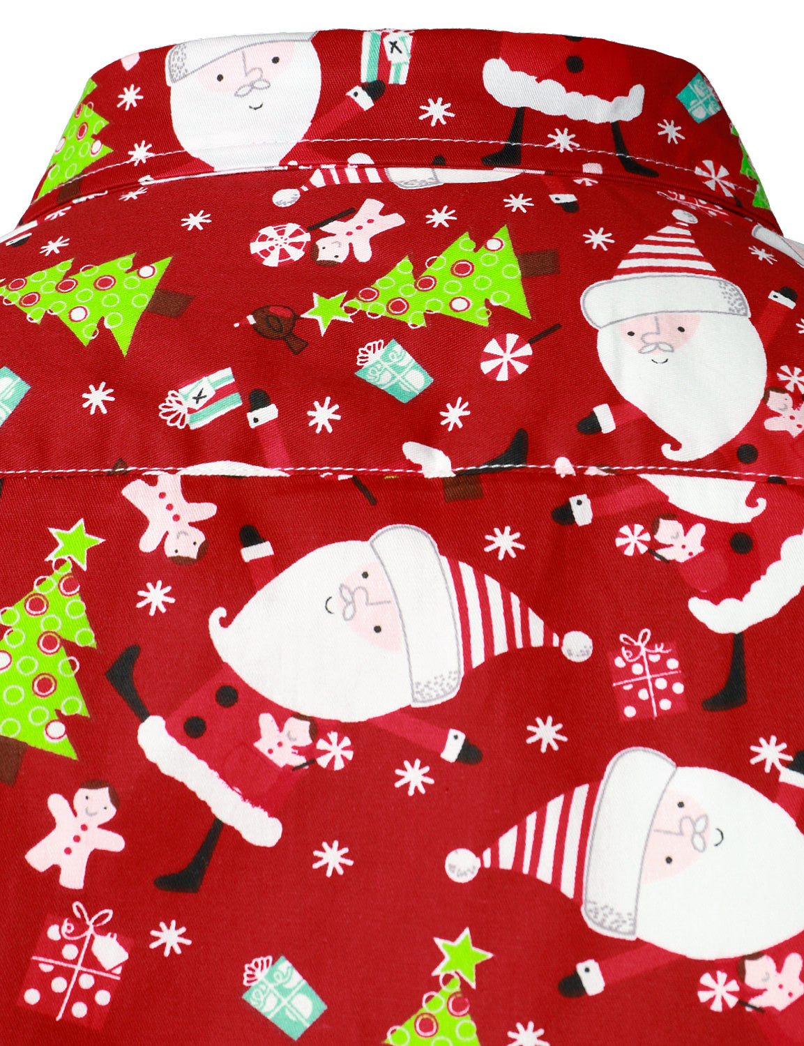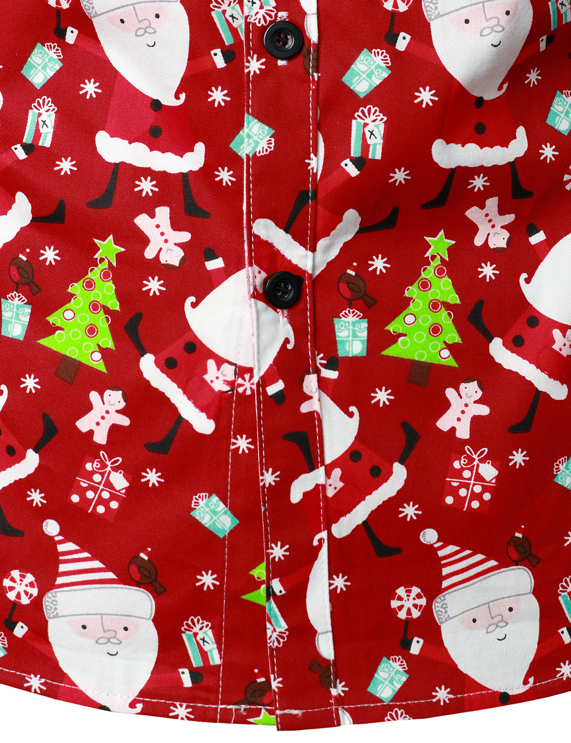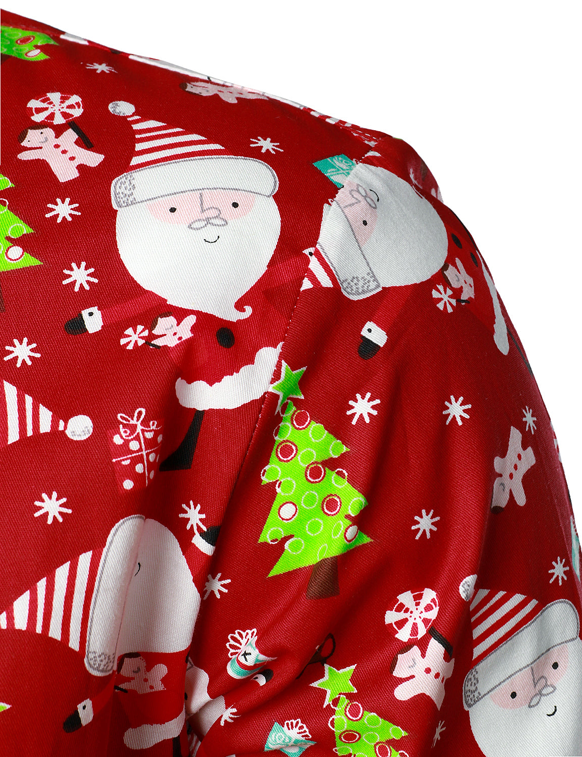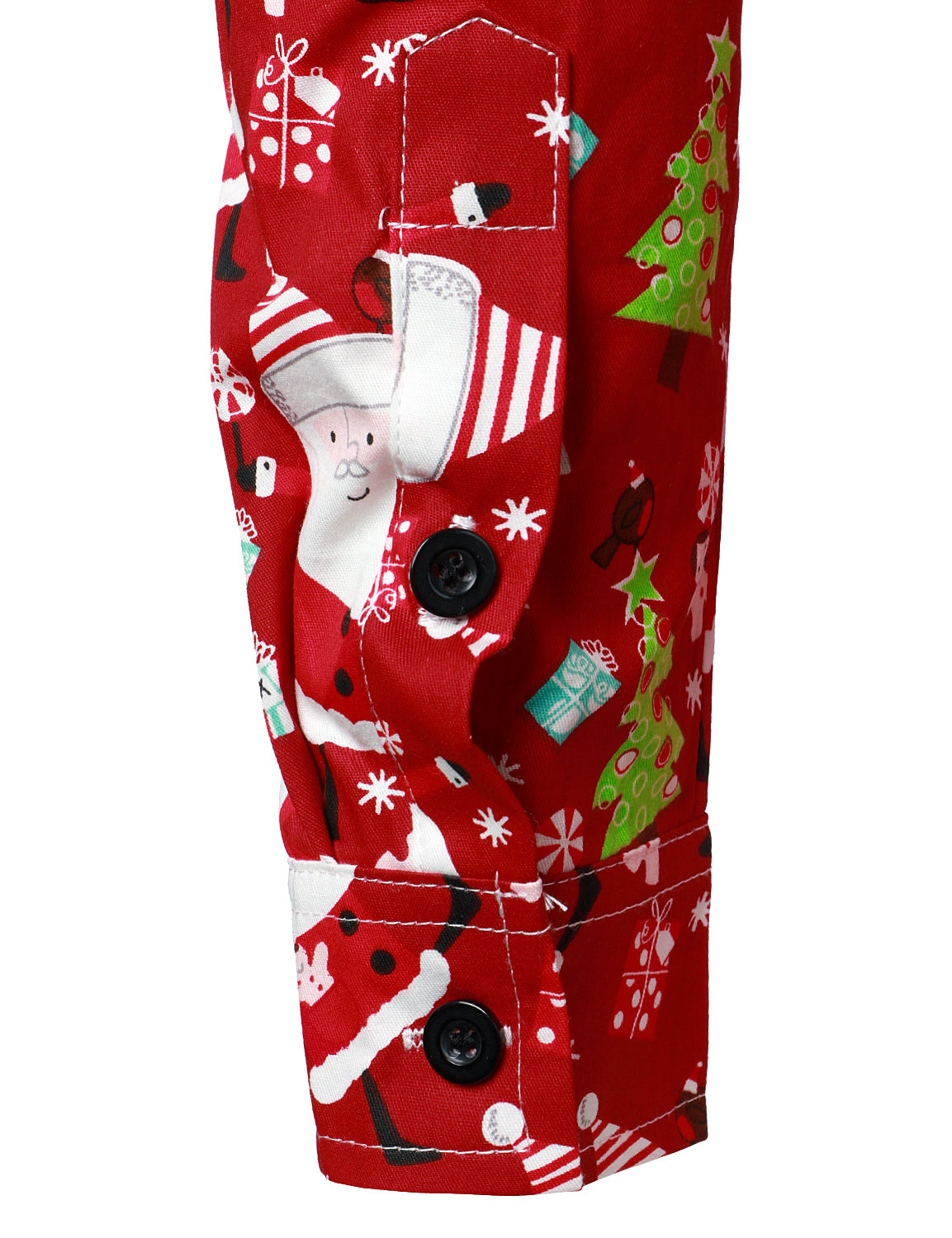 Chemise Habillée à Manches Longues Boutonnée Rouge Coupe Régulière Imprimé Père Noël pour Homme
