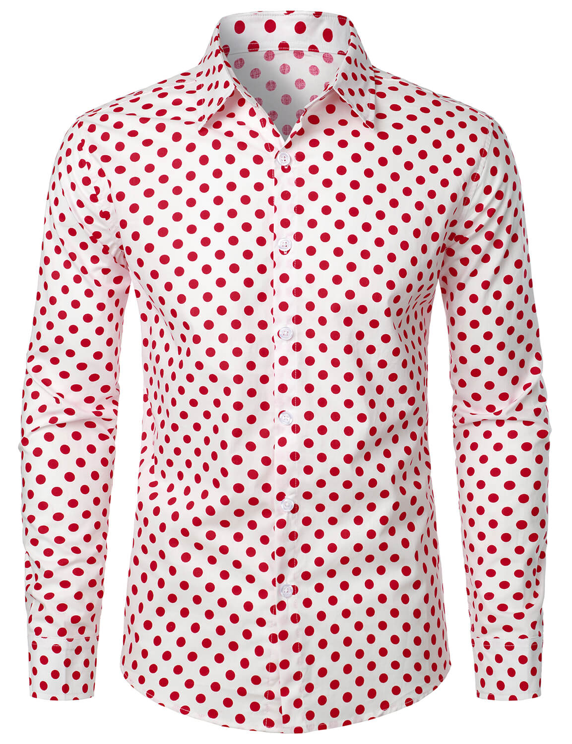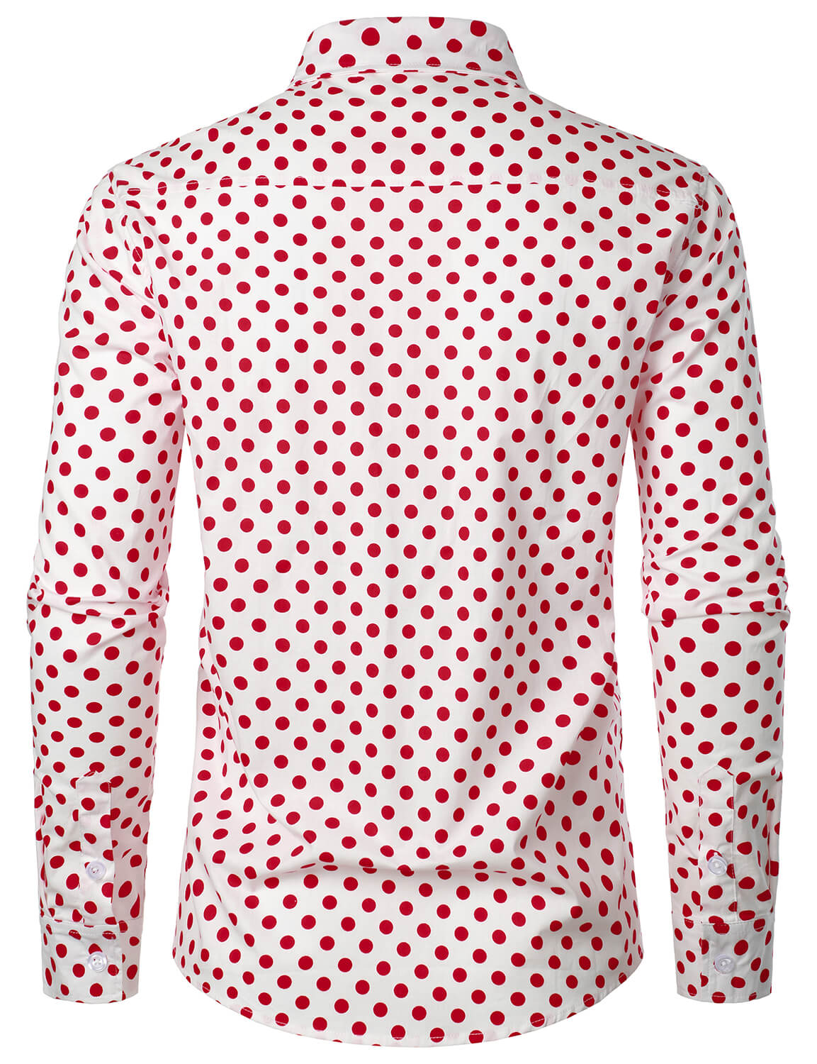 Chemise boutonnée à manches longues en coton à pois vintage pour homme