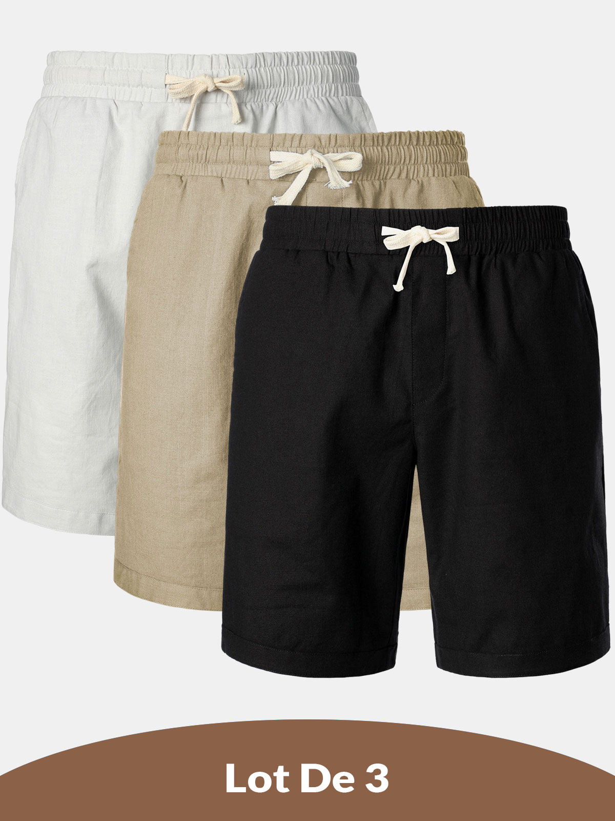 Lot de 3 | Short décontracté en lin et coton respirant de couleur unie pour homme