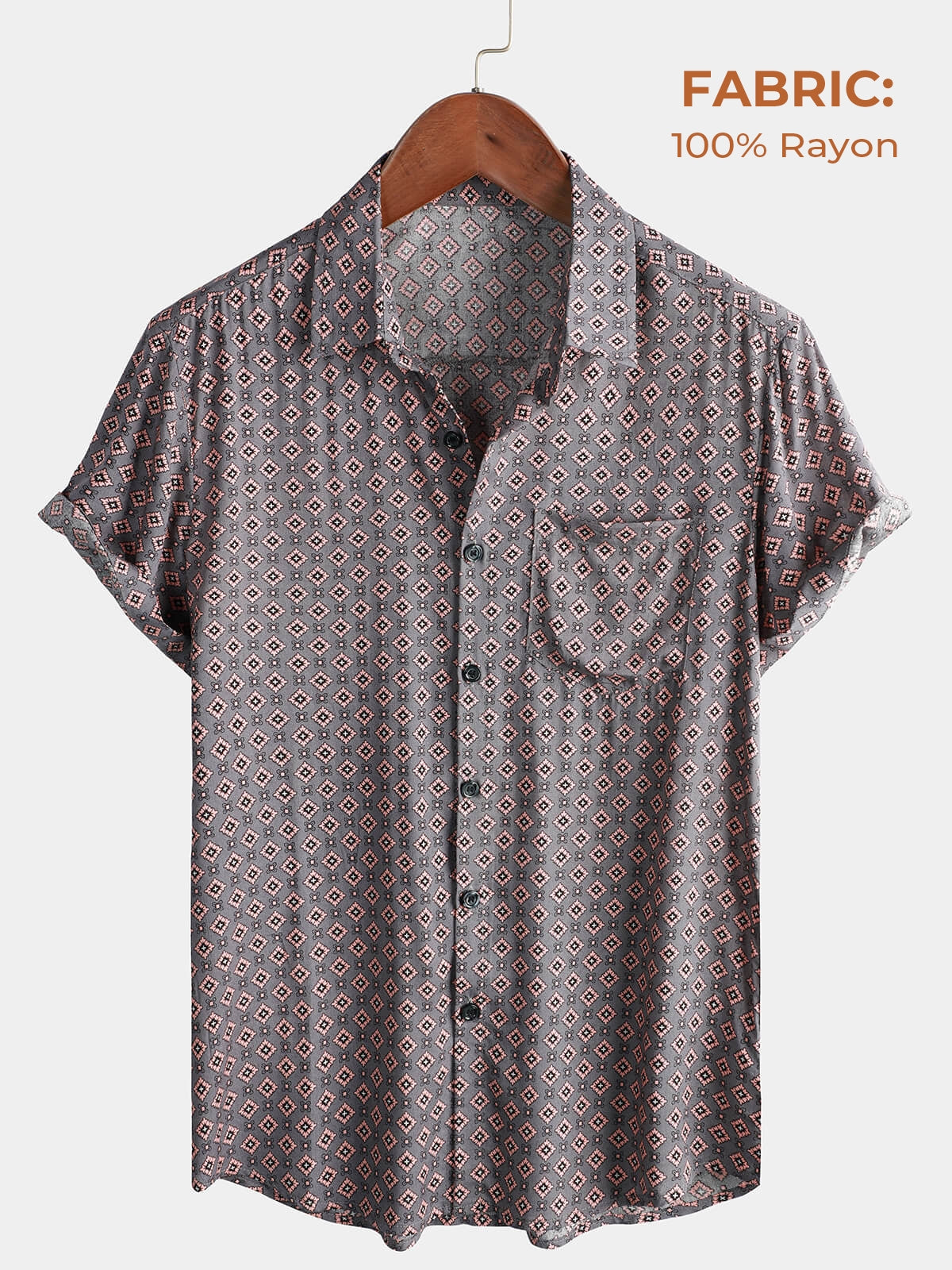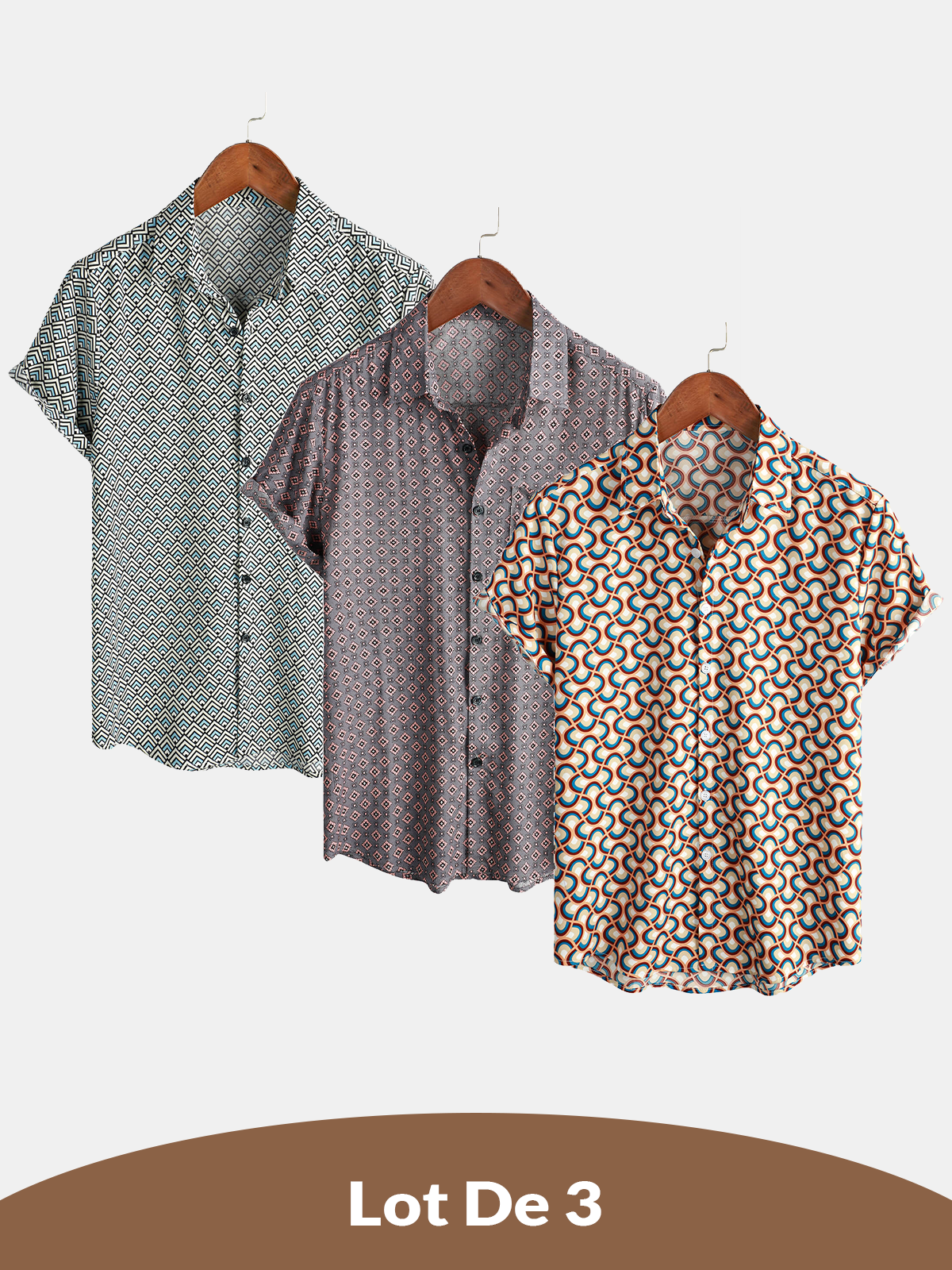 Lot de 3 | Chemise à manches courtes rétro pour hommes, Vintage, géométrique, boutonnée, vacances, été