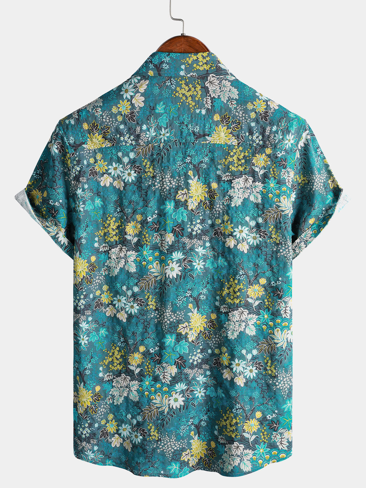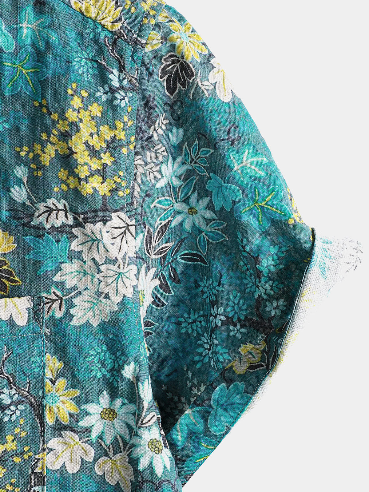 Chemise Homme Hawaïenne Tropicale Blanche et Jaune à Imprimé Floral avec Poche Poitrine Manches Courtes