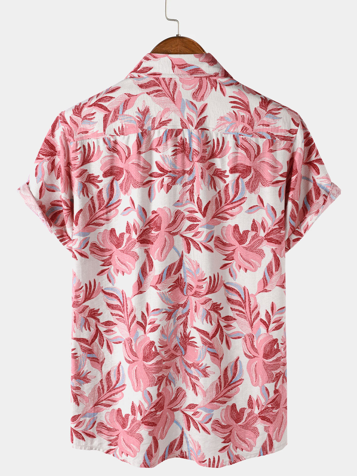 Chemise Homme Hawaïenne Rose Tropicale à Fleurs Manches Courtes