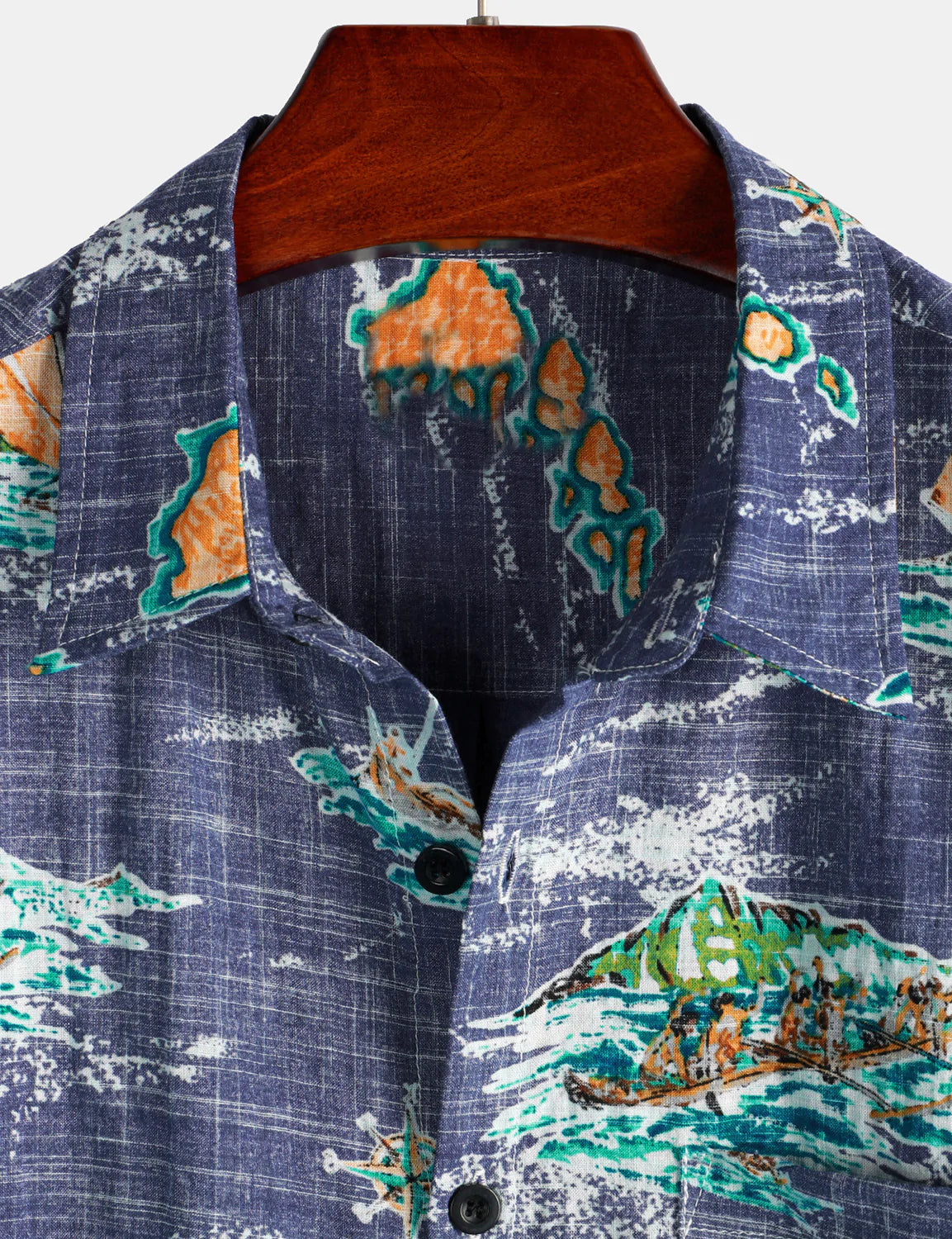 Chemise Aloha à manches courtes pour homme en coton bleu marine îles hawaïennes croisière plage boutonnée