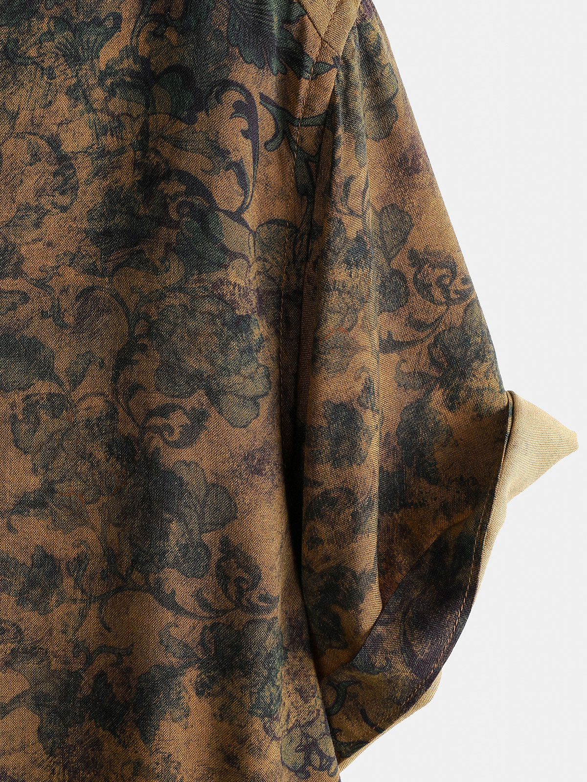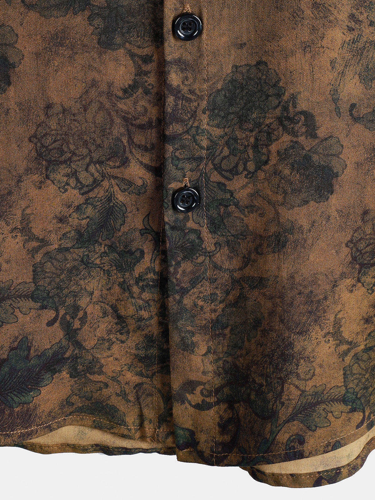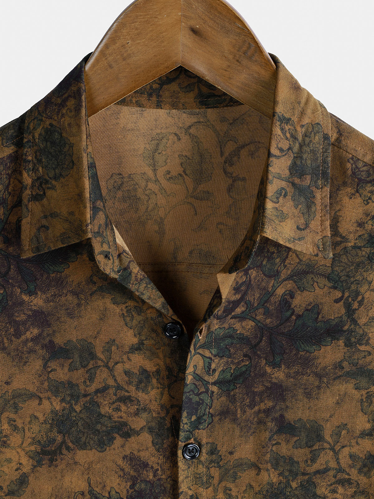 Chemise Homme Imprimé Floral Vintage Style Bohème Casual Manches Courtes
