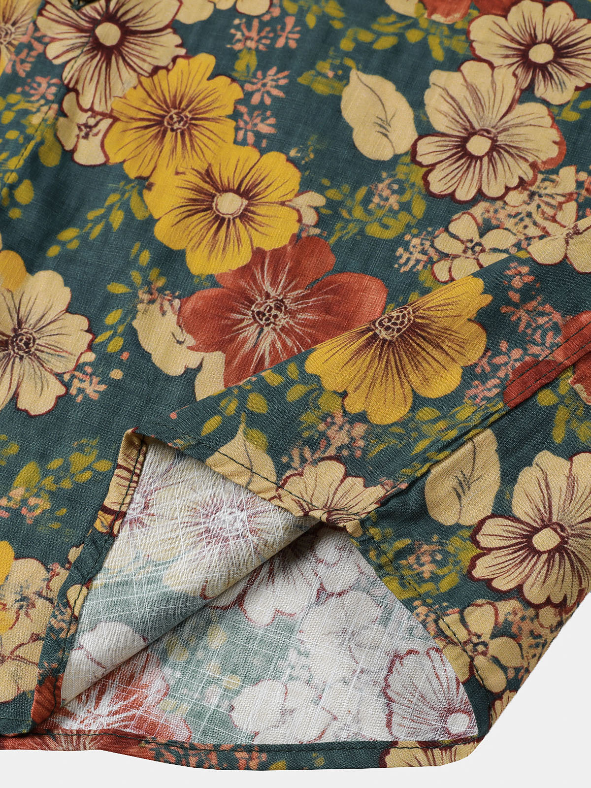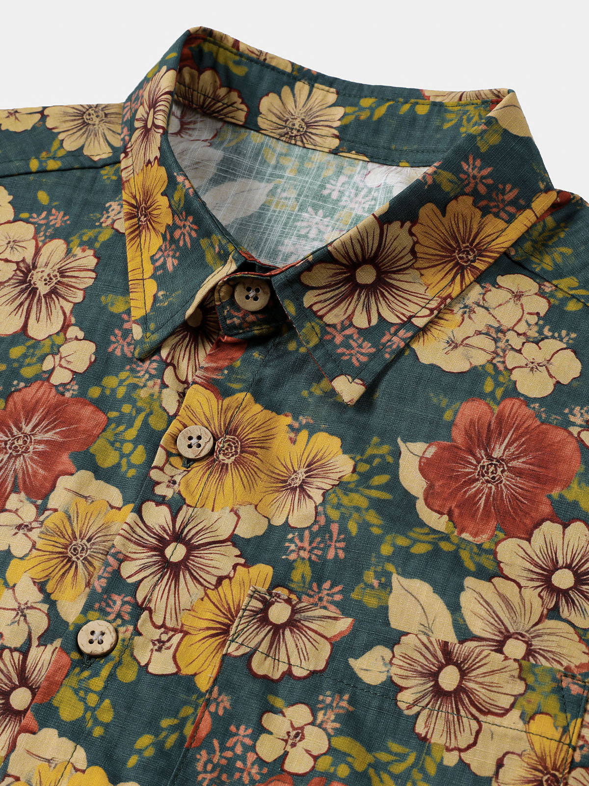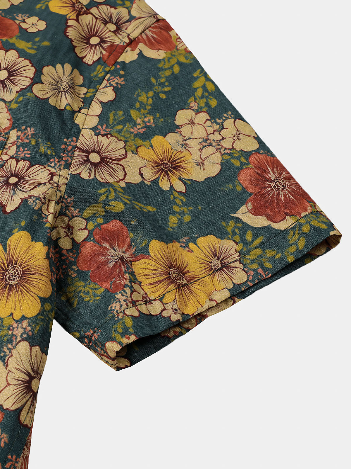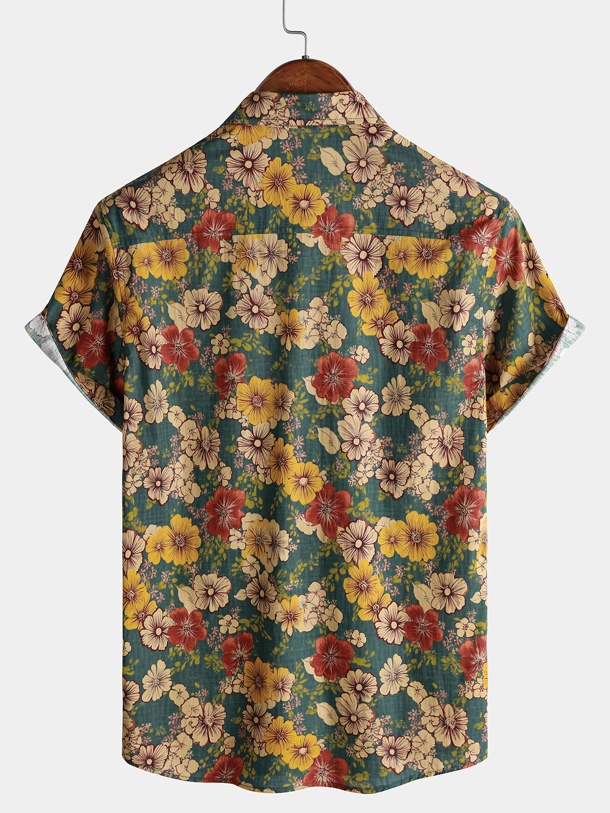 Chemise Homme Imprimé Floral Vintage Style Bohème Casual Manches Courtes