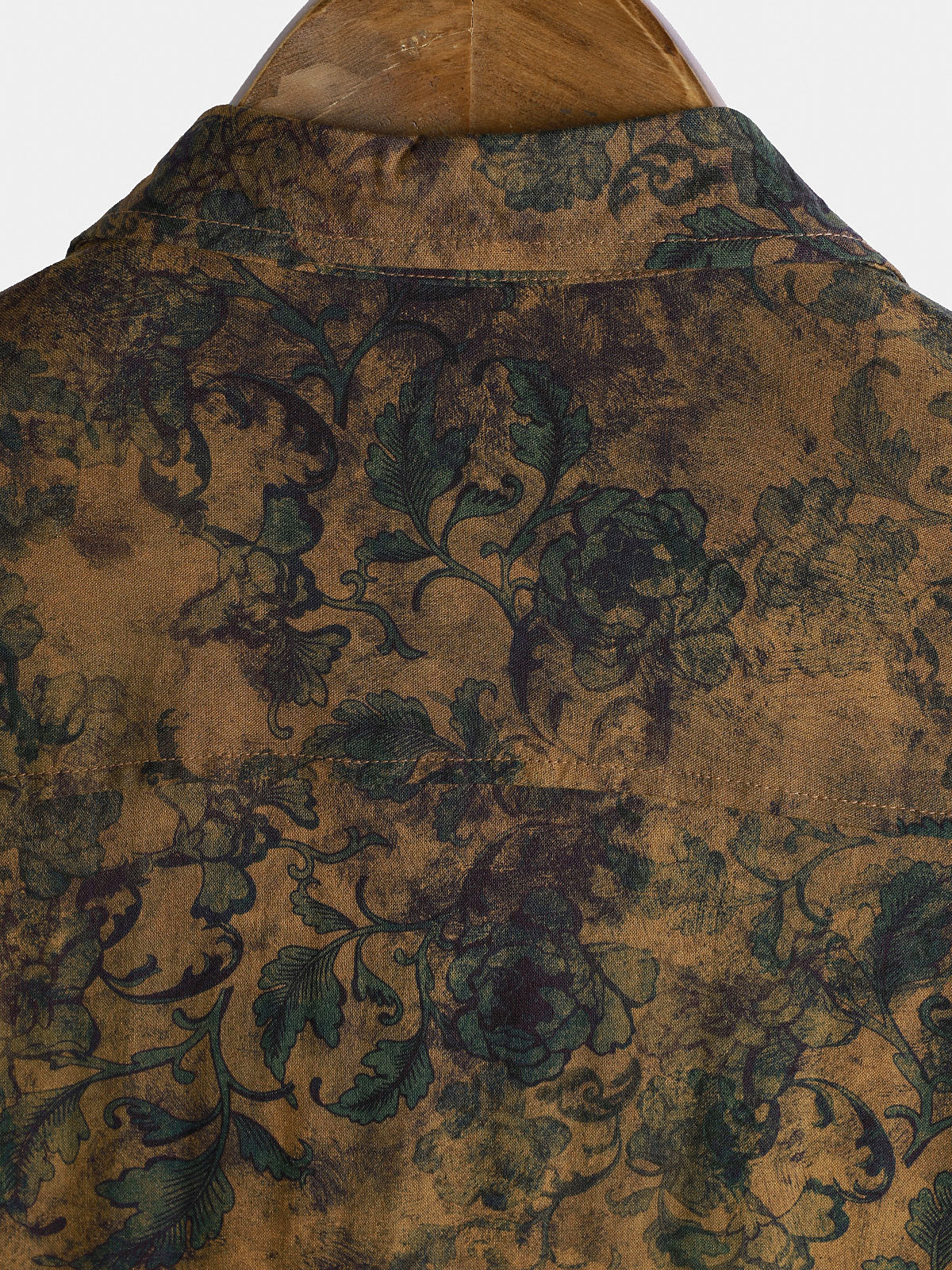 Chemise Homme Rayonne Imprimé Floral Bohème Vintage Manches Courtes