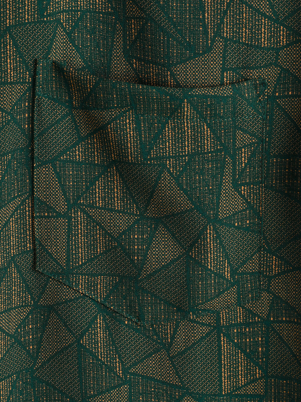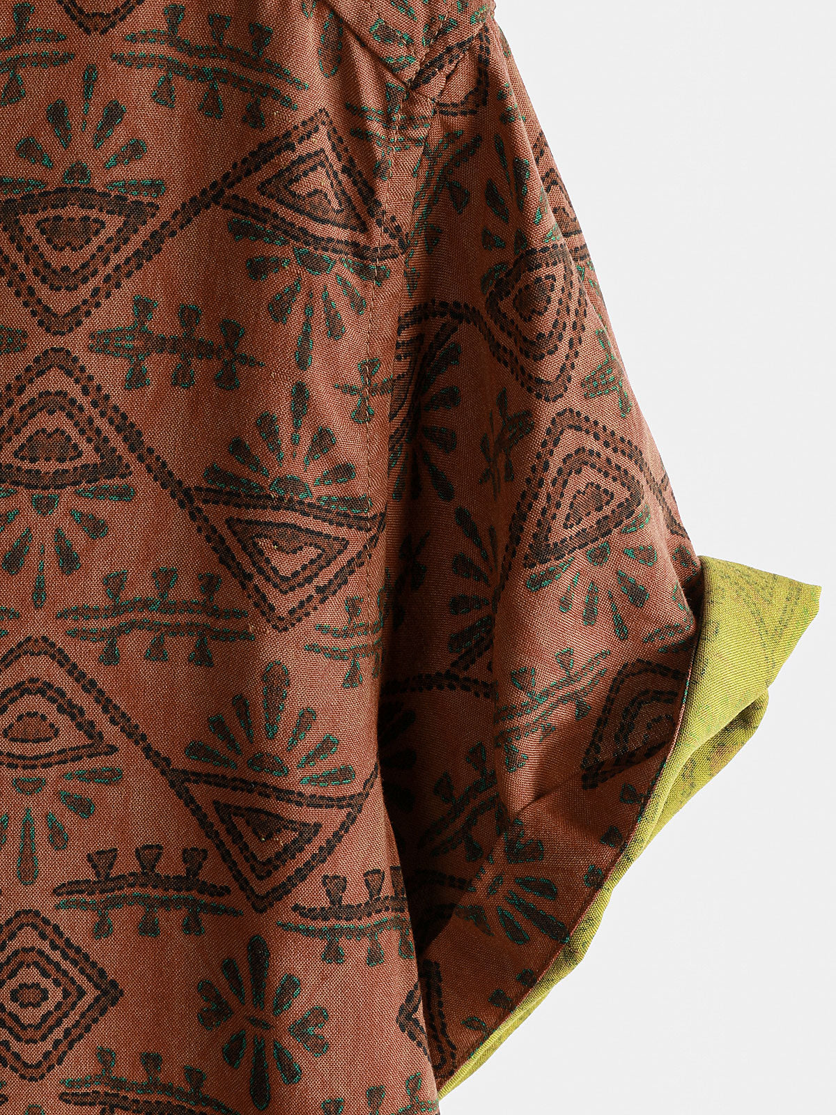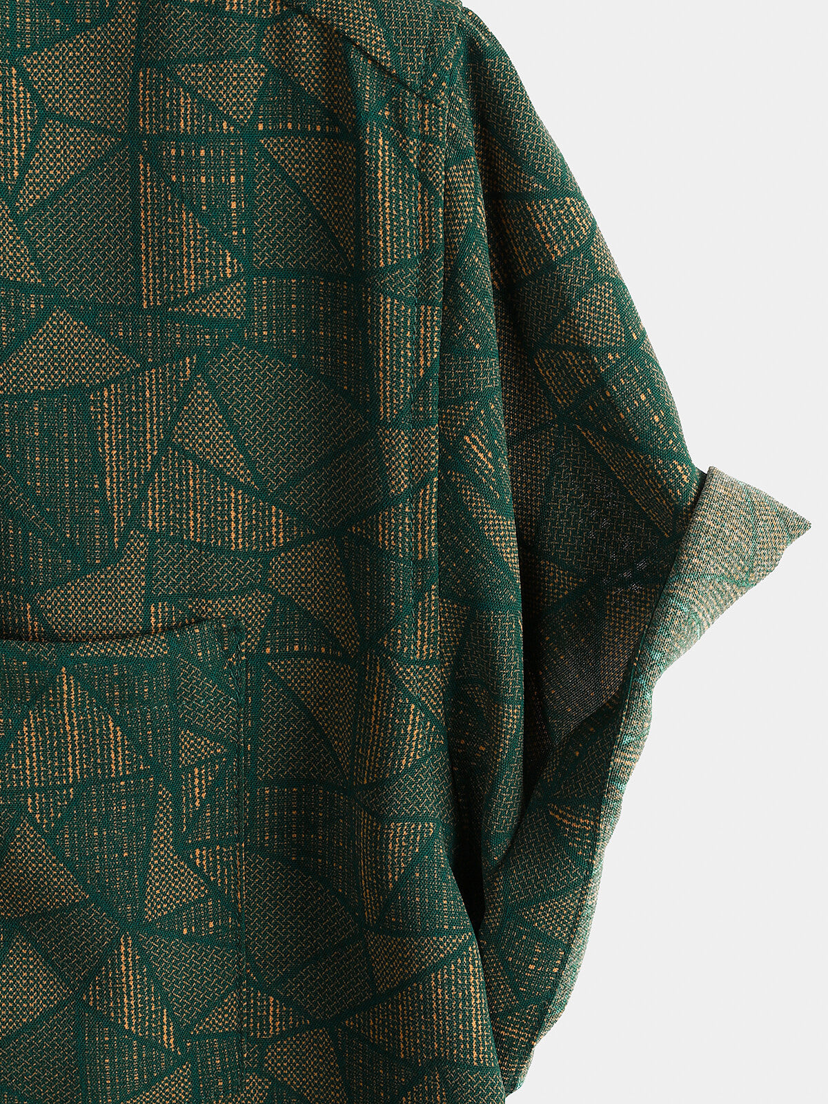 Chemise Homme Manches Courtes Bohème à Imprimé Géométrique Verte