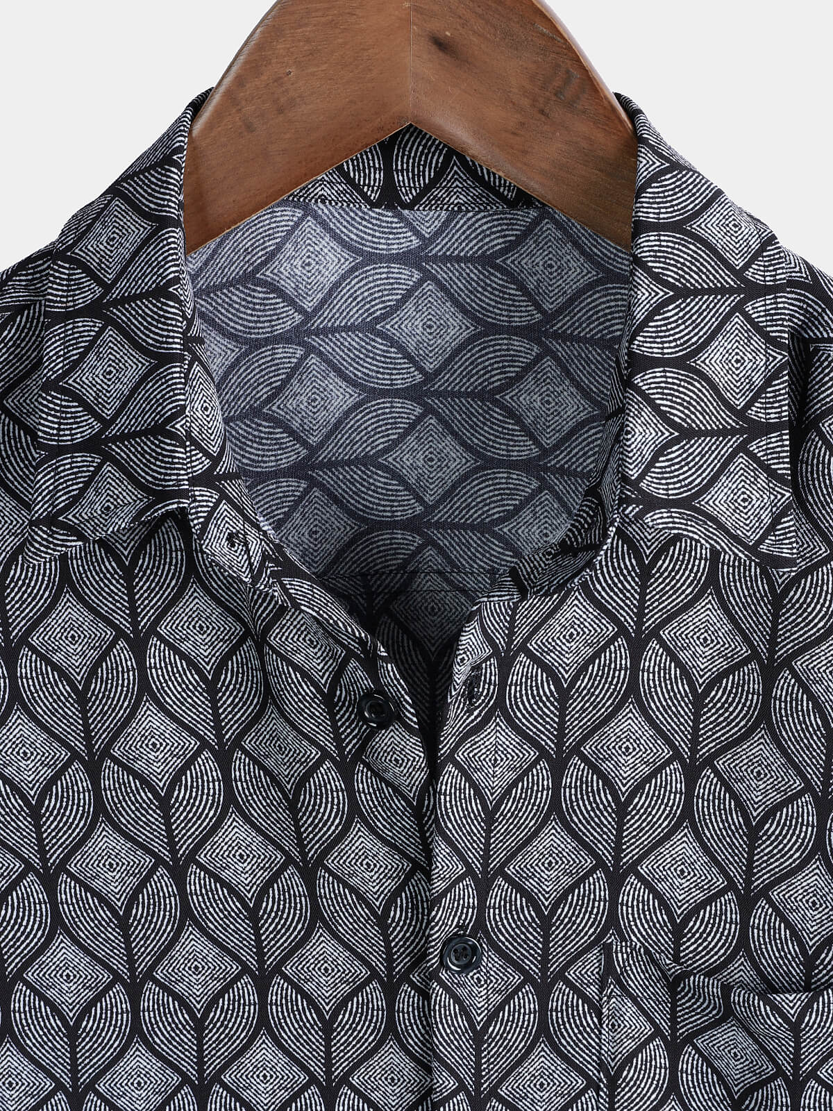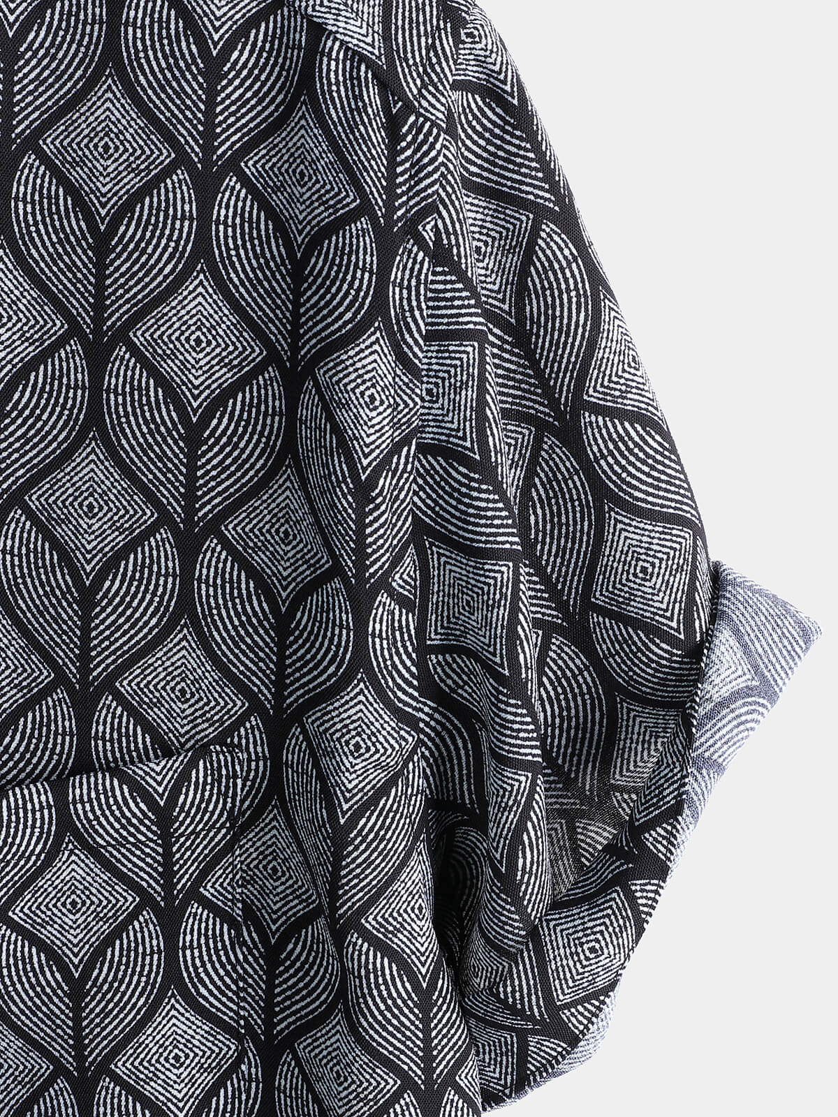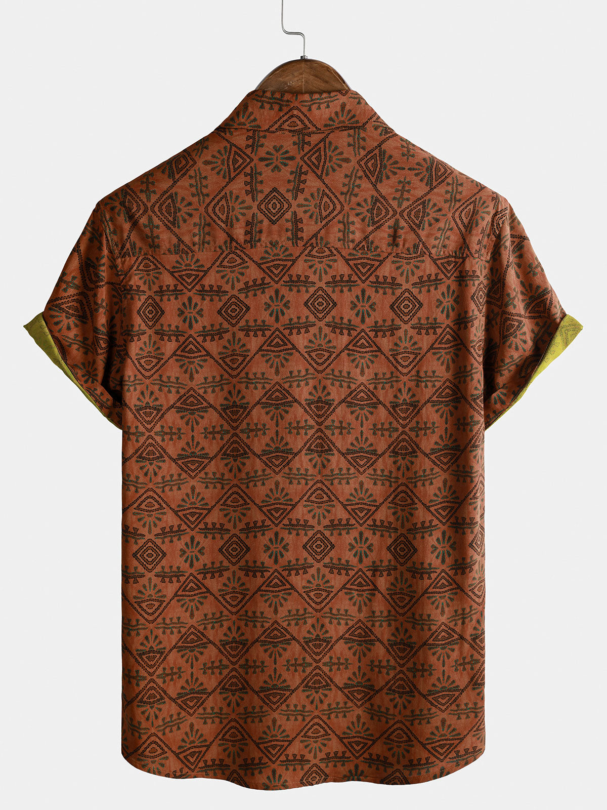 Chemise Homme Manches Courtes Bohème Décontractée à Imprimé Géométrique