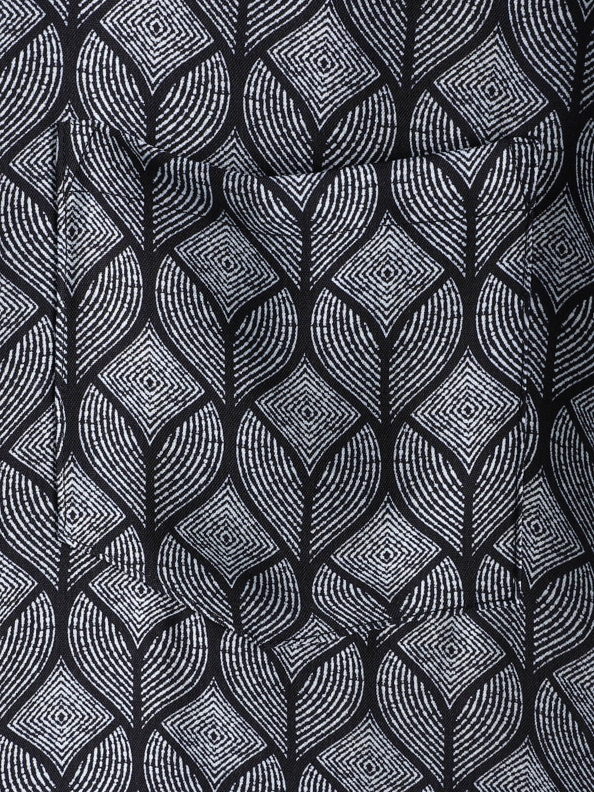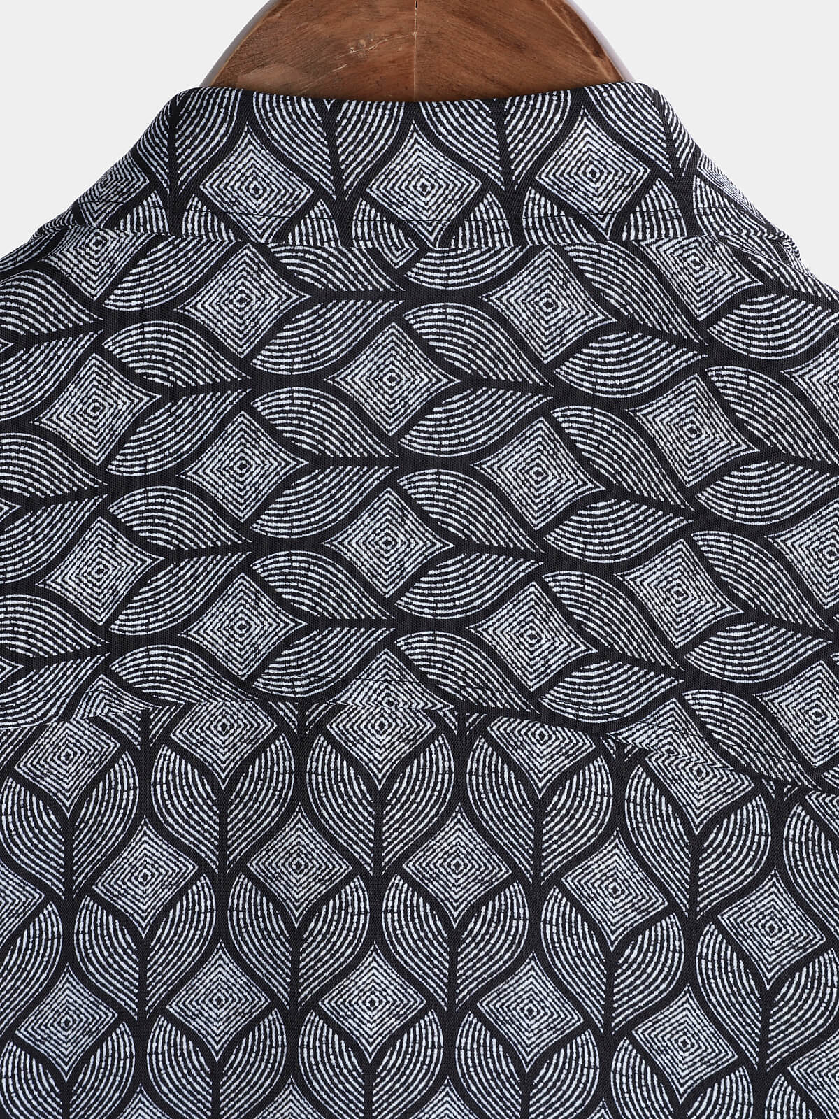 Chemise Homme Rétro Imprimé Géométrique Noir avec Poche à Manches Courtes