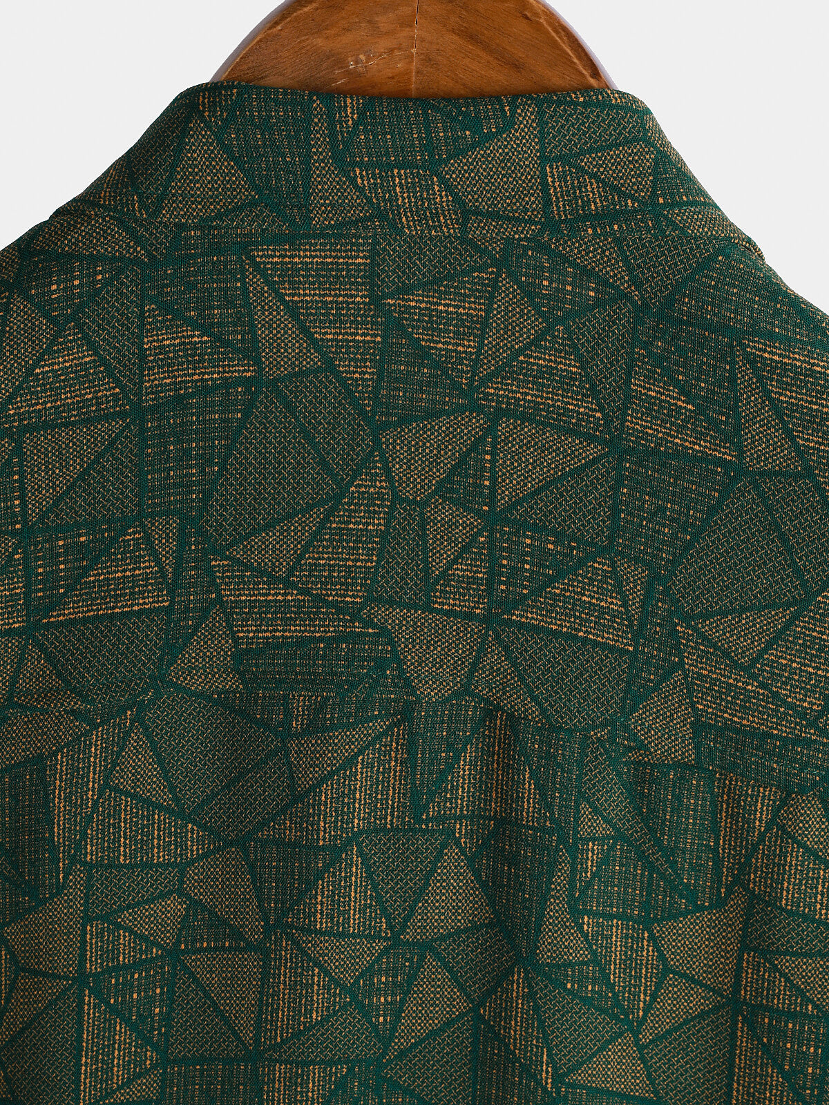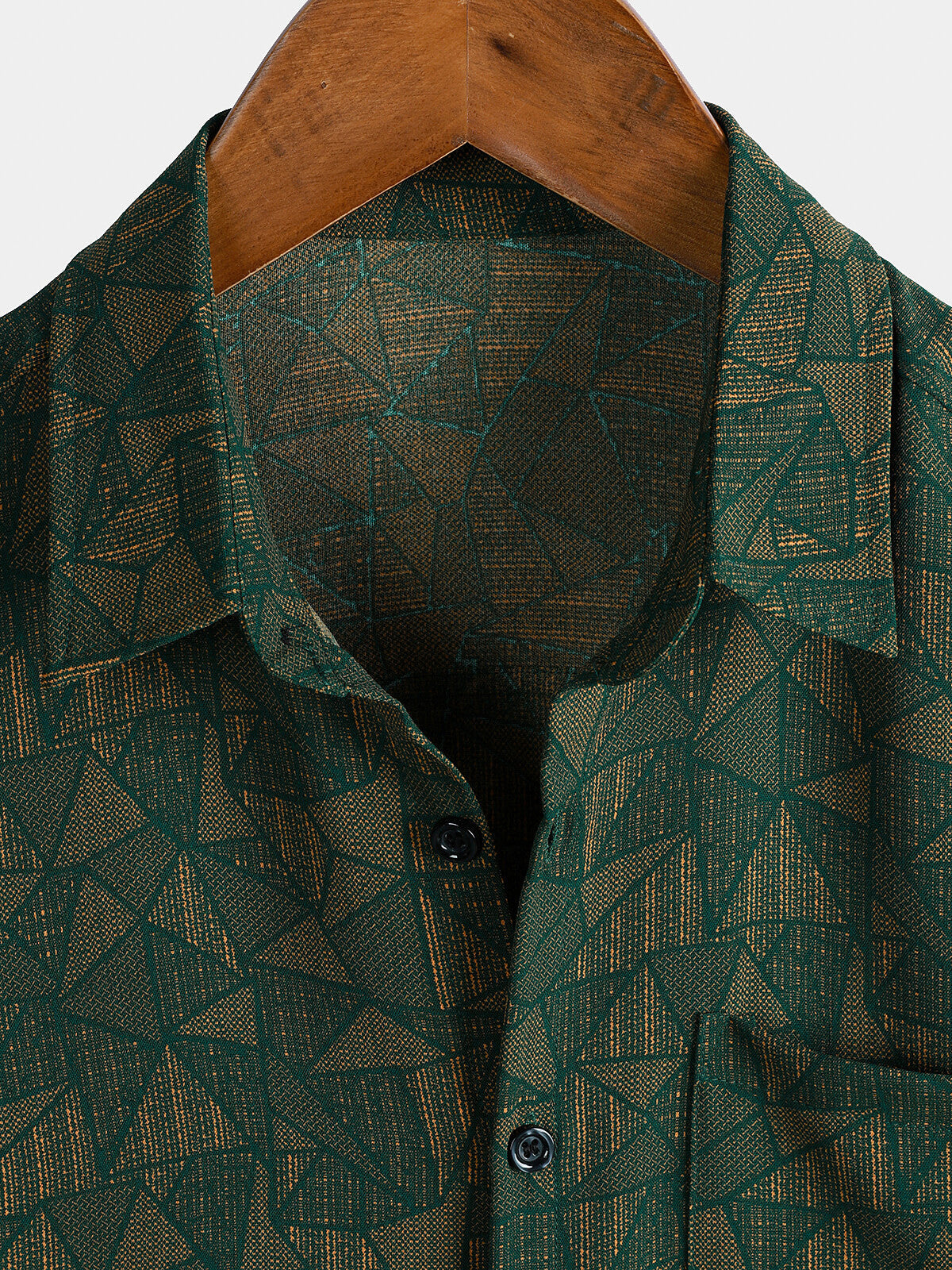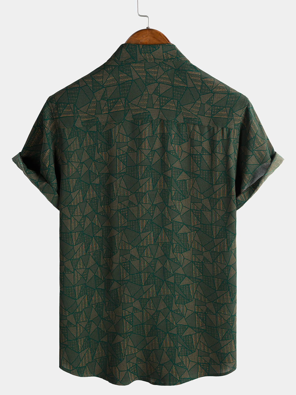 Chemise Homme Décontractée Imprimé Géométrique Abstrait Vert à Manches Courtes
