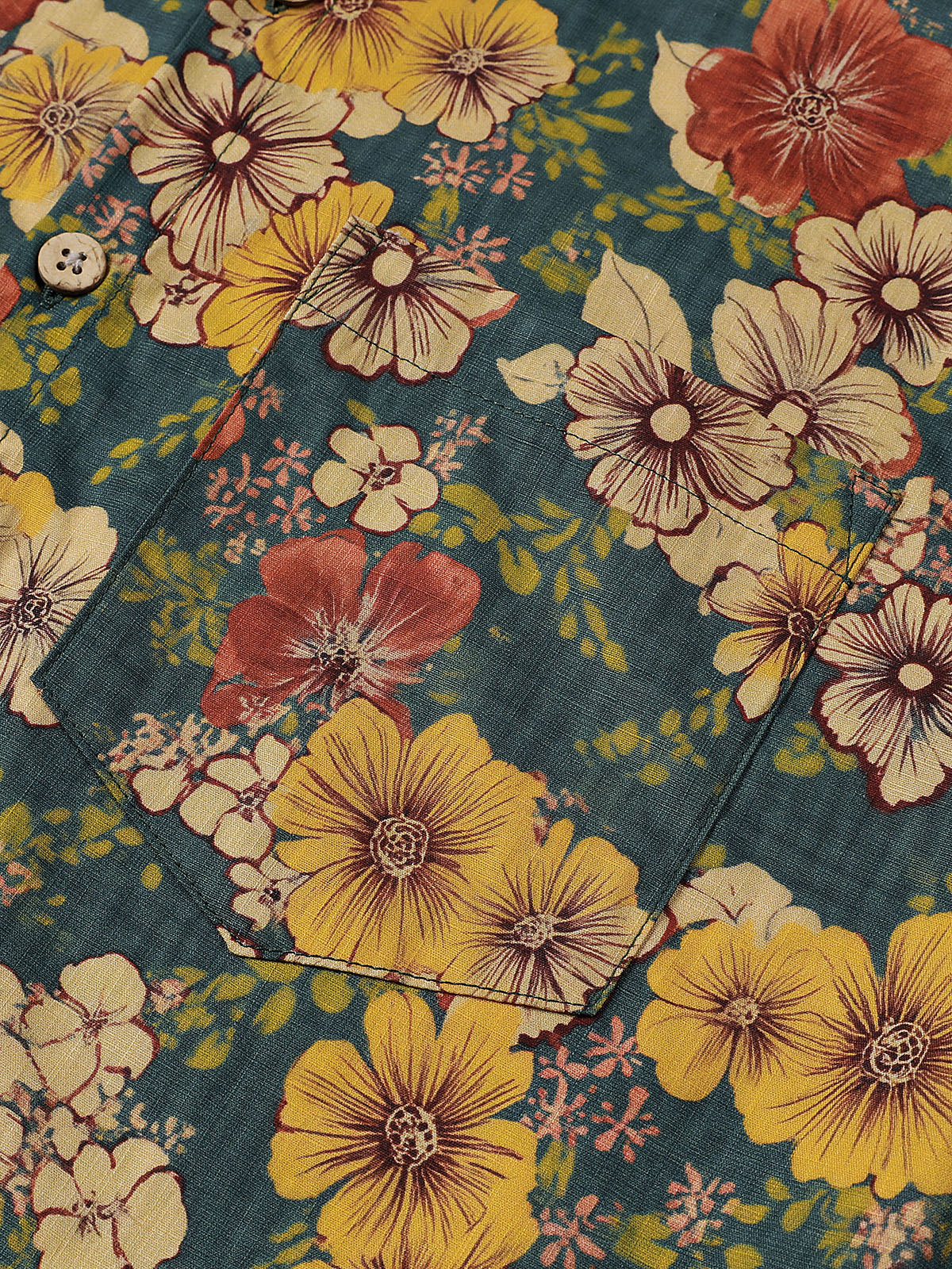 Chemise homme manches courtes imprimé floral vintage style bohème