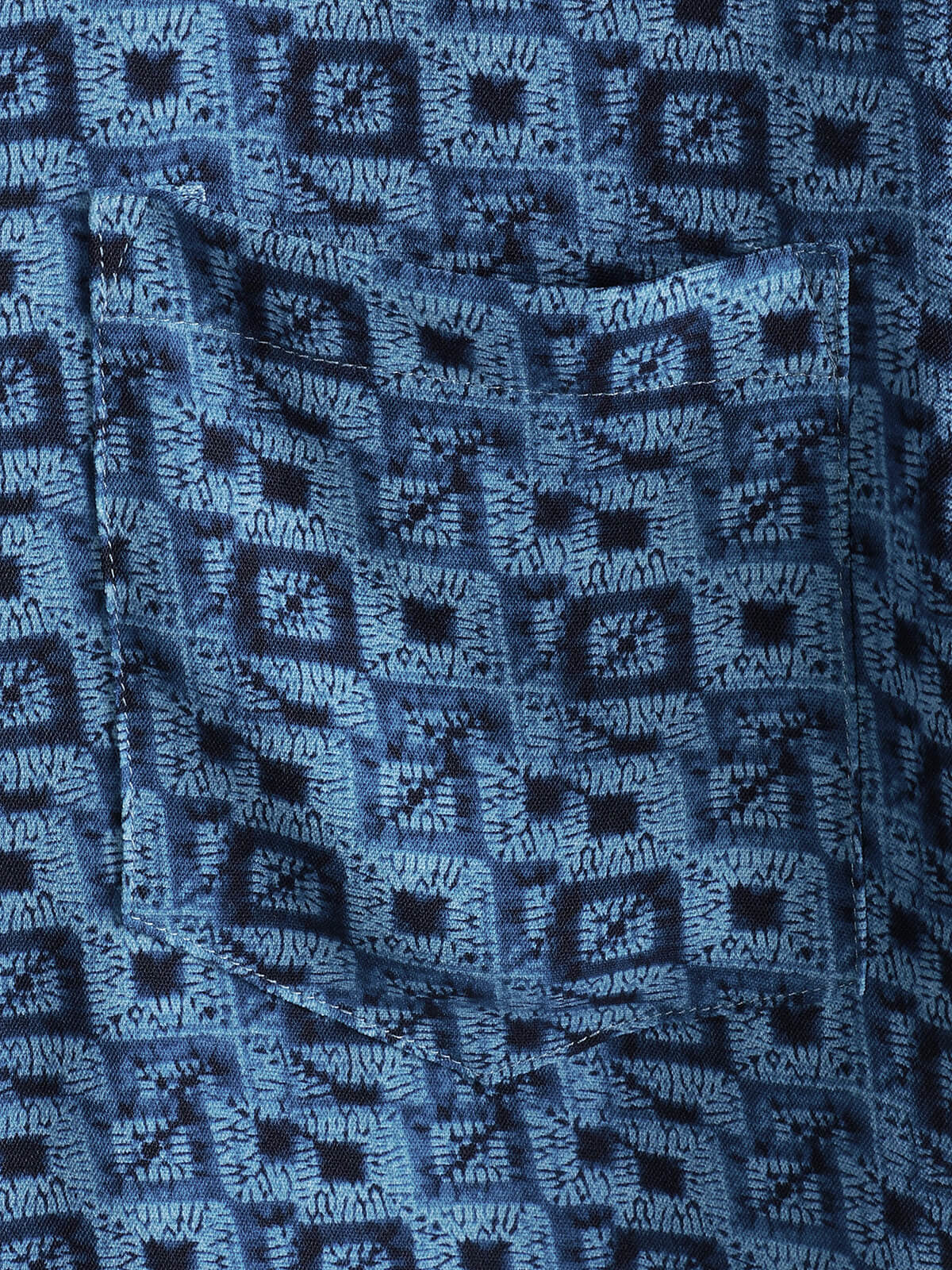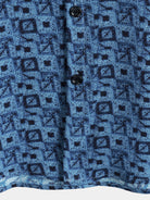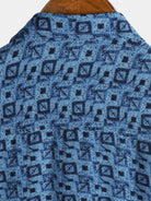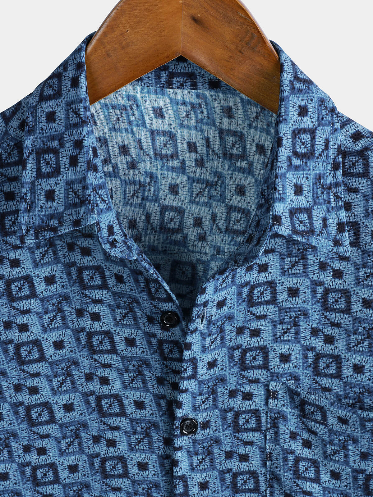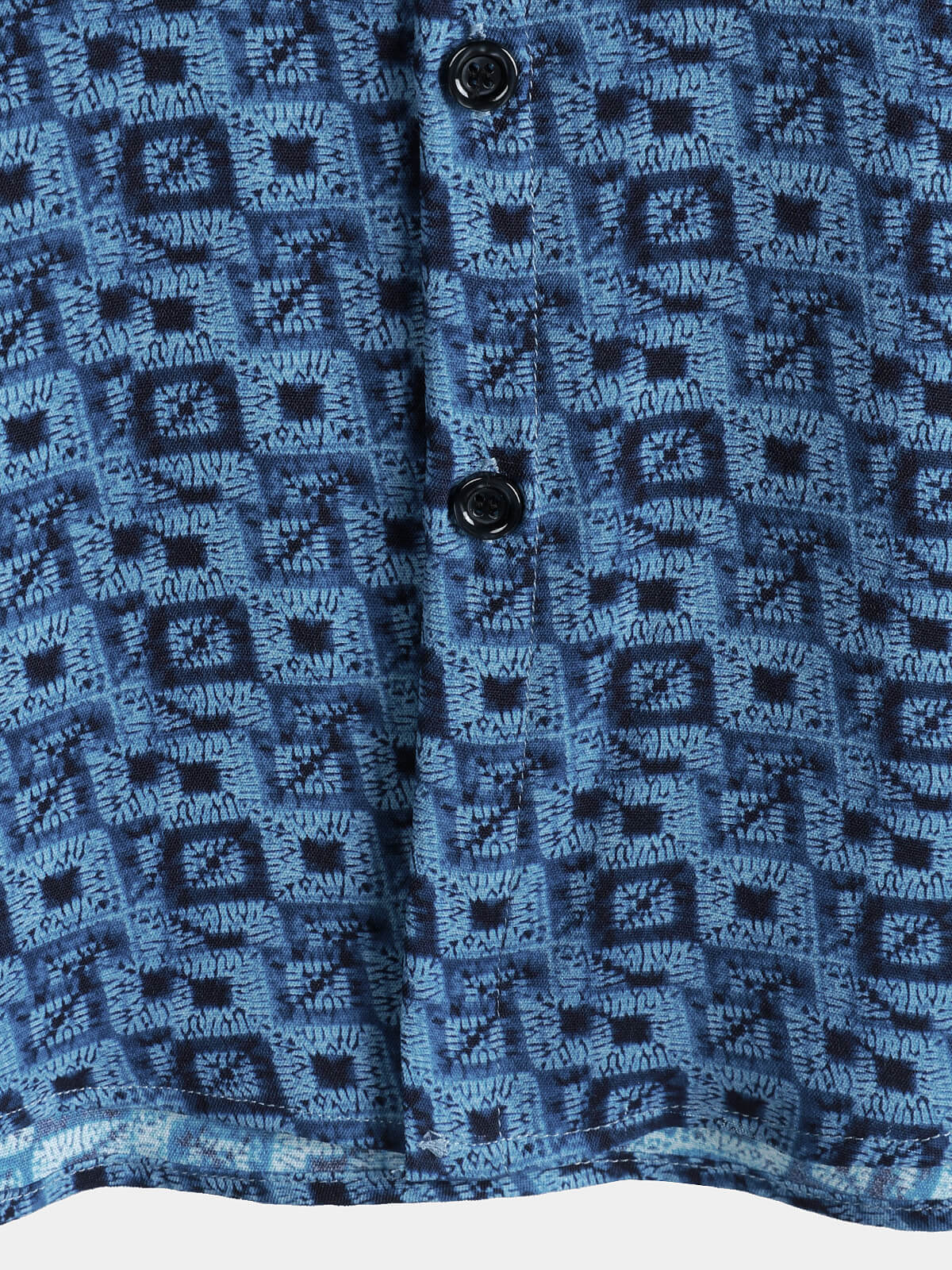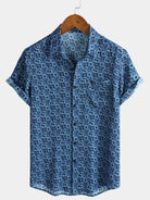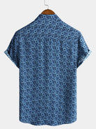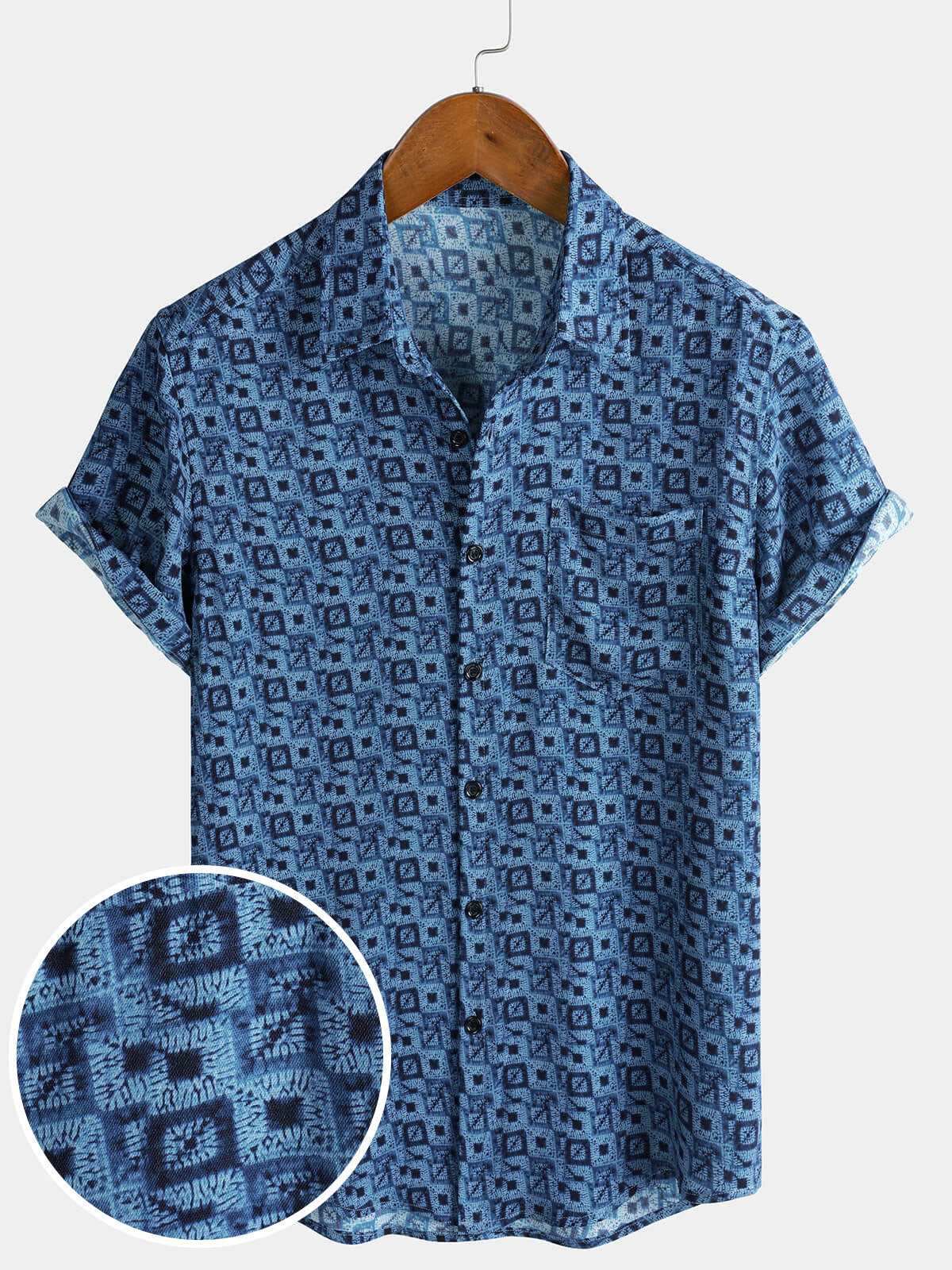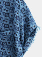 Chemise Homme Manches Courtes Bohème à Imprimé Géométrique Bleue