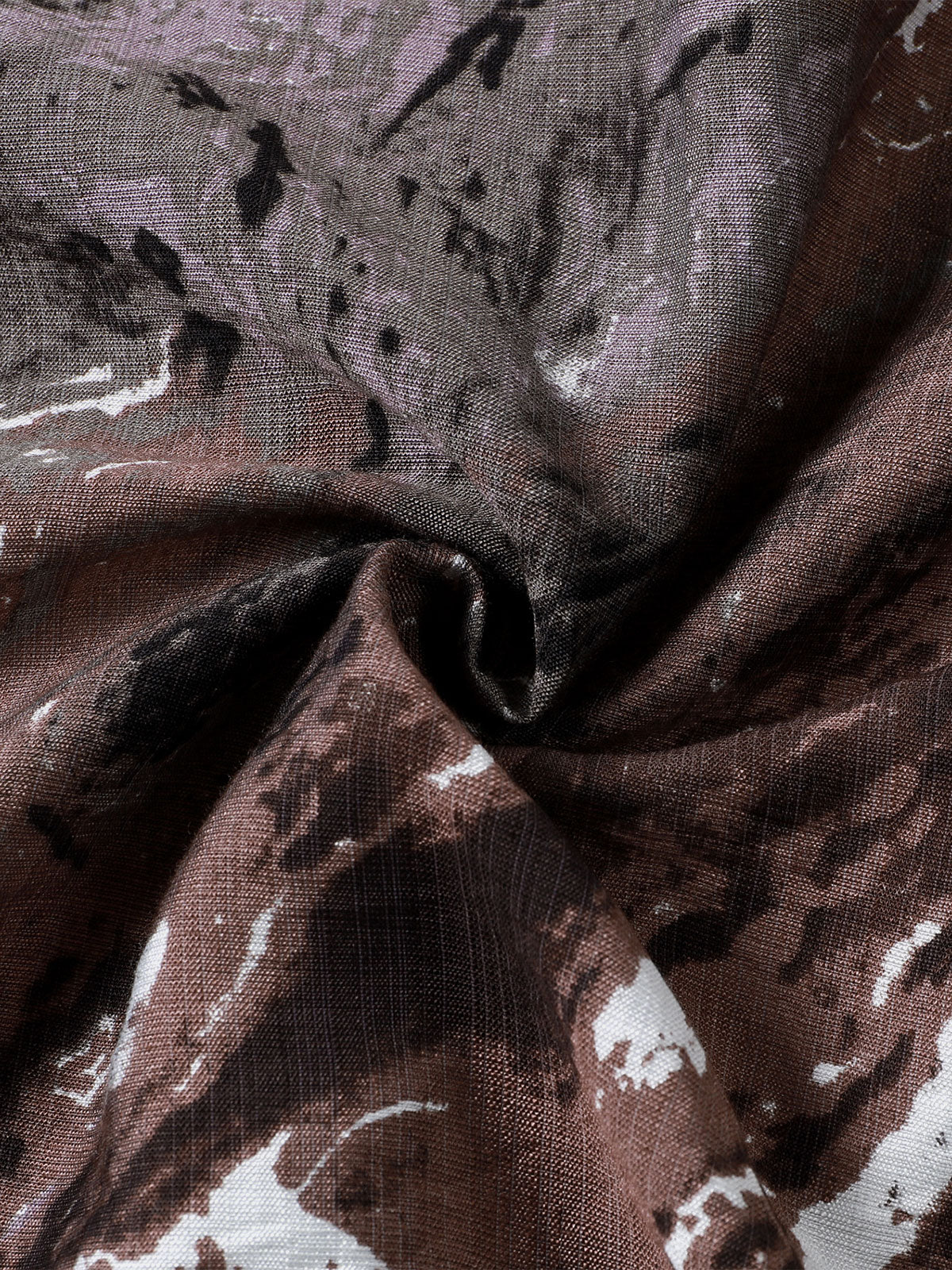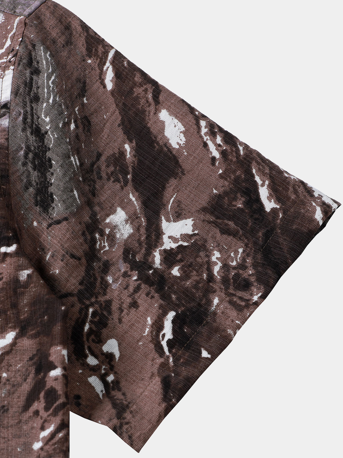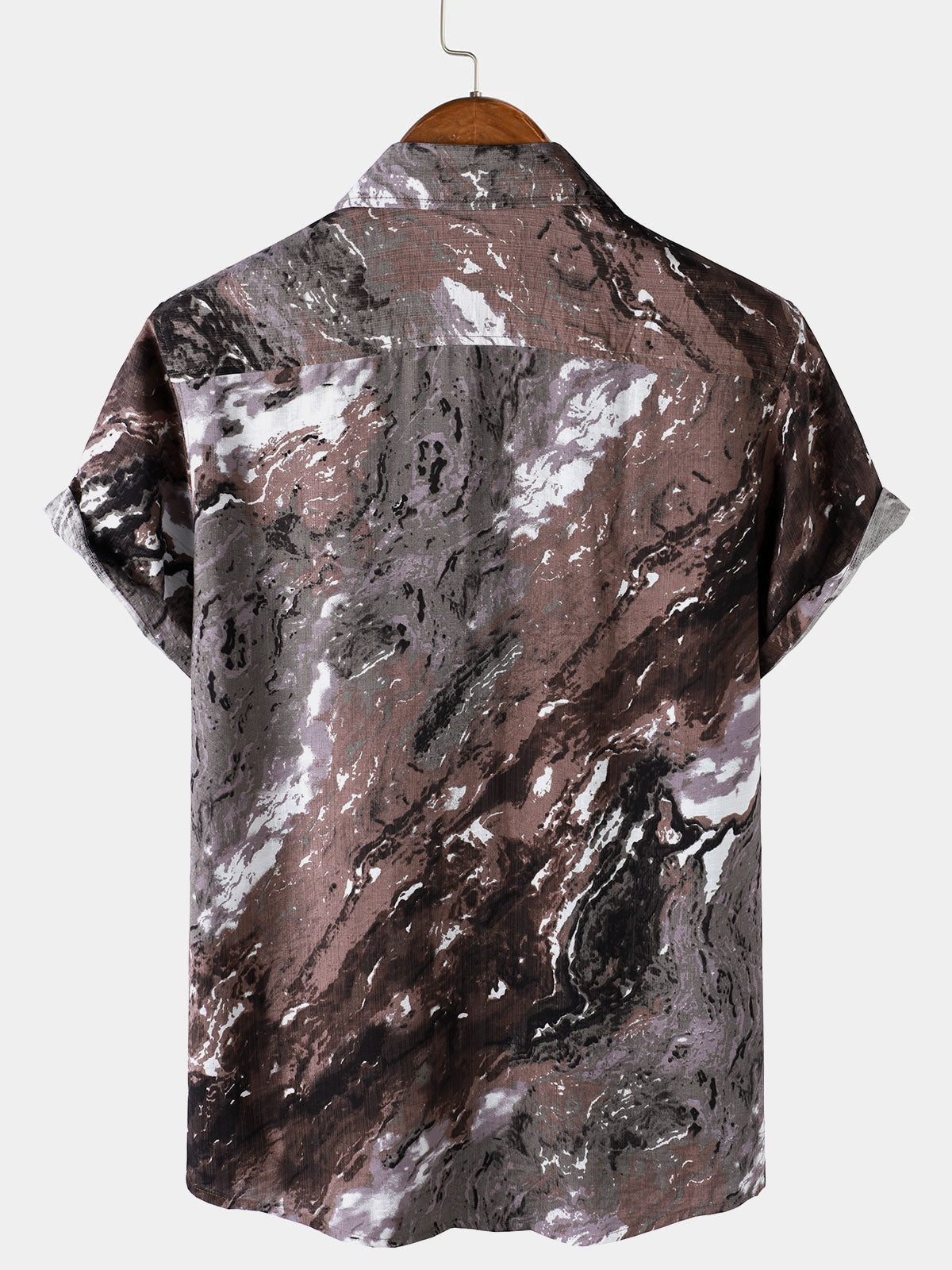 Chemise Homme Marron à Motif Abstrait Vacances Manches Courtes