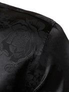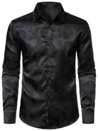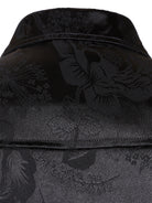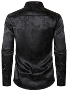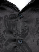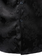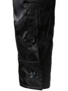 Chemise à manches longues en satin brillant noir à motif jacquard floral pour homme