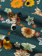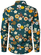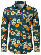 Chemise décontractée à manches longues pour homme, verte, à imprimé floral