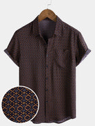 Chemise Homme Manches Courtes Bohème Décontractée à Imprimé Géométrique