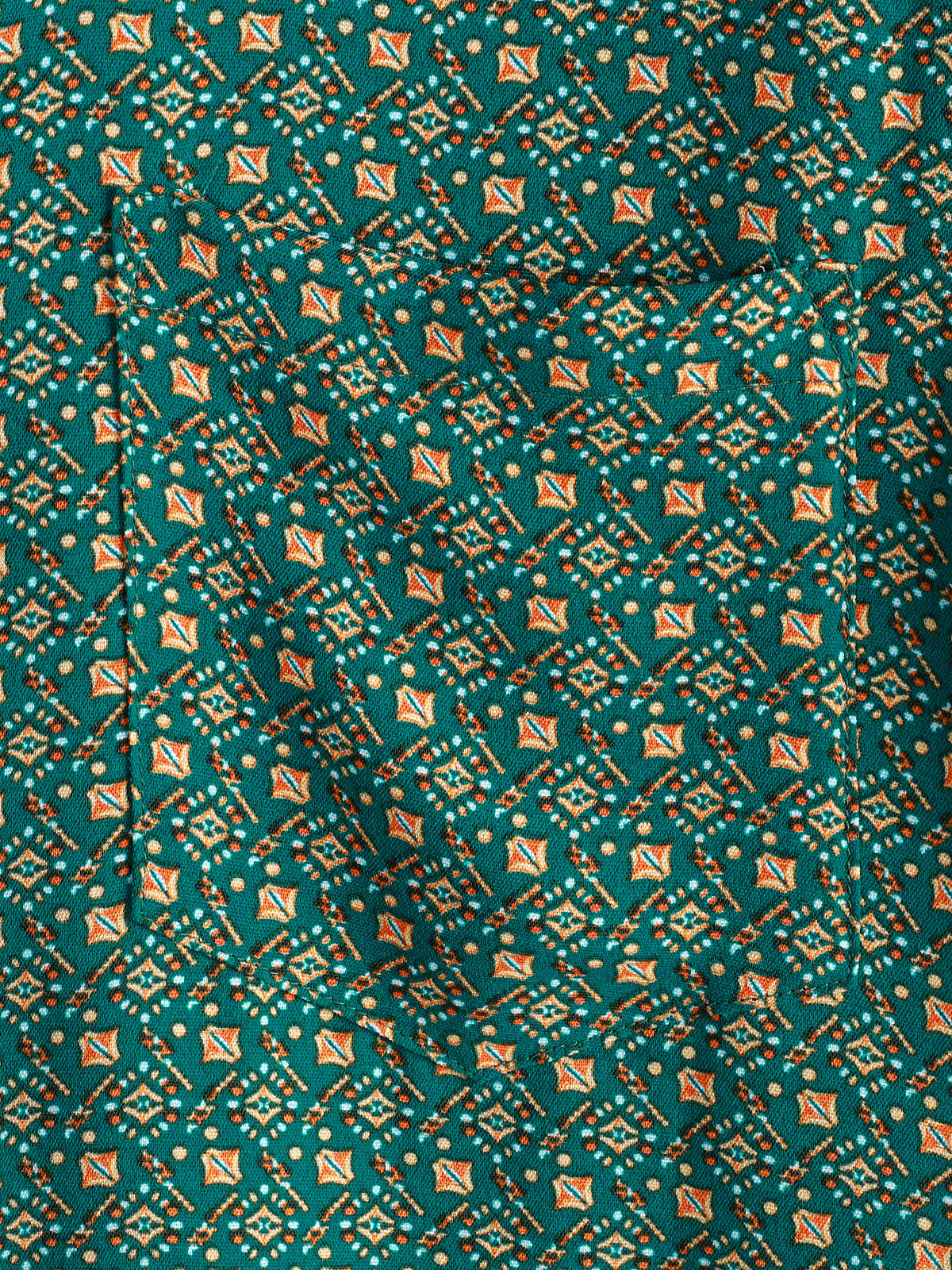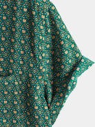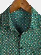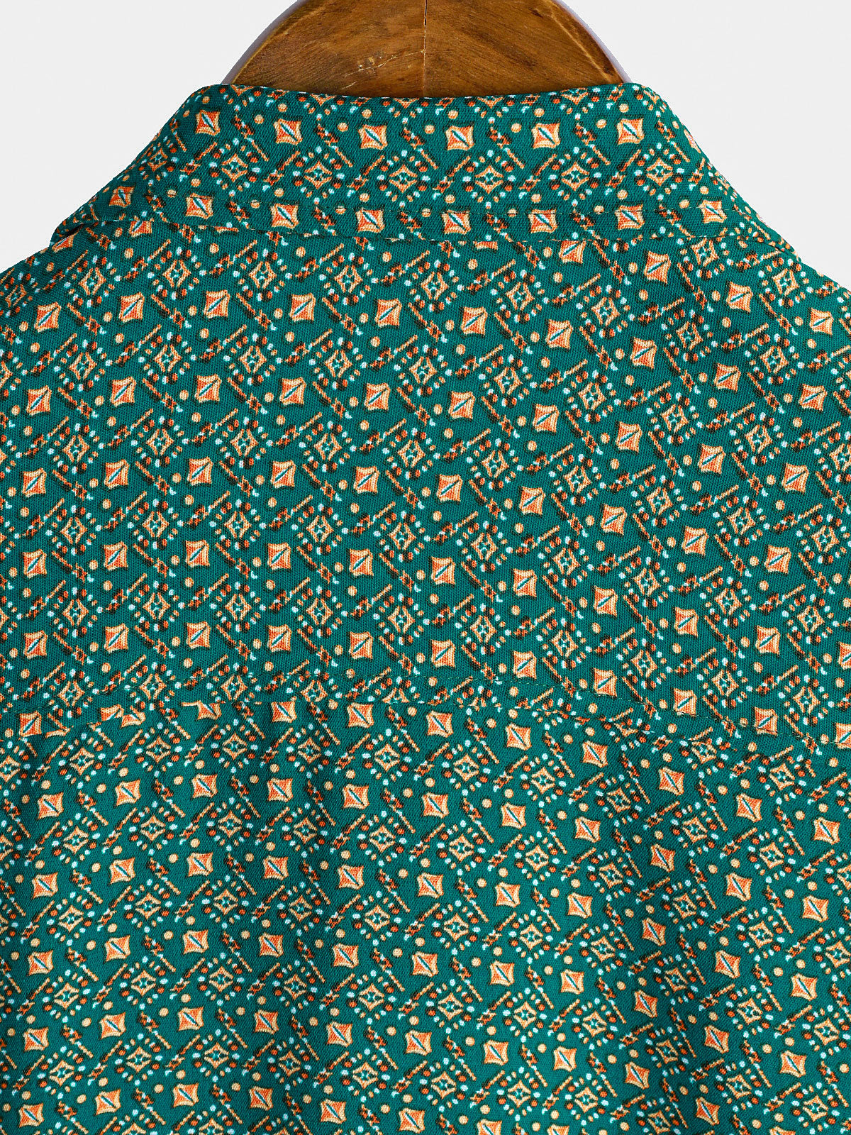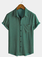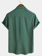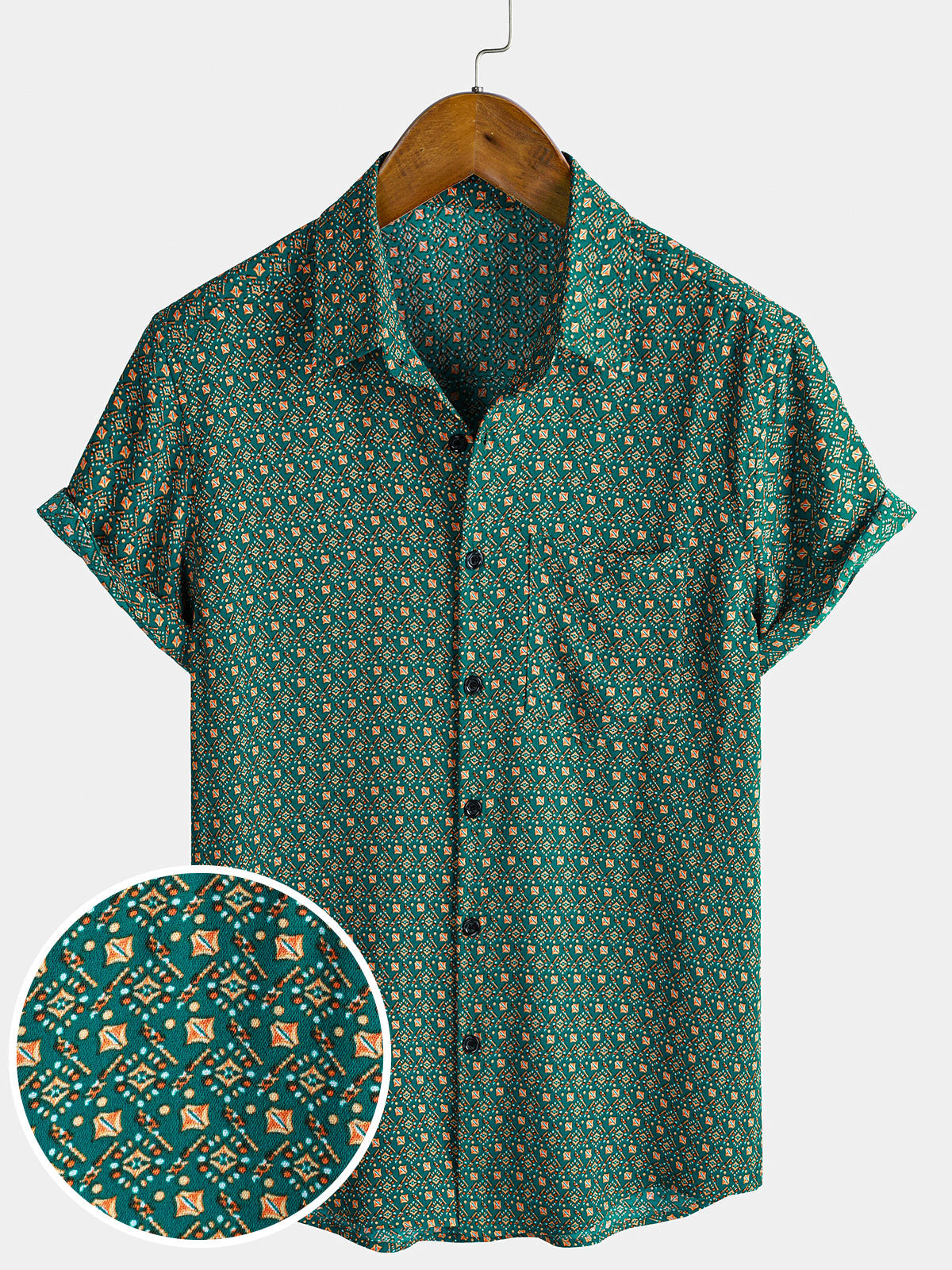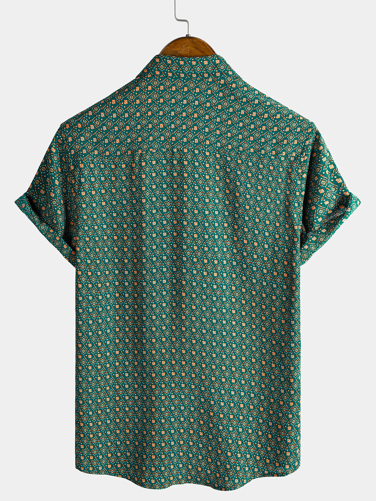 Chemise Homme Manches Courtes Bohème à Imprimé Géométrique Verte