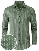 Chemise à manches longues verte à imprimé géométrique rétro pour homme