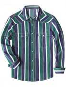 Chemise en jean à rayures vertes style western, manches longues, boutons-pression nacrés