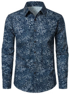 Men's Paisley Floral Cotton Blue Long Sleeve Shirt