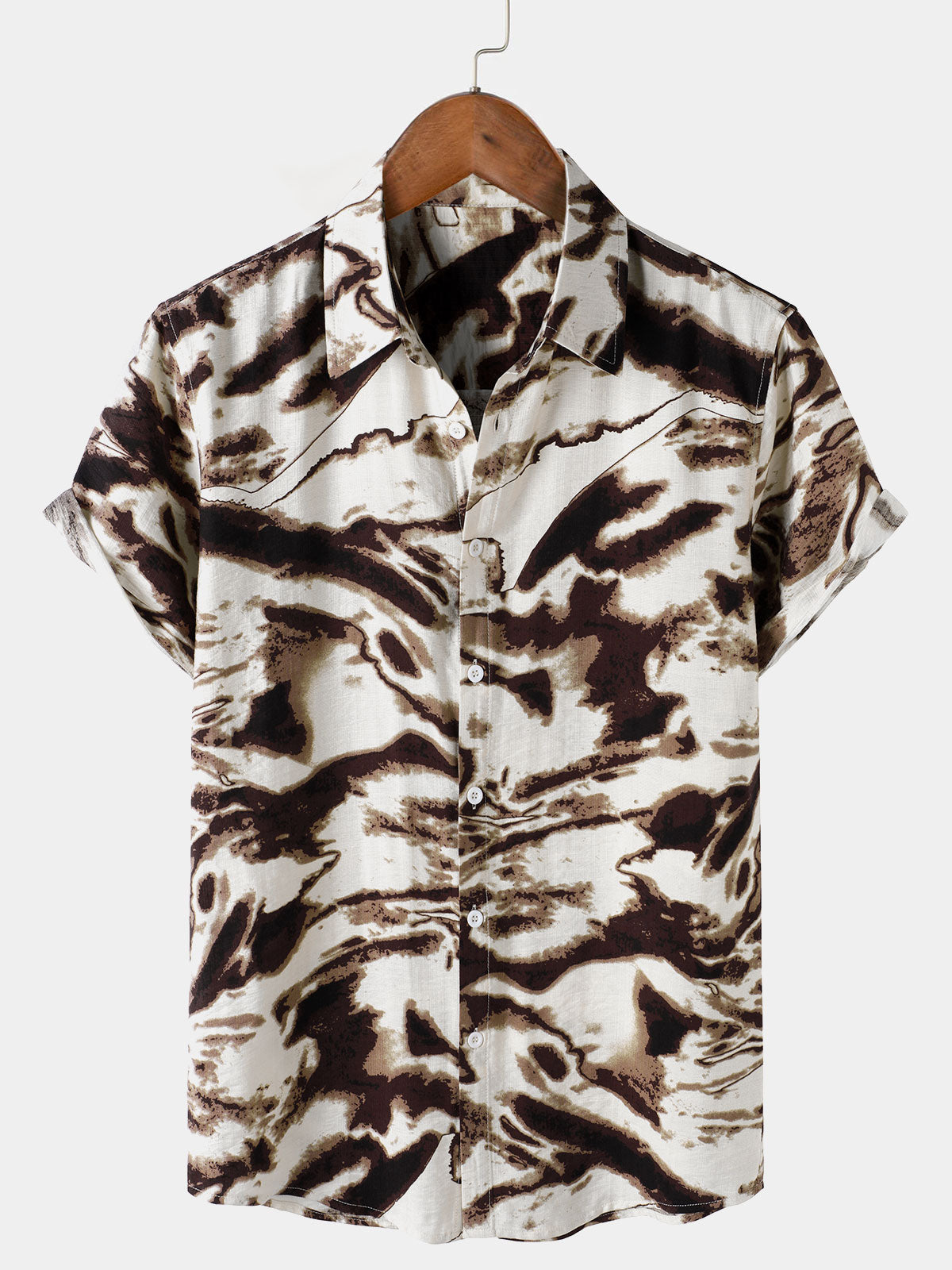 Chemise Homme de Vacances à Manches Courtes à Imprimé Abstrait Rétro
