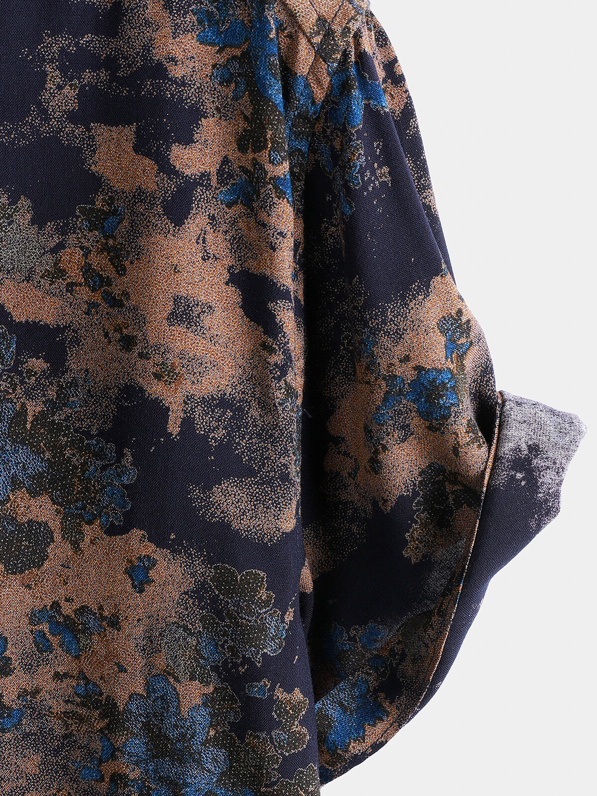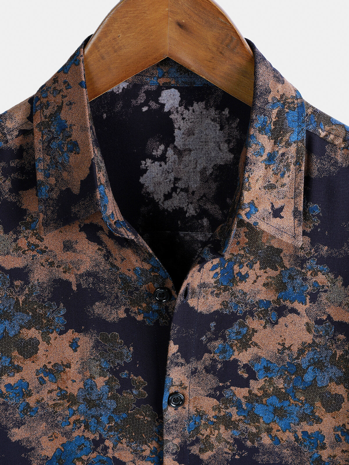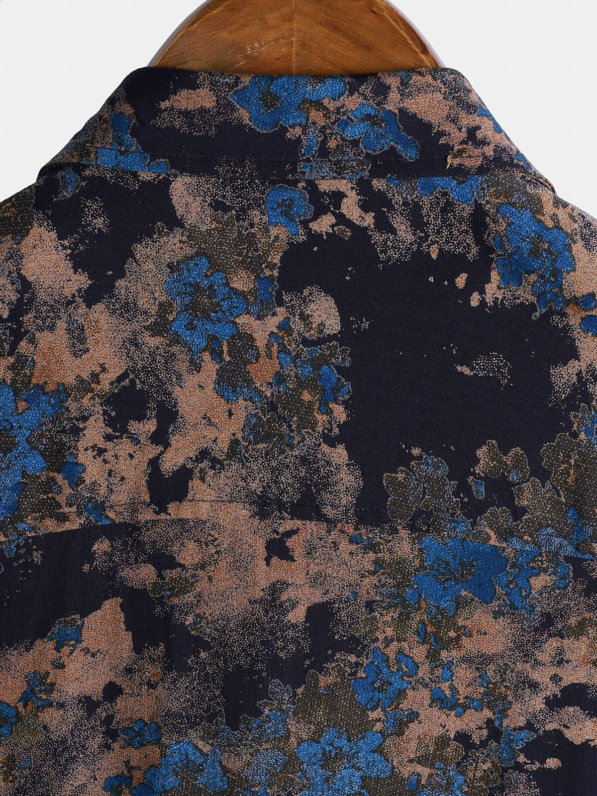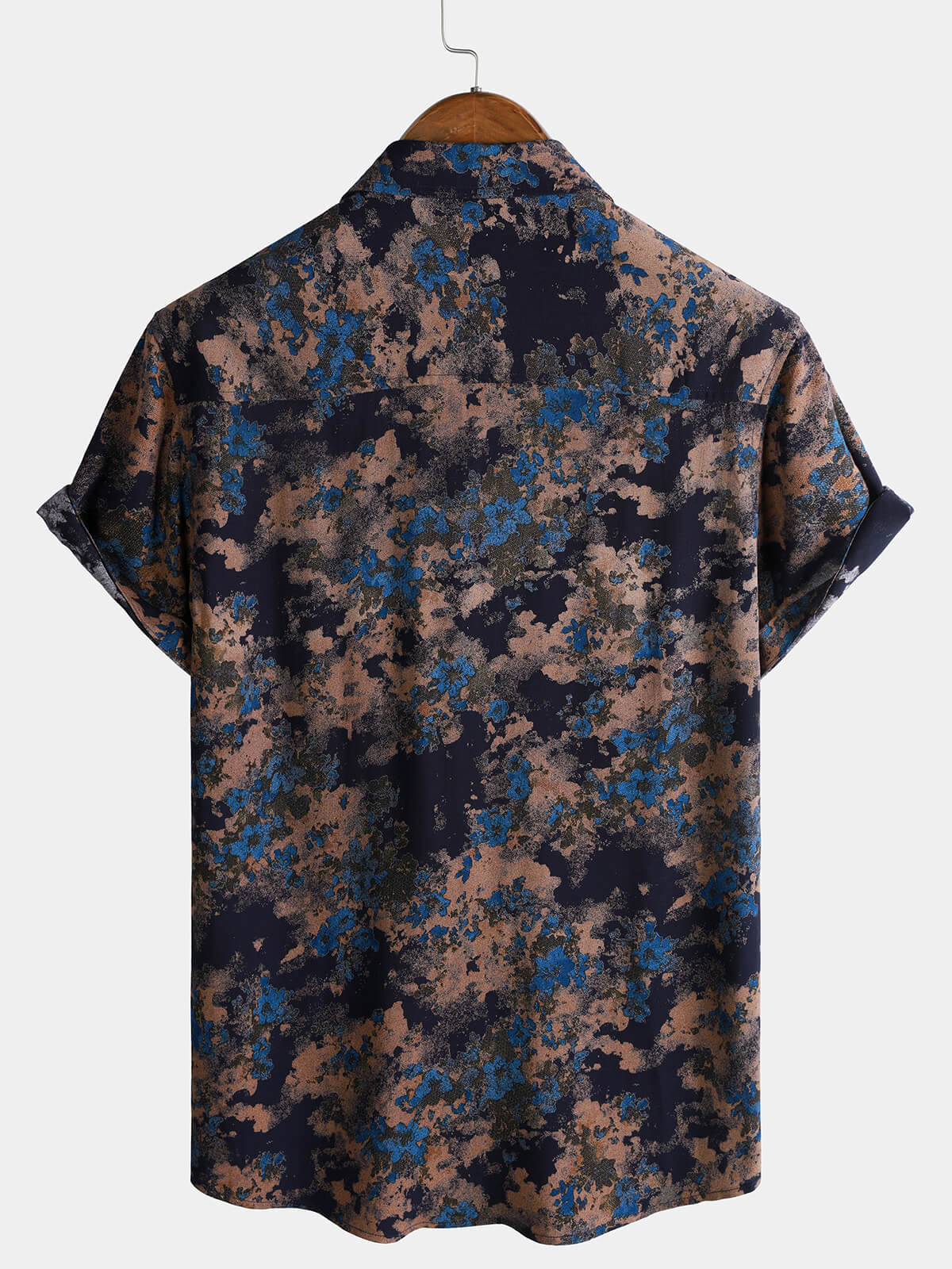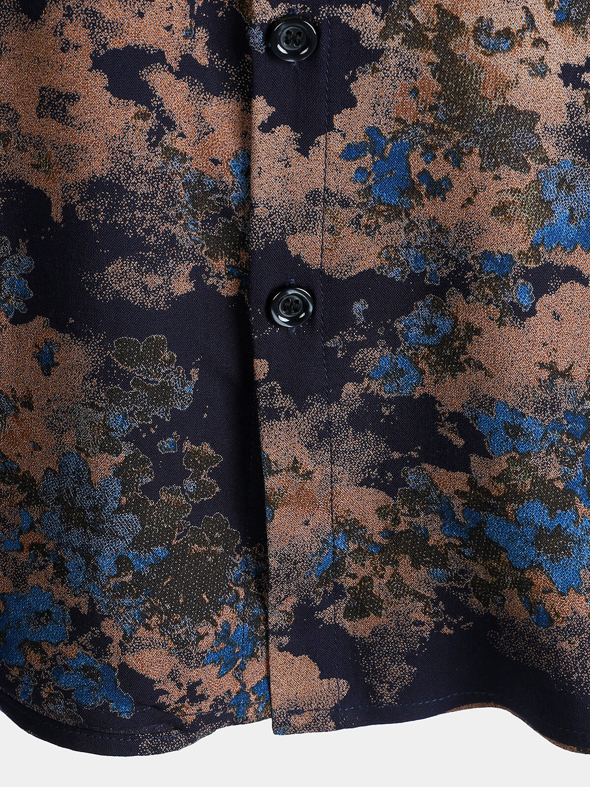 Chemise Homme Rayonne Bleu Marine Imprimé Floral Abstrait Décontractée Manches Courtes