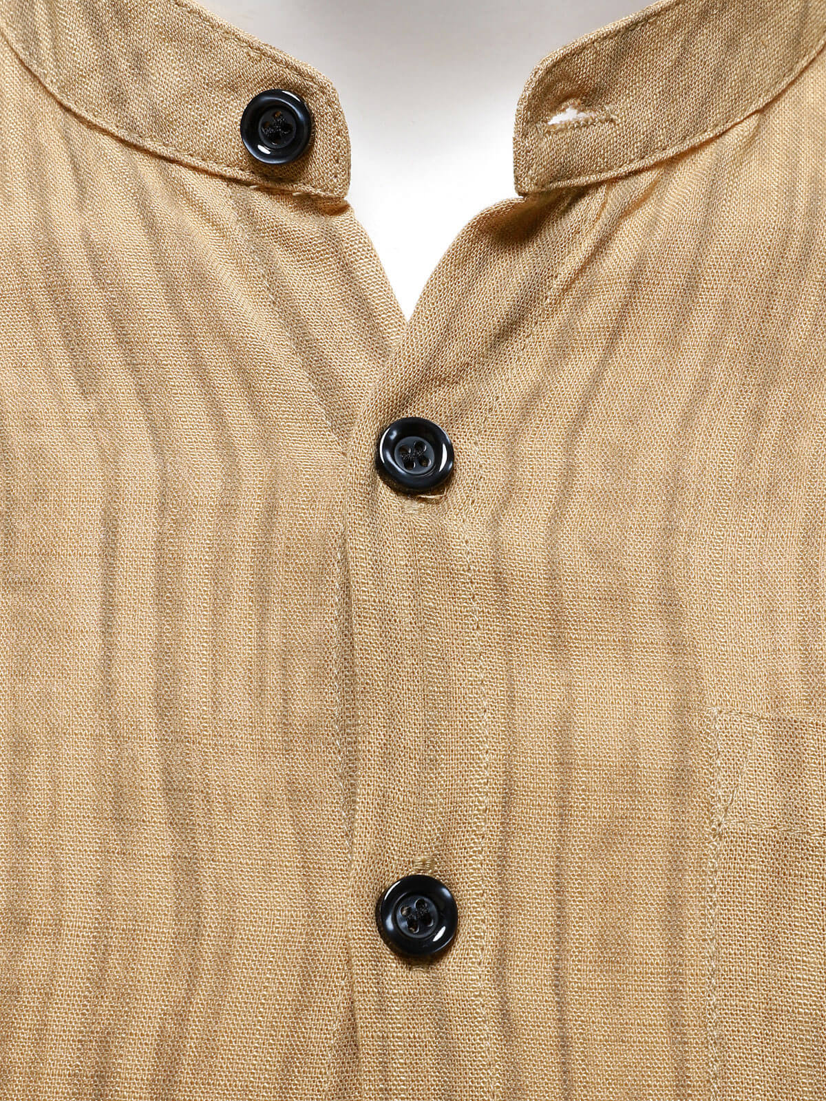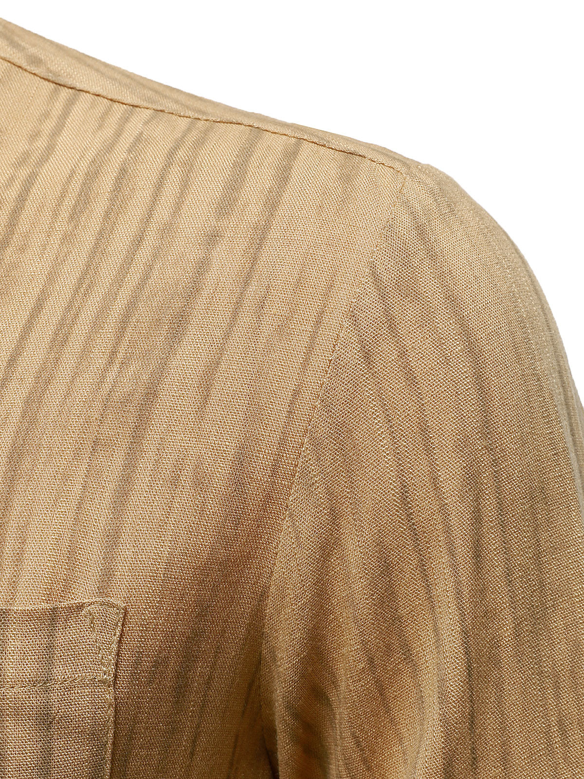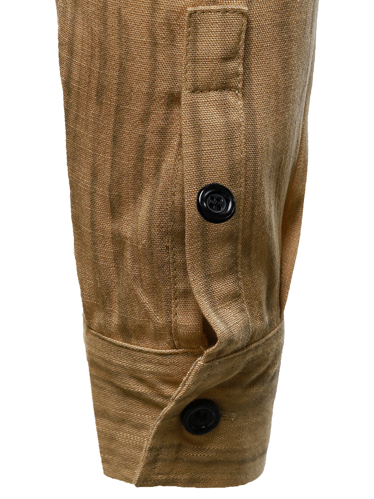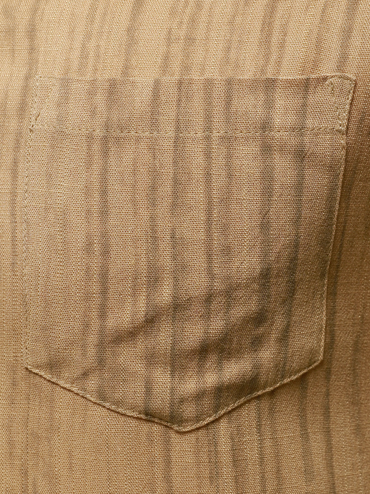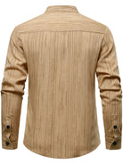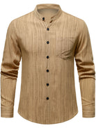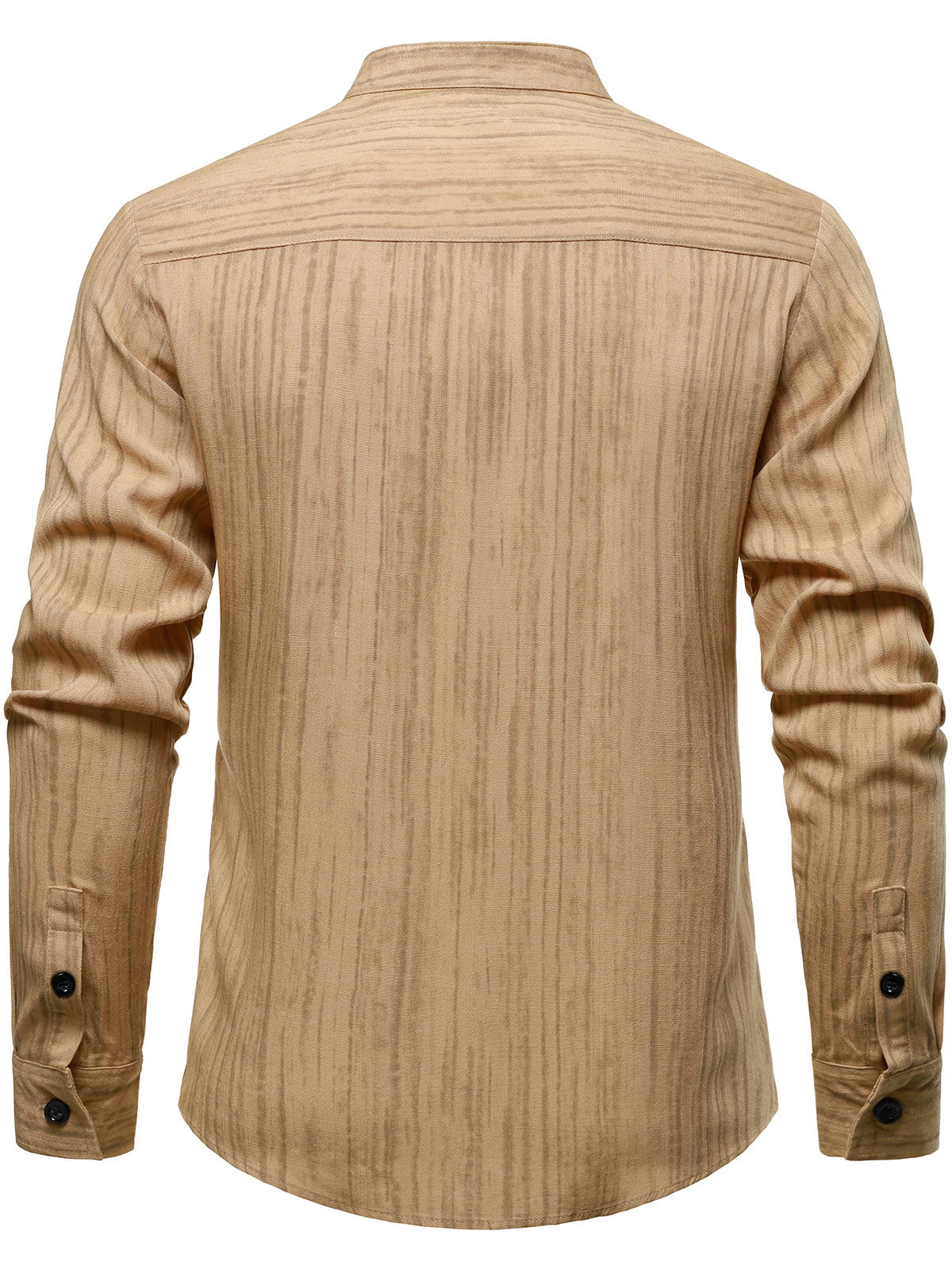 Chemise décontractée à manches longues et poches pour homme, kaki, rayée