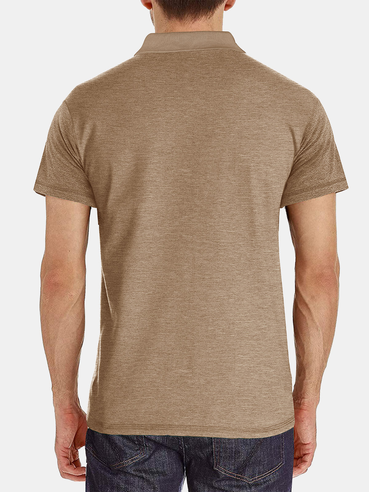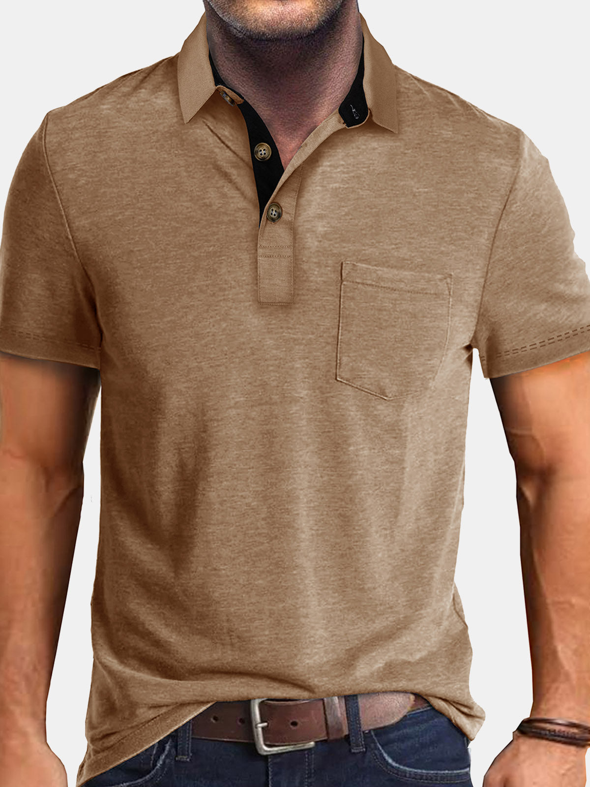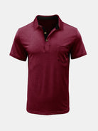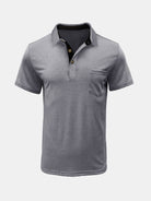 Polo d'été décontracté à manches courtes pour hommes avec poche respirante de couleur unie