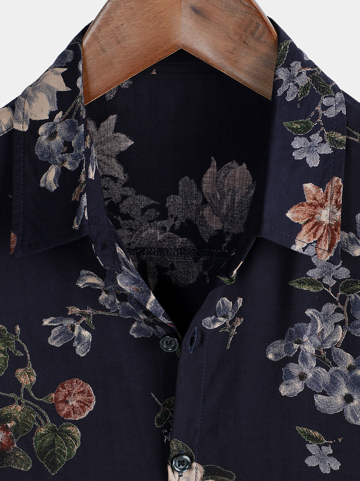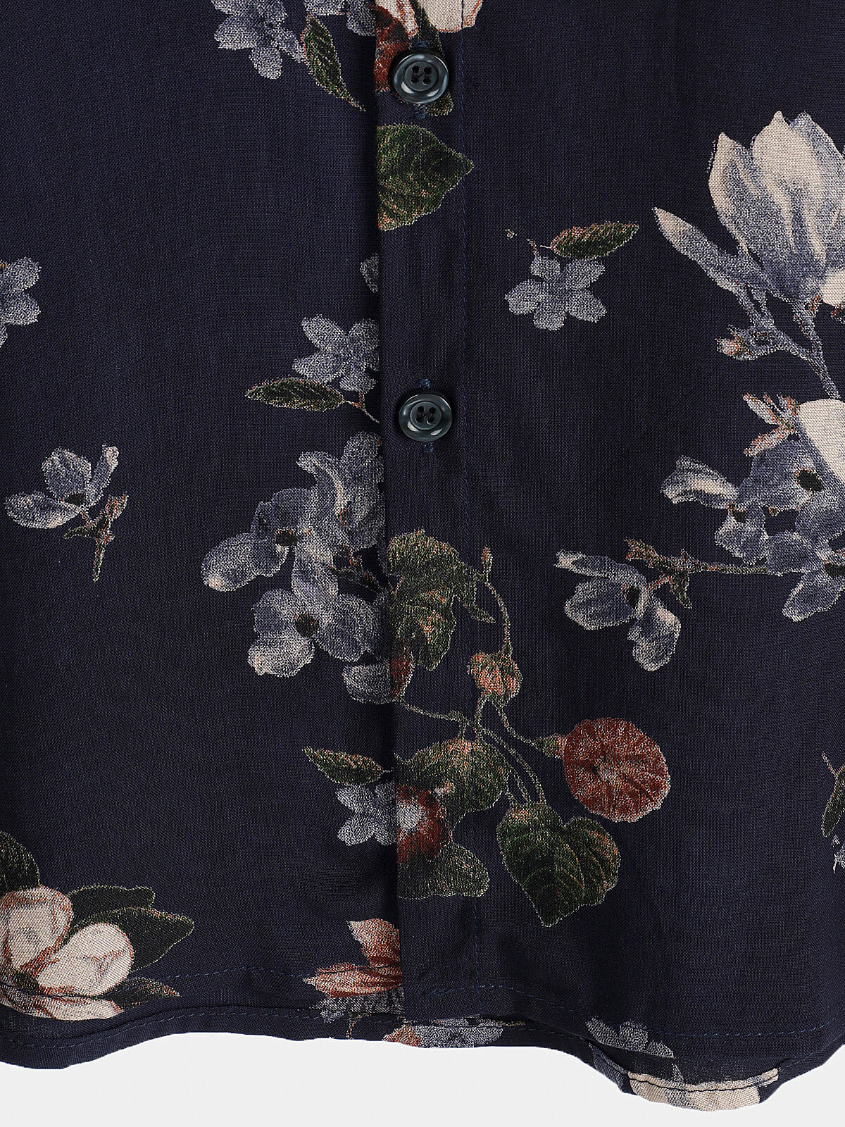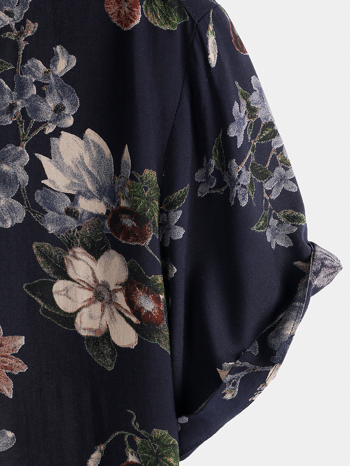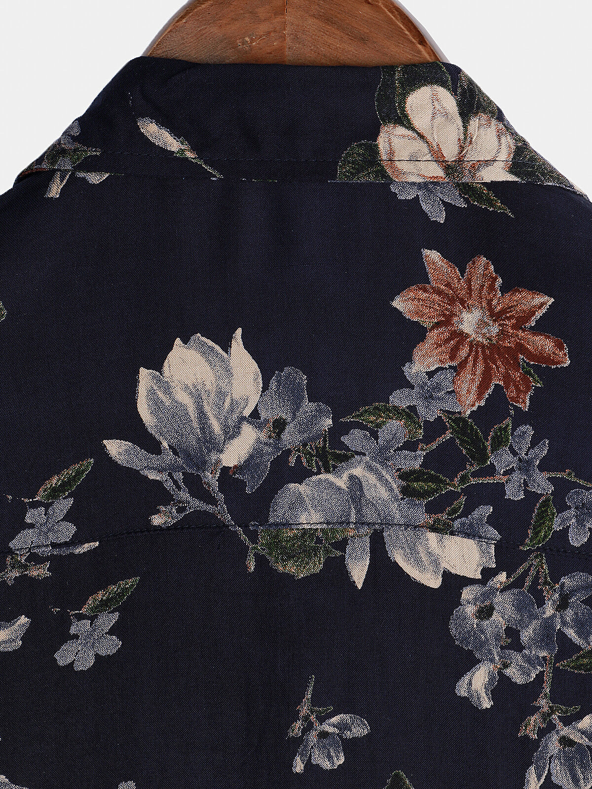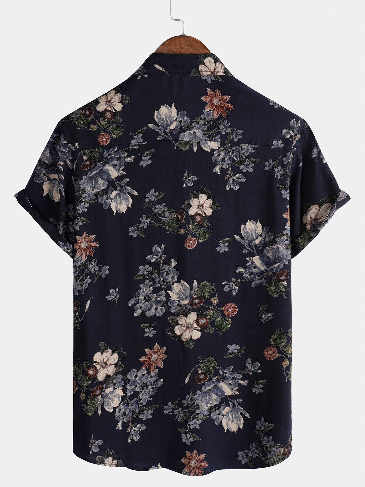 Chemise à manches courtes en rayonne pour hommes, Vintage, bleu marine, vacances, été, plage florale