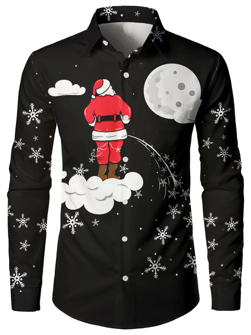 Hommes drôle Noël fou Père Noël livrant des cadeaux Cool Holiday Manches longues Chemise boutonnée