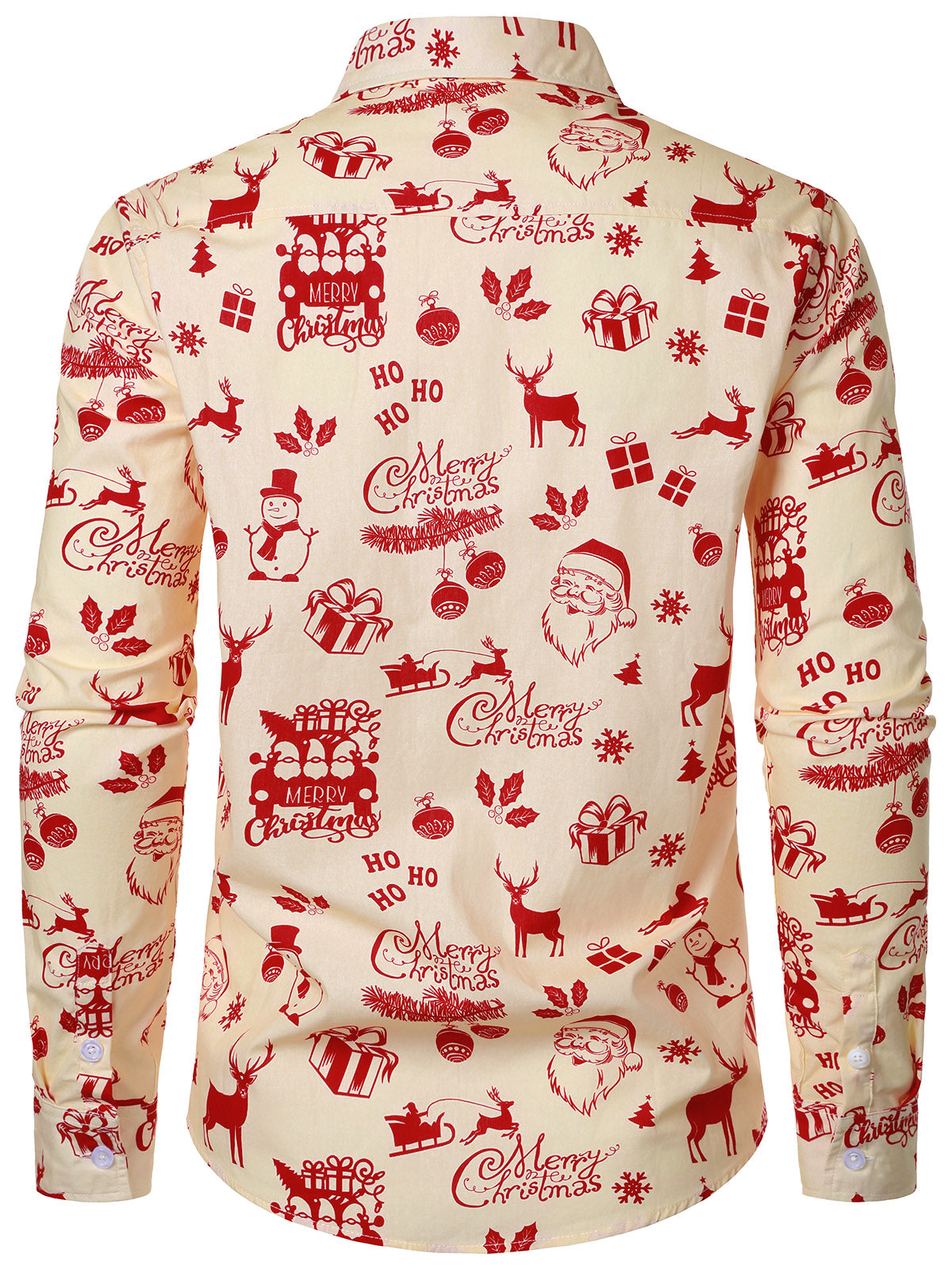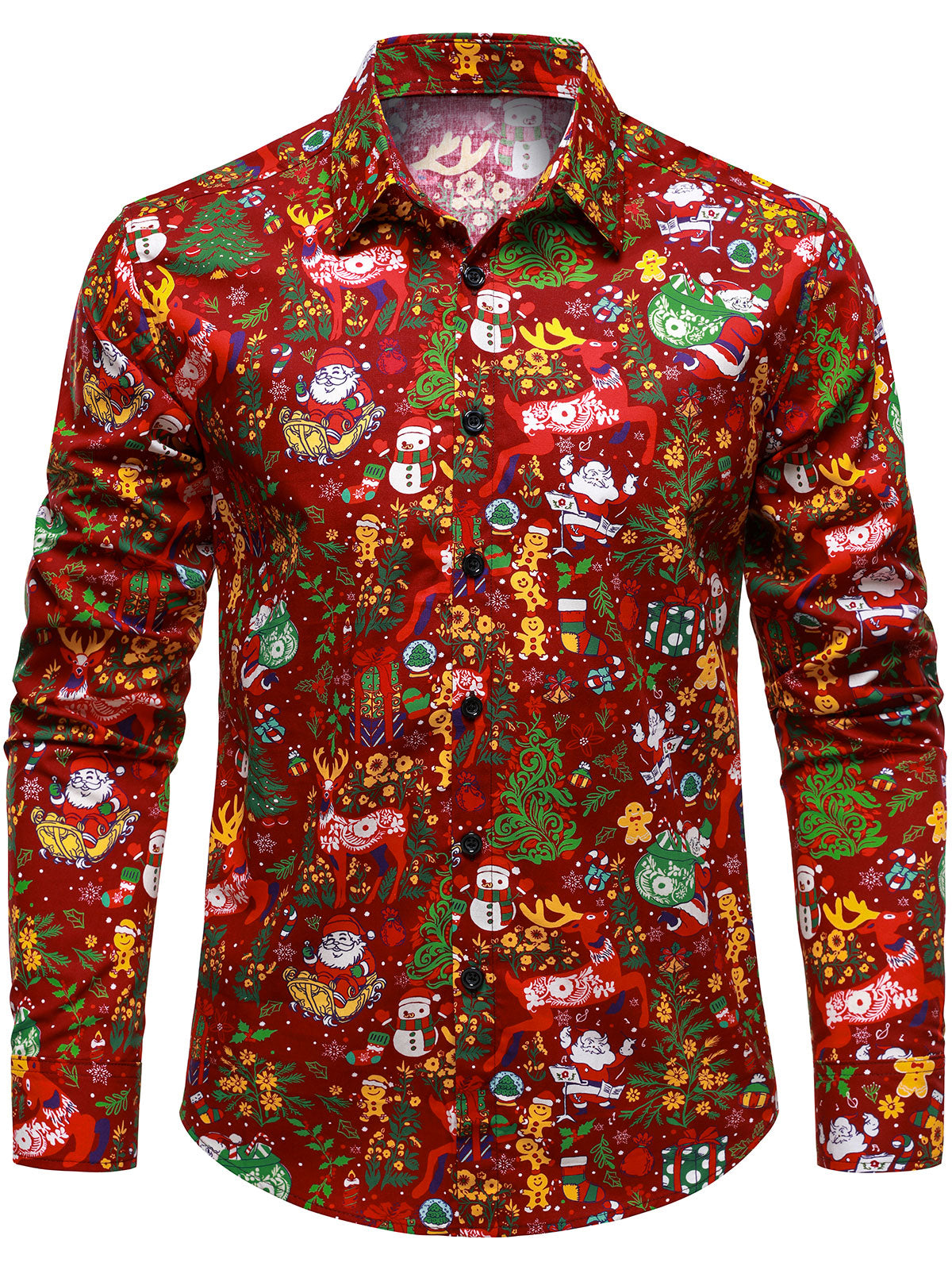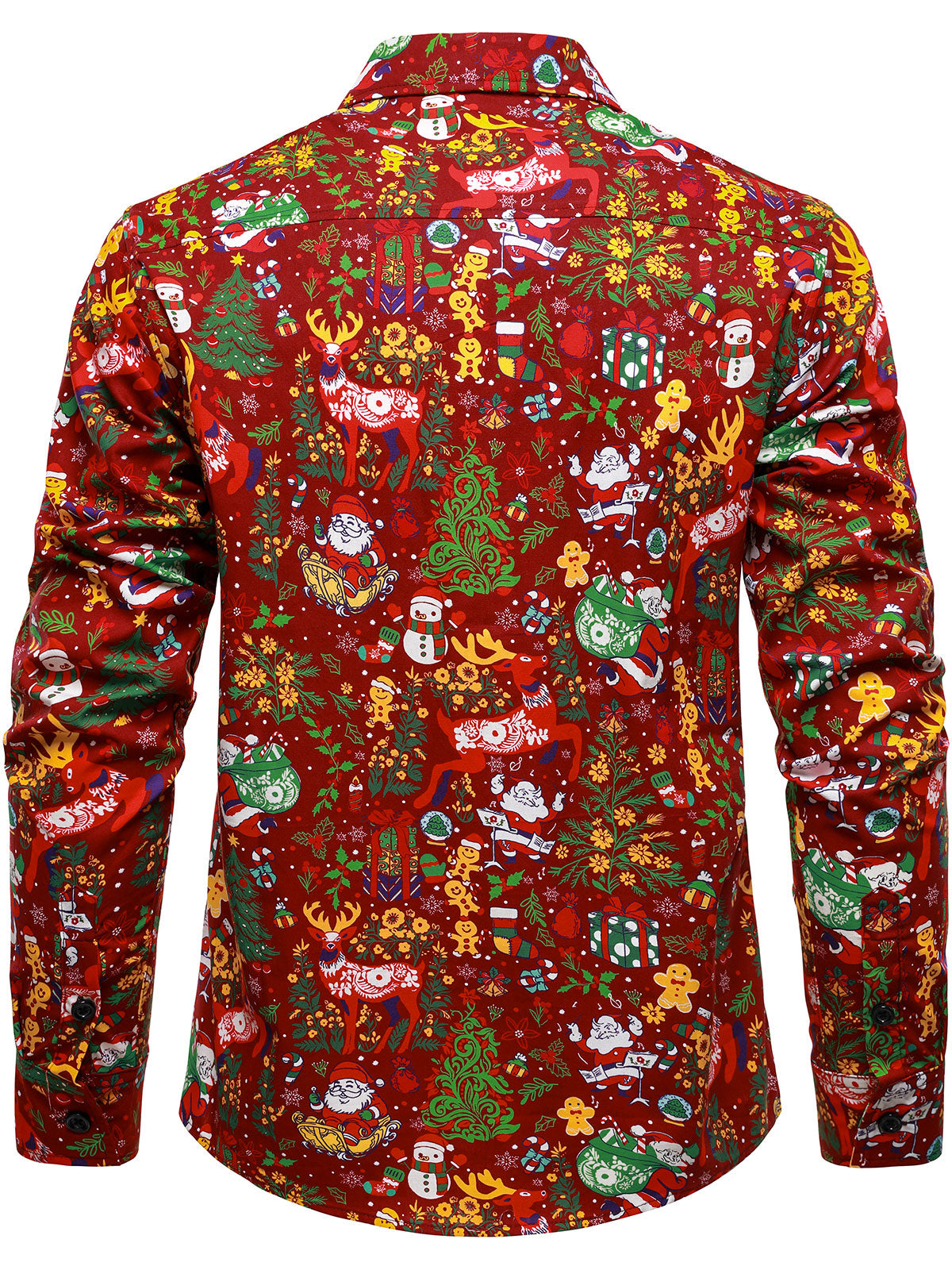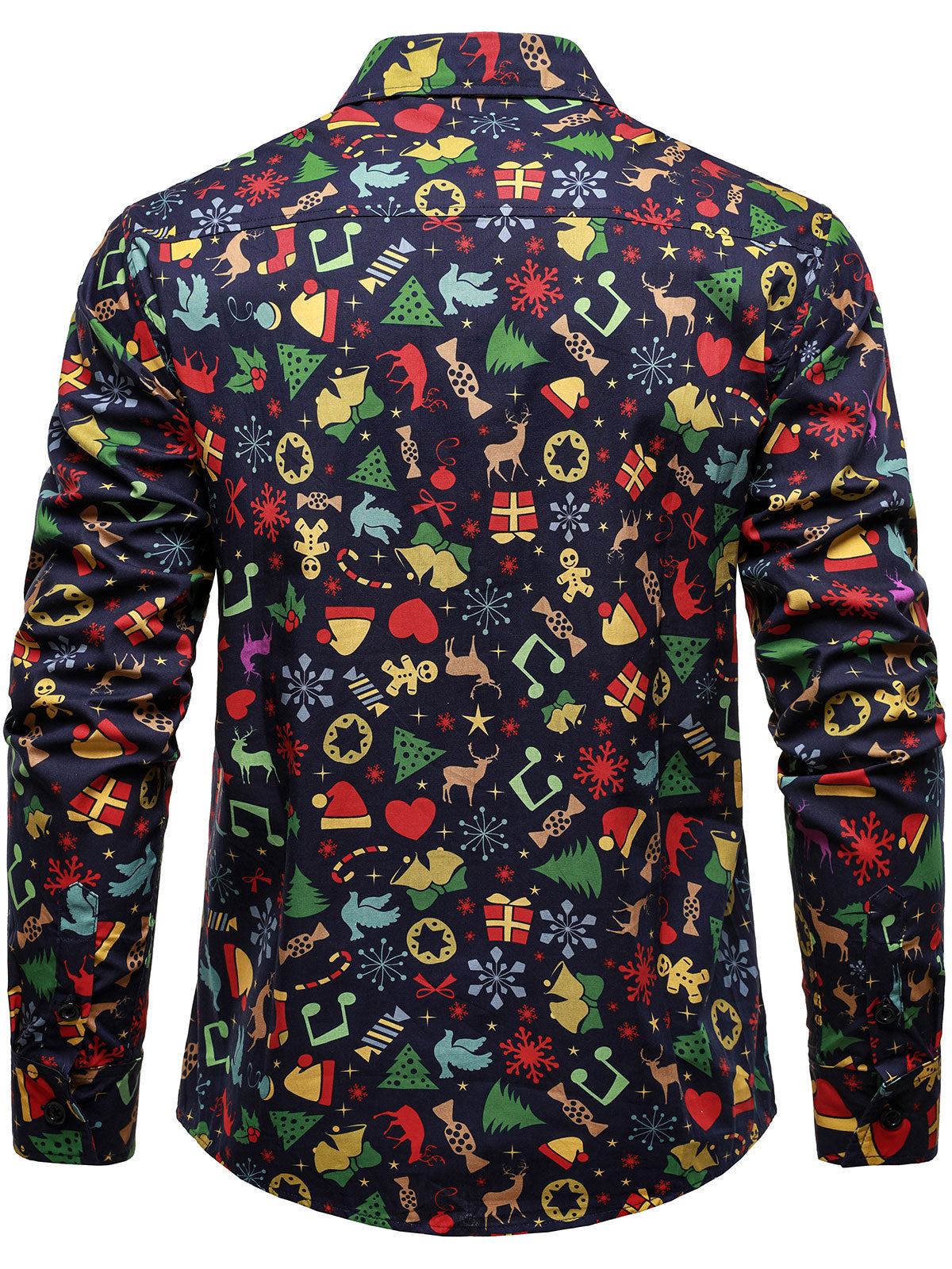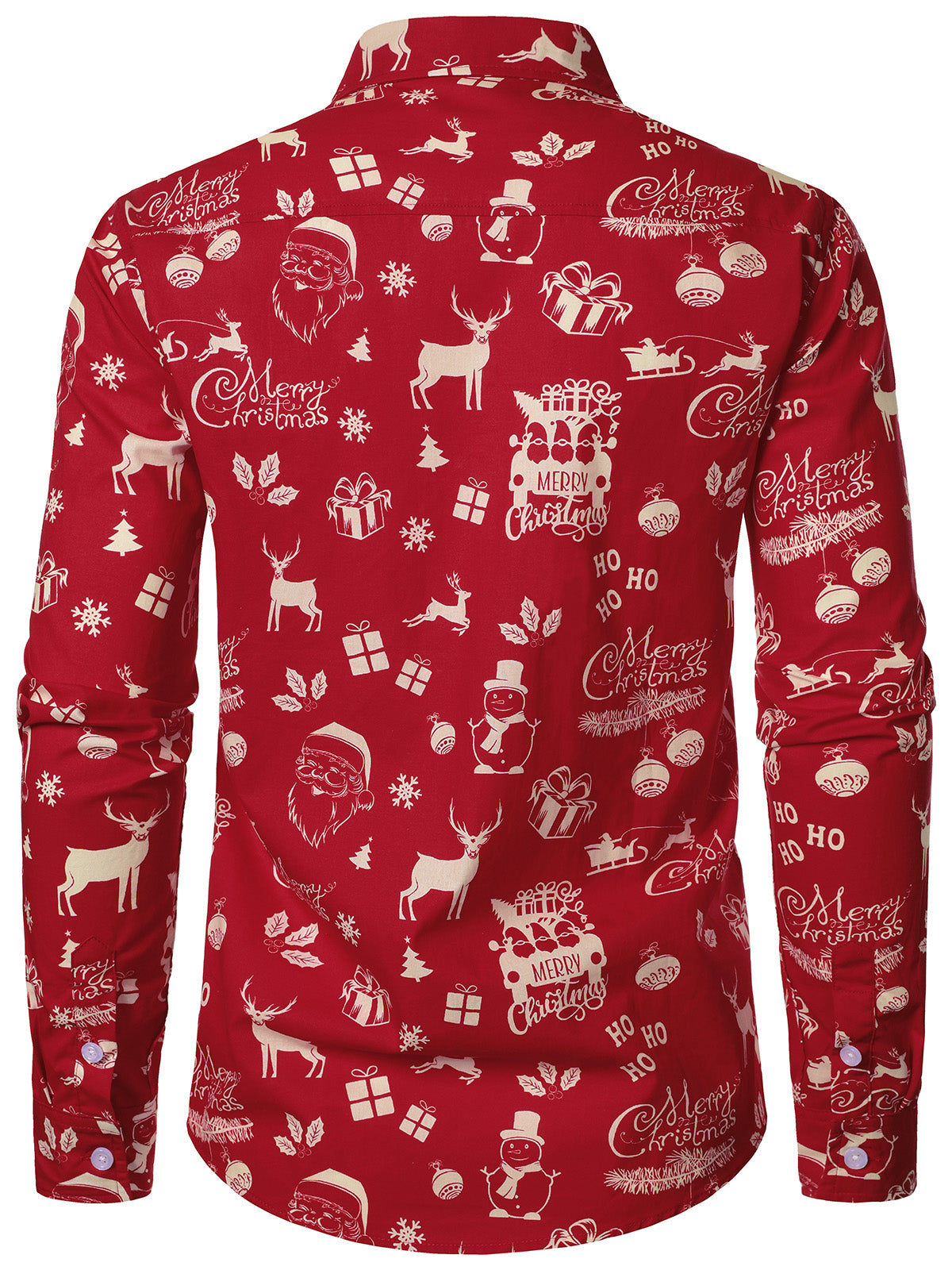 Chemise Homme Noël Drôle Imprimé Thème Tenue Manches Longues