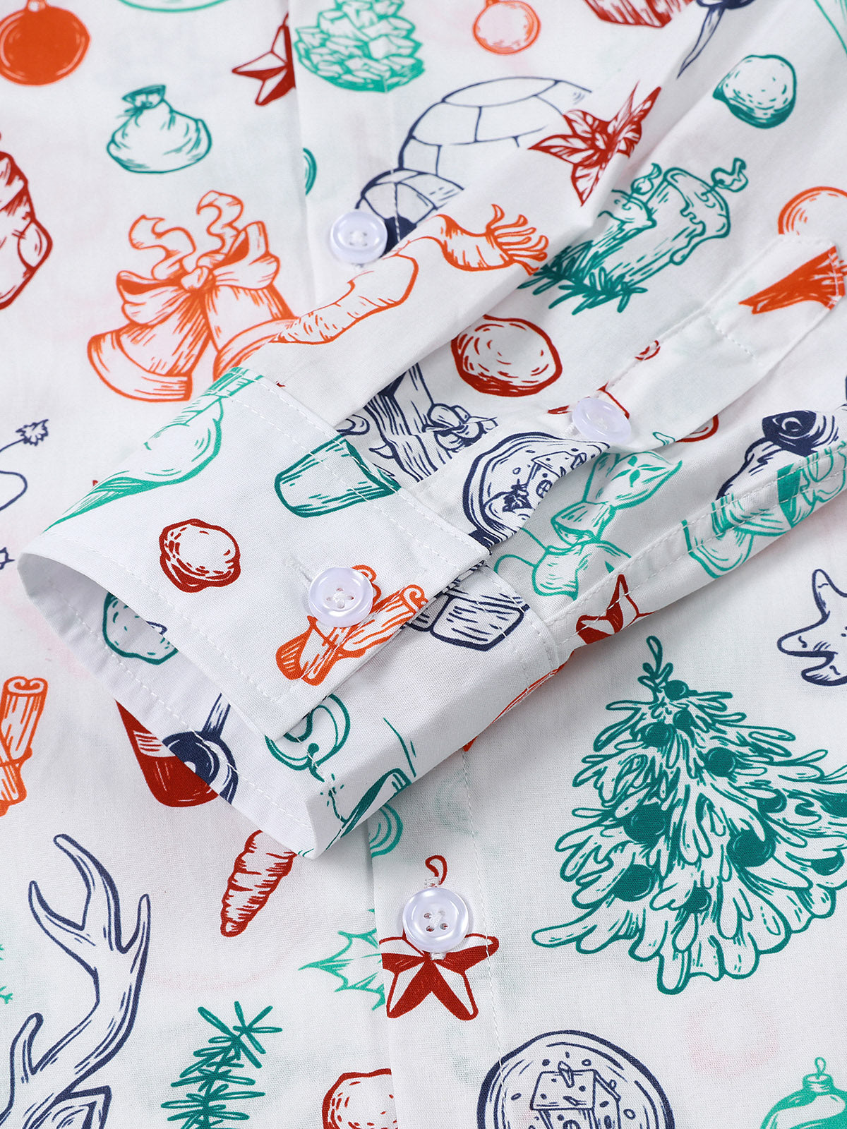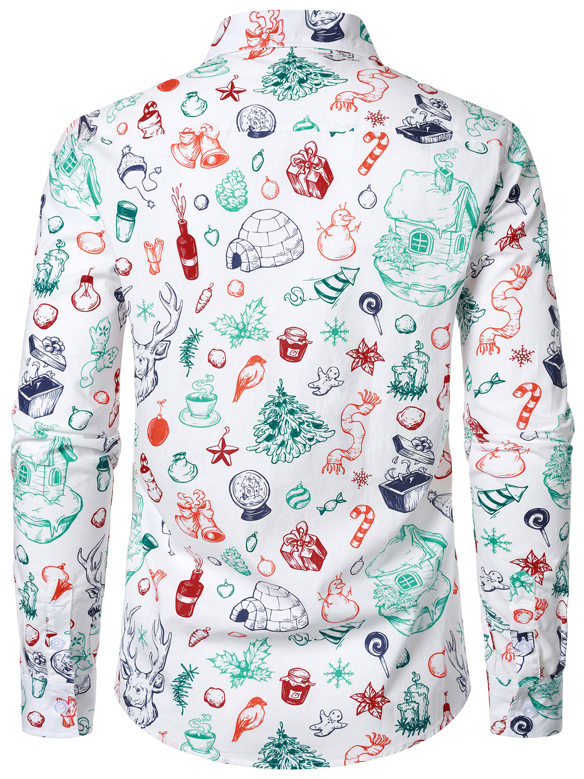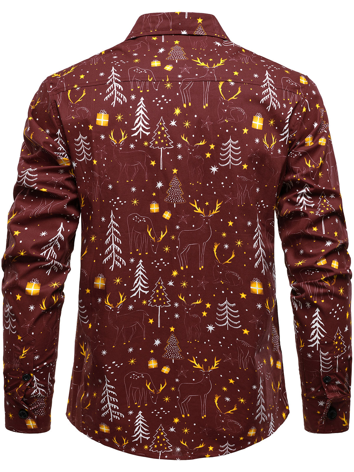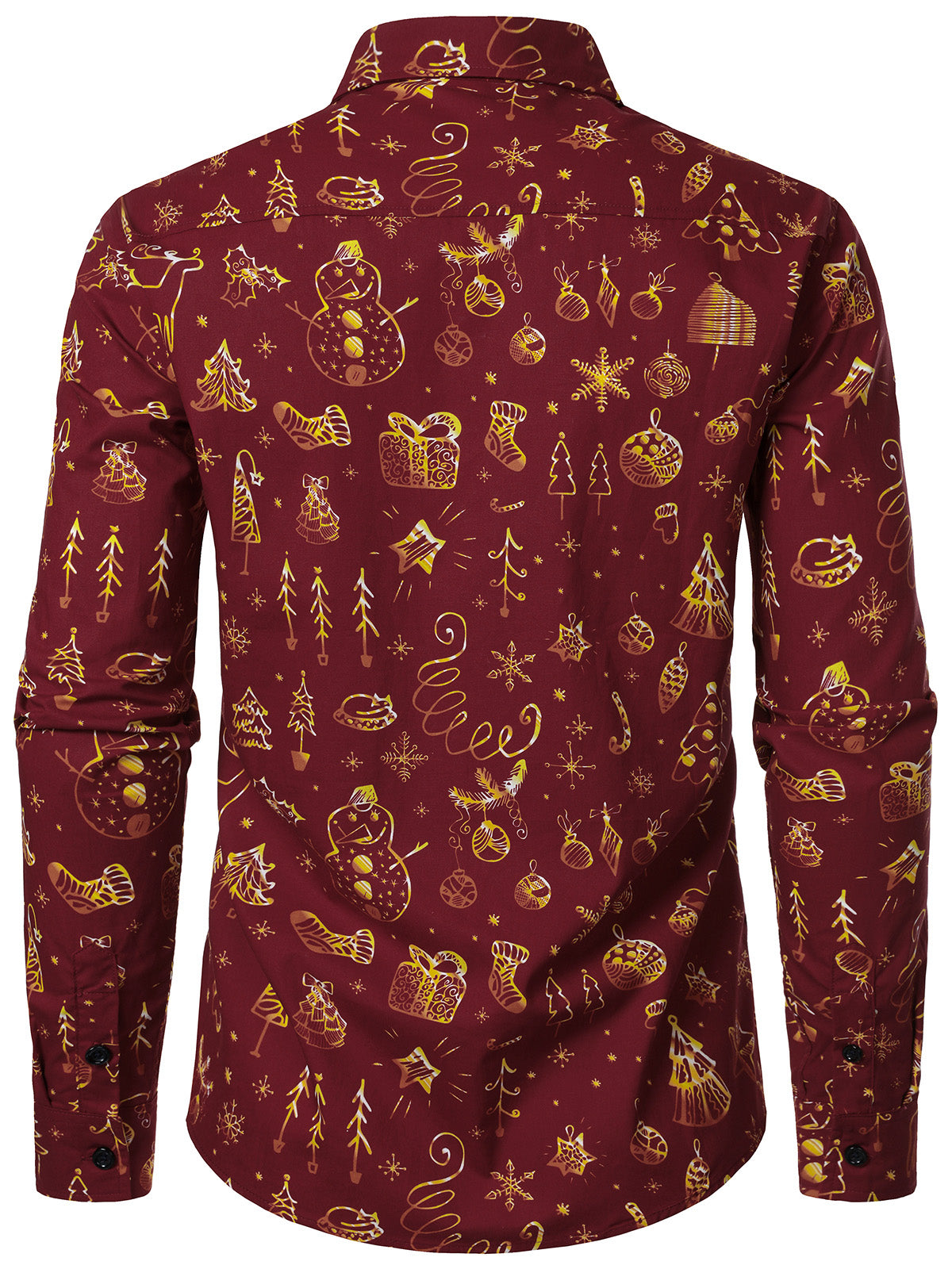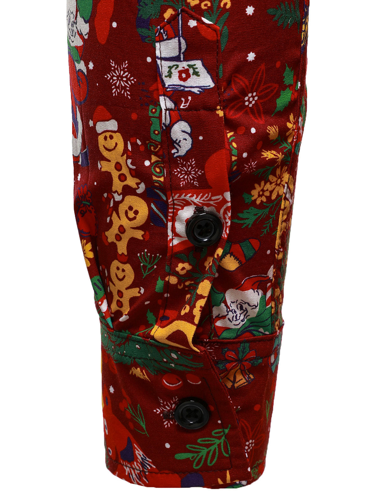 Chemise Homme Noël Drôle Imprimé Thème Tenue Manches Longues
