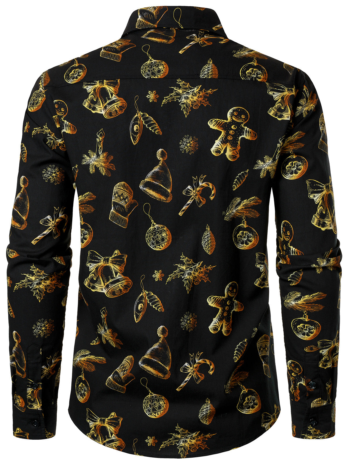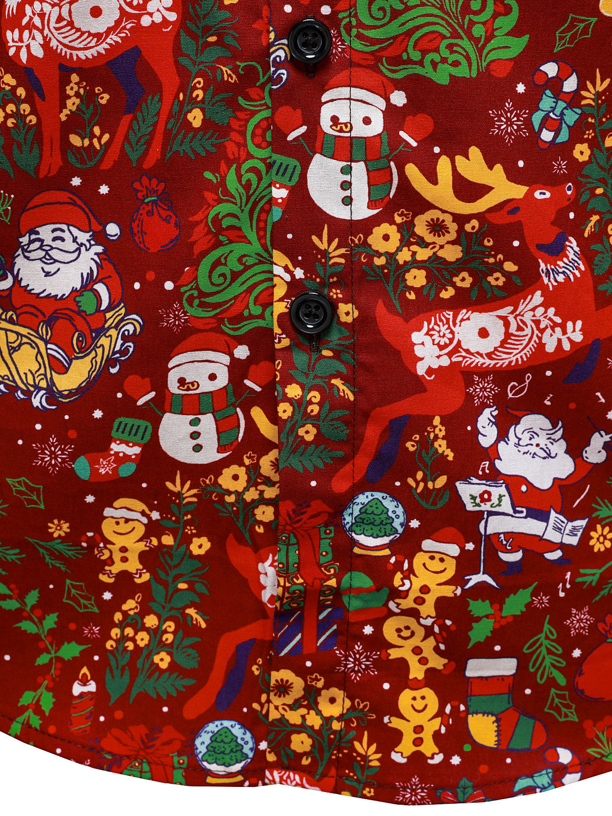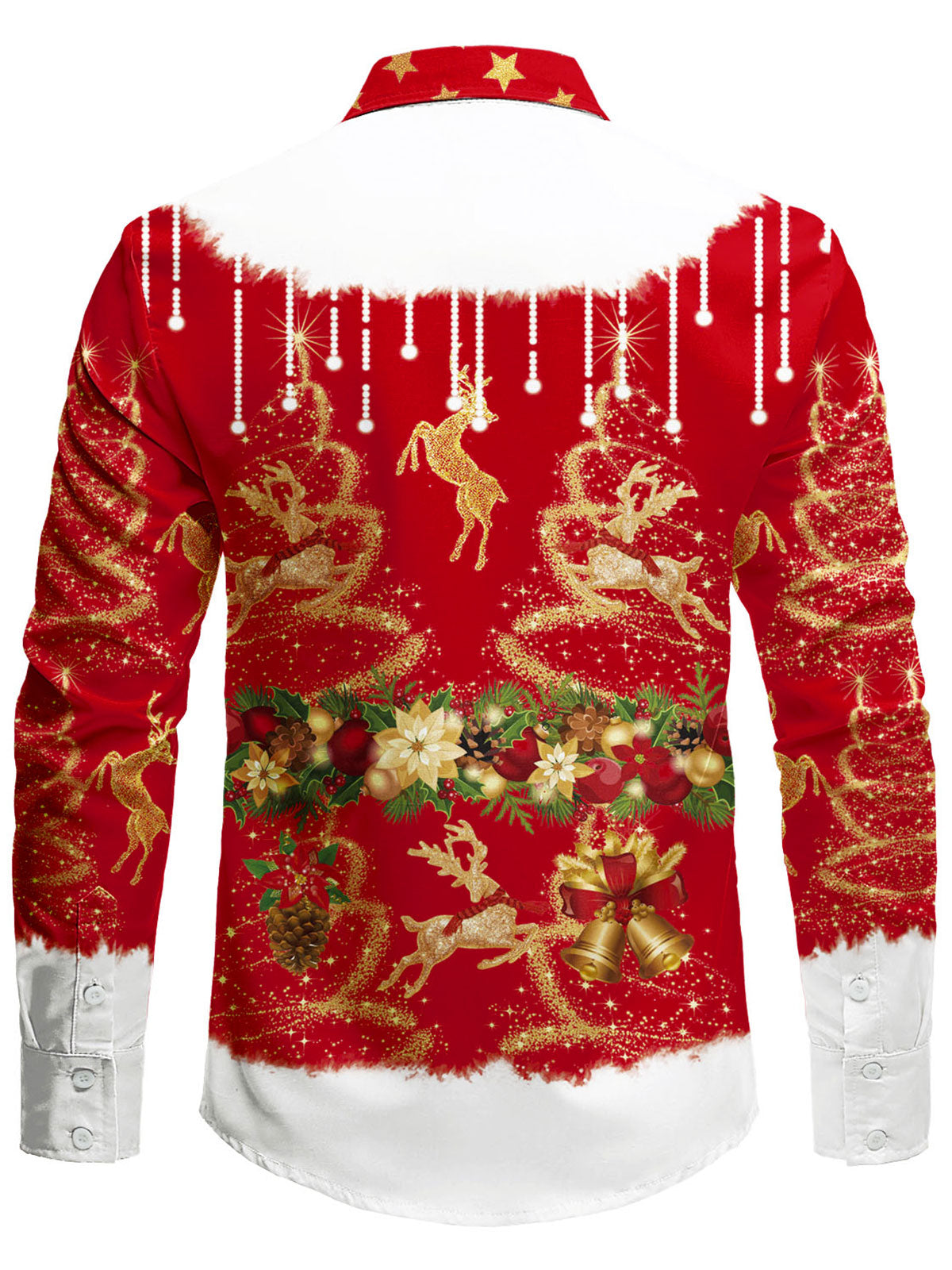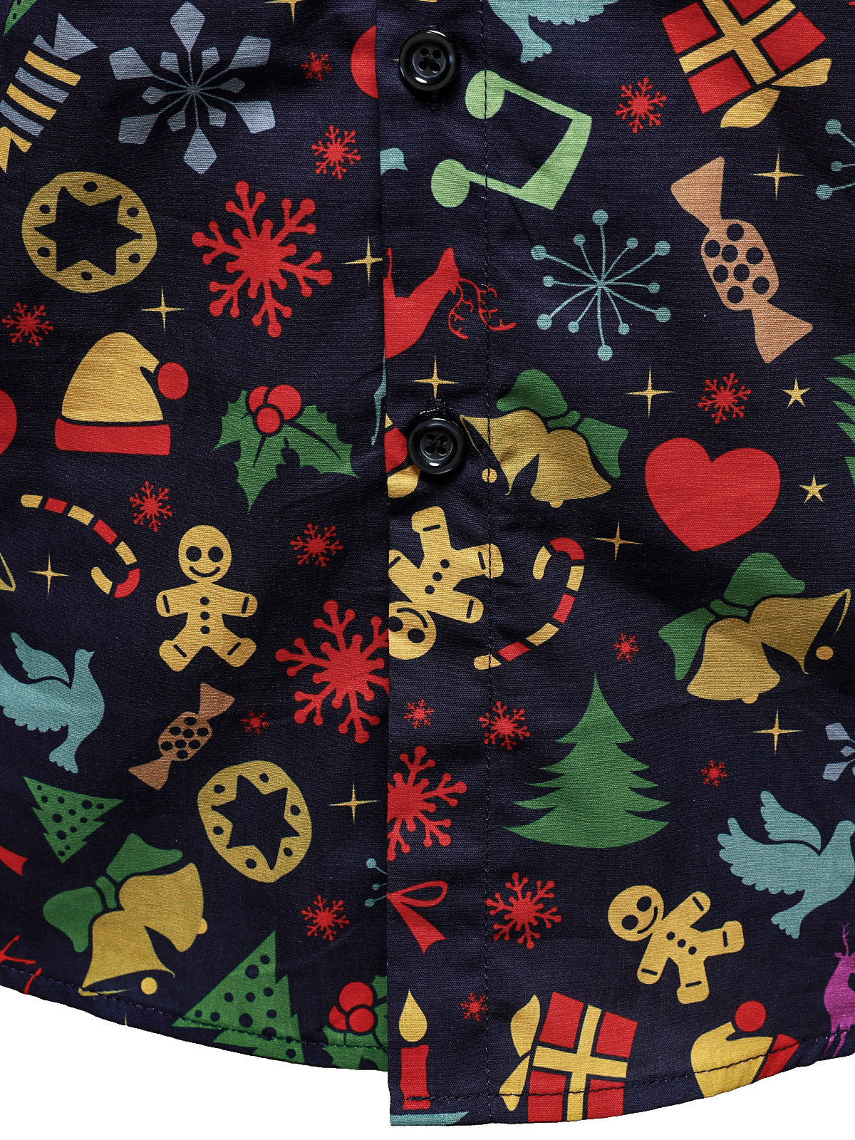 Chemise Homme Noël Drôle Imprimé Thème Tenue Manches Longues
